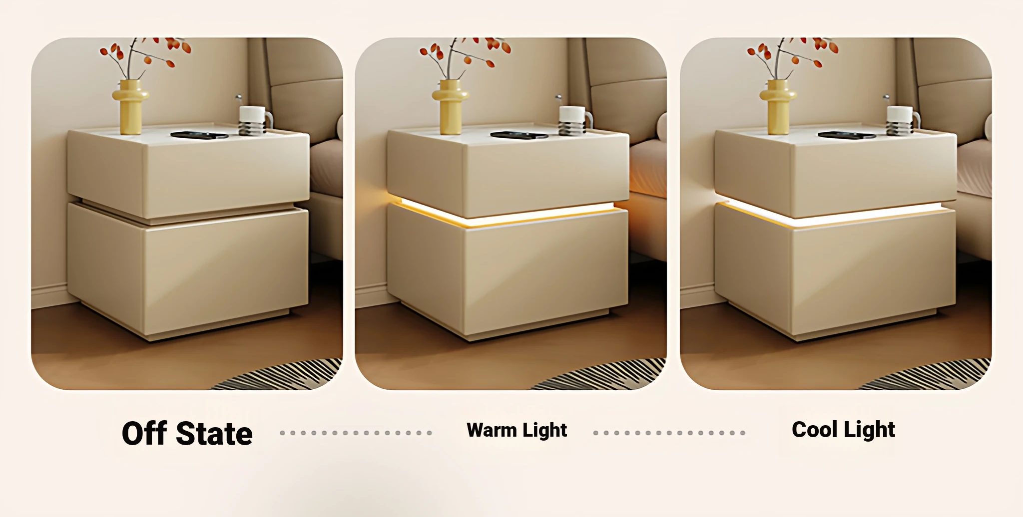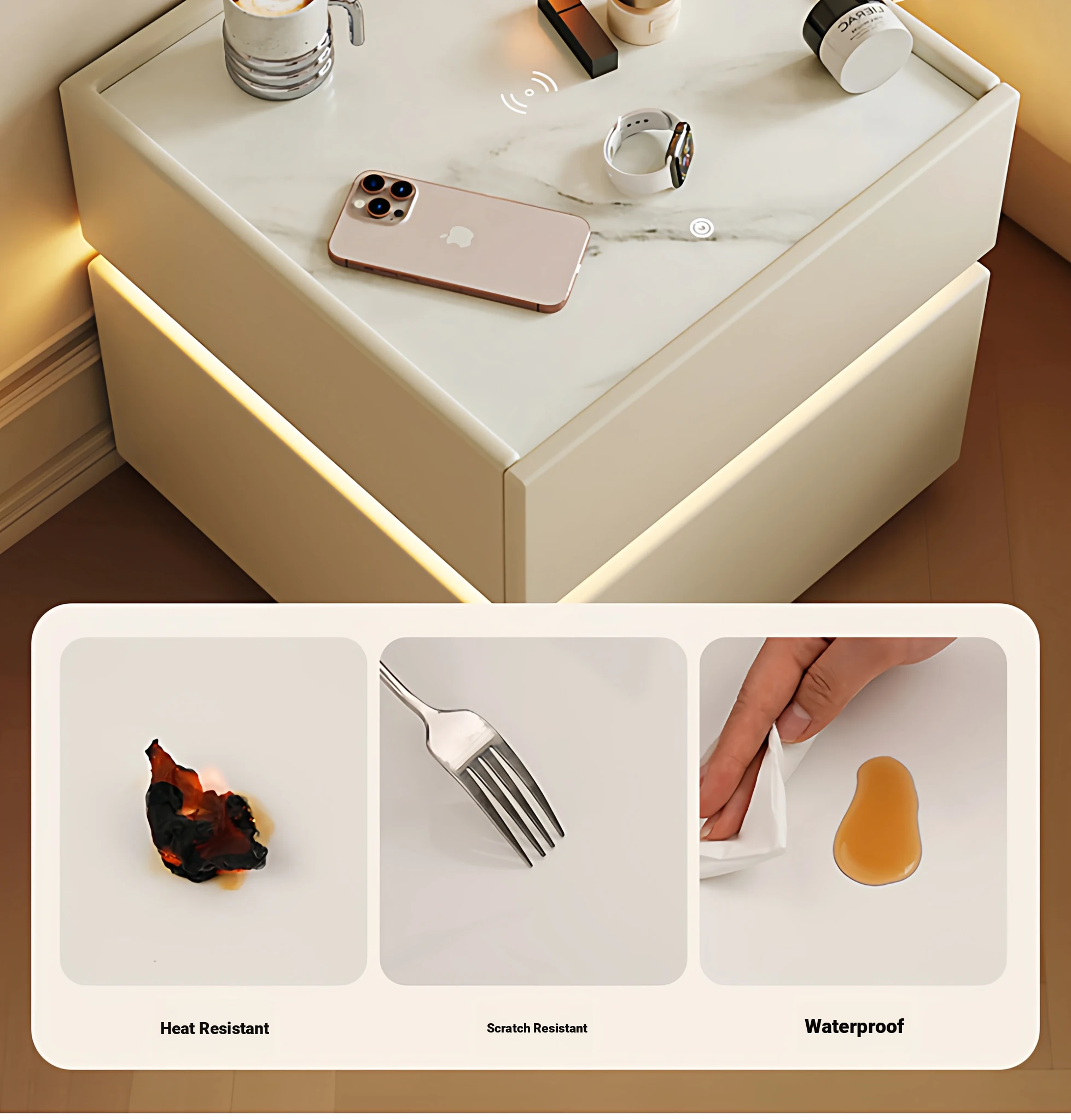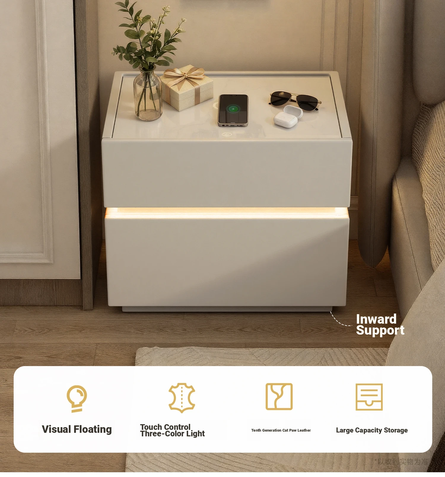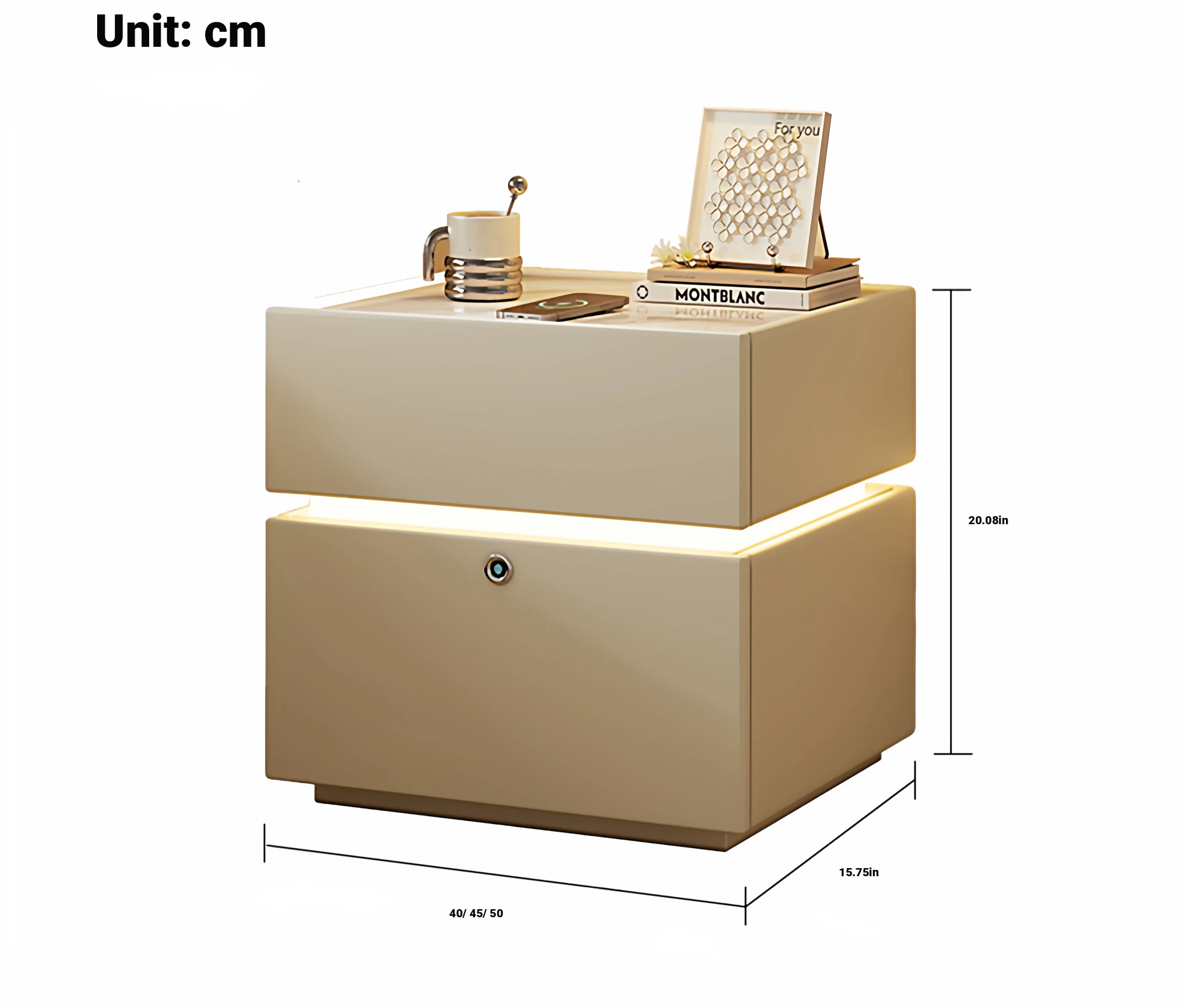 2025 New Italian Minimalist Luxury Solid Wood Nightstand - Modern Leather Smart Bedside Table for a Chic Bedroom Upgrade