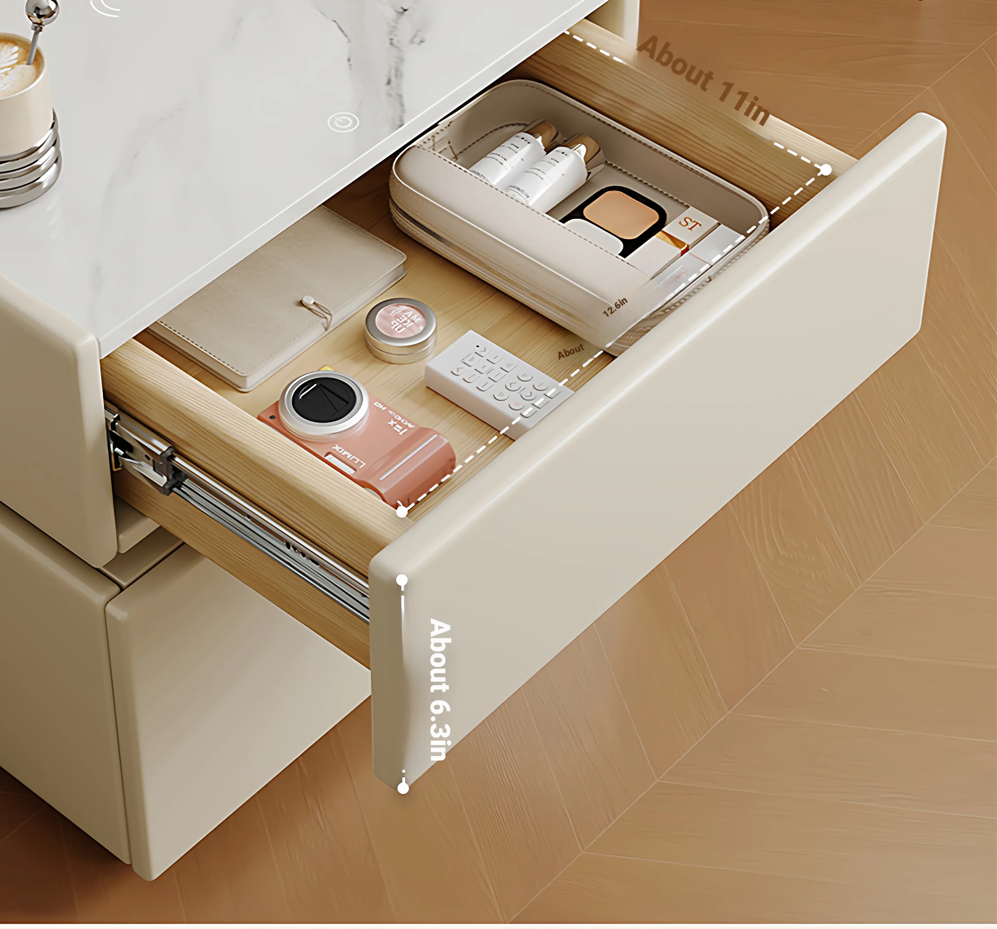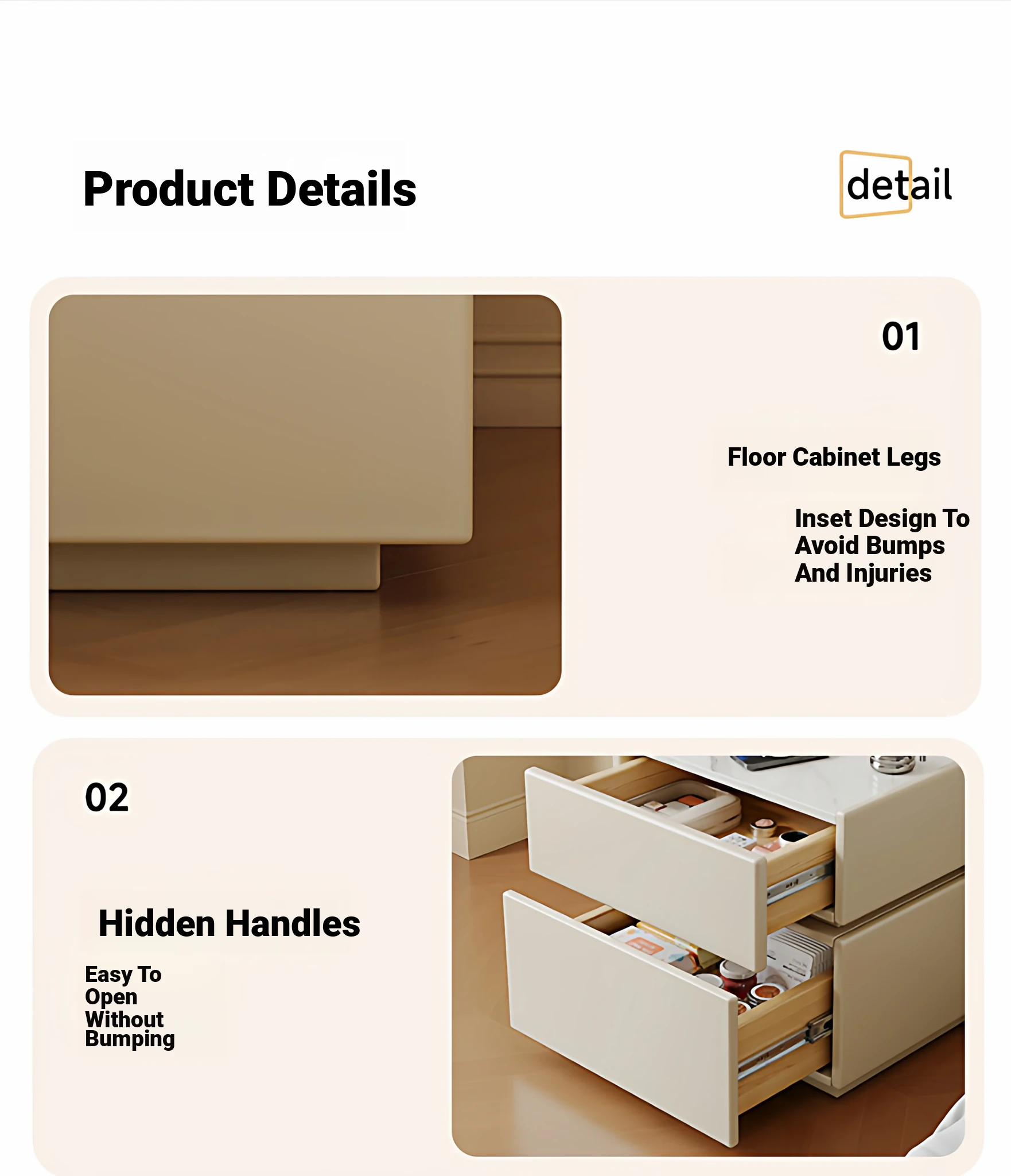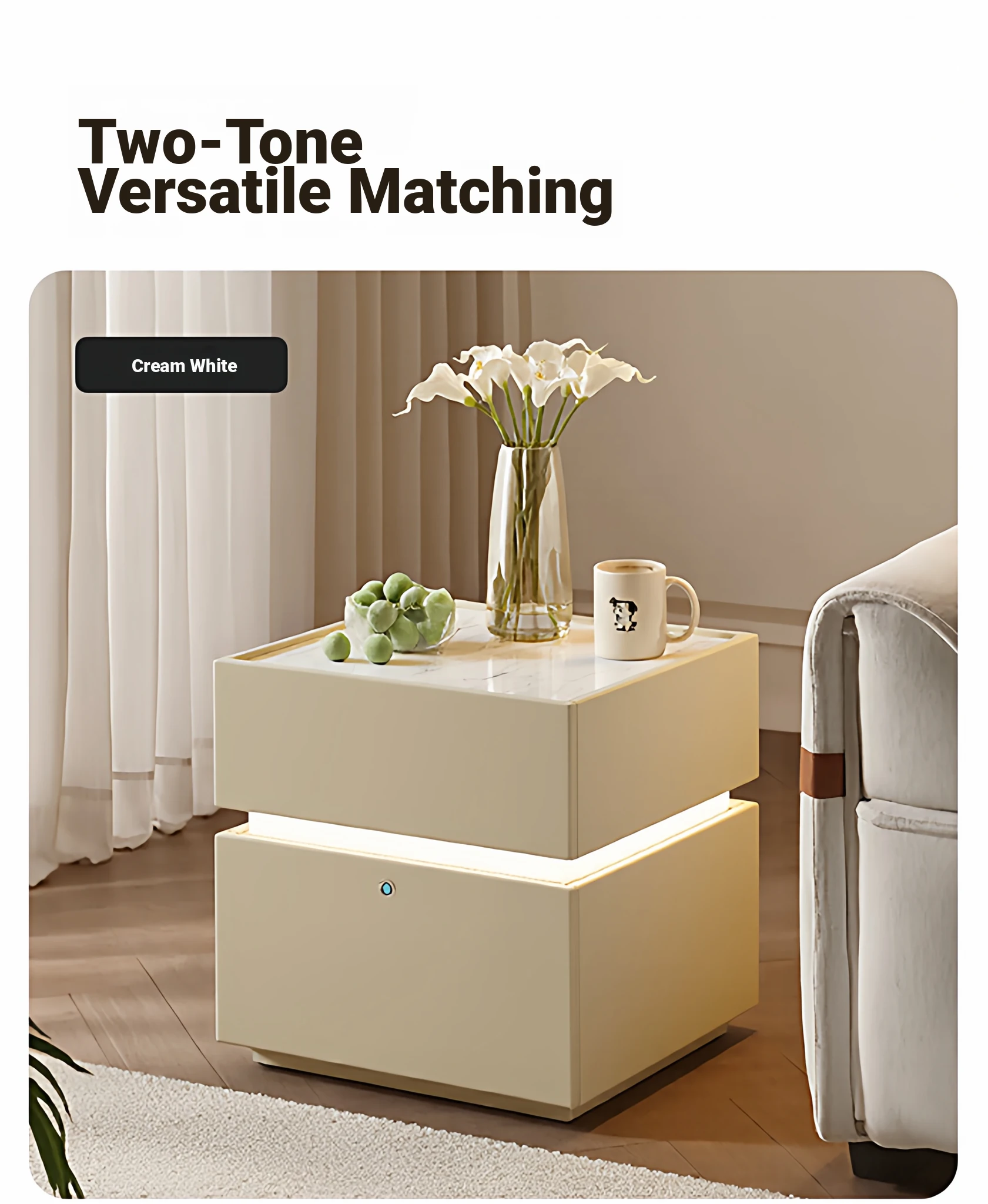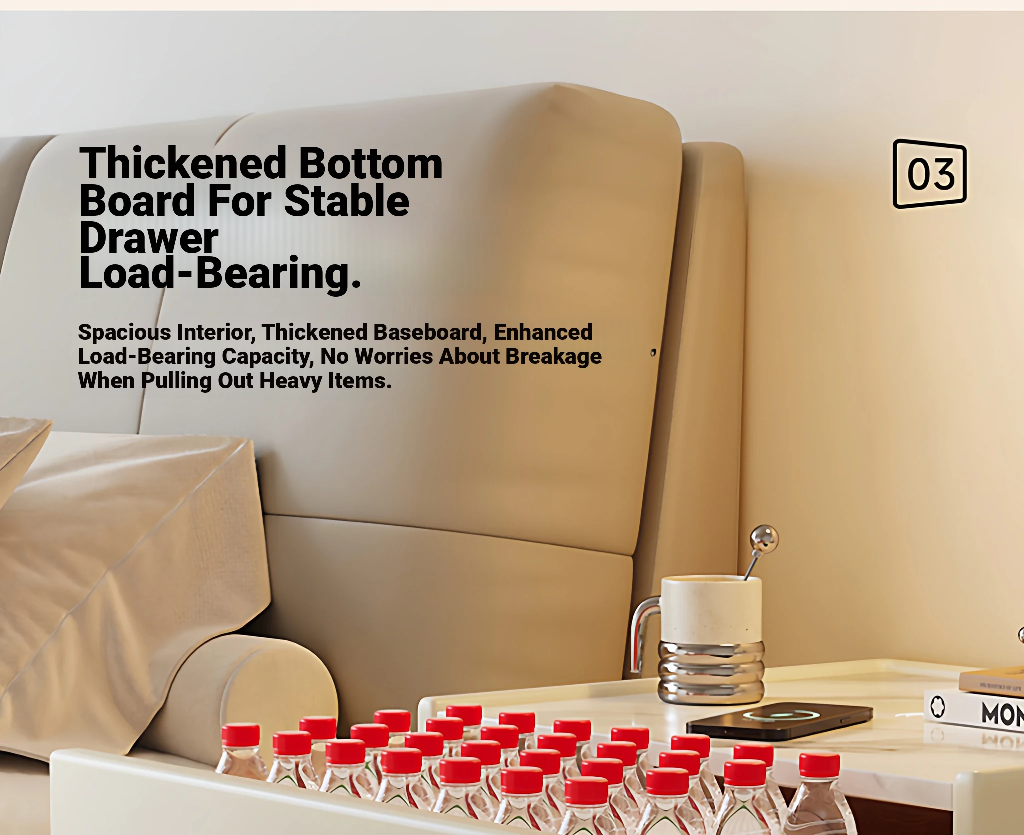 2025 New Italian Minimalist Luxury Solid Wood Nightstand - Modern Leather Smart Bedside Table for a Chic Bedroom Upgrade