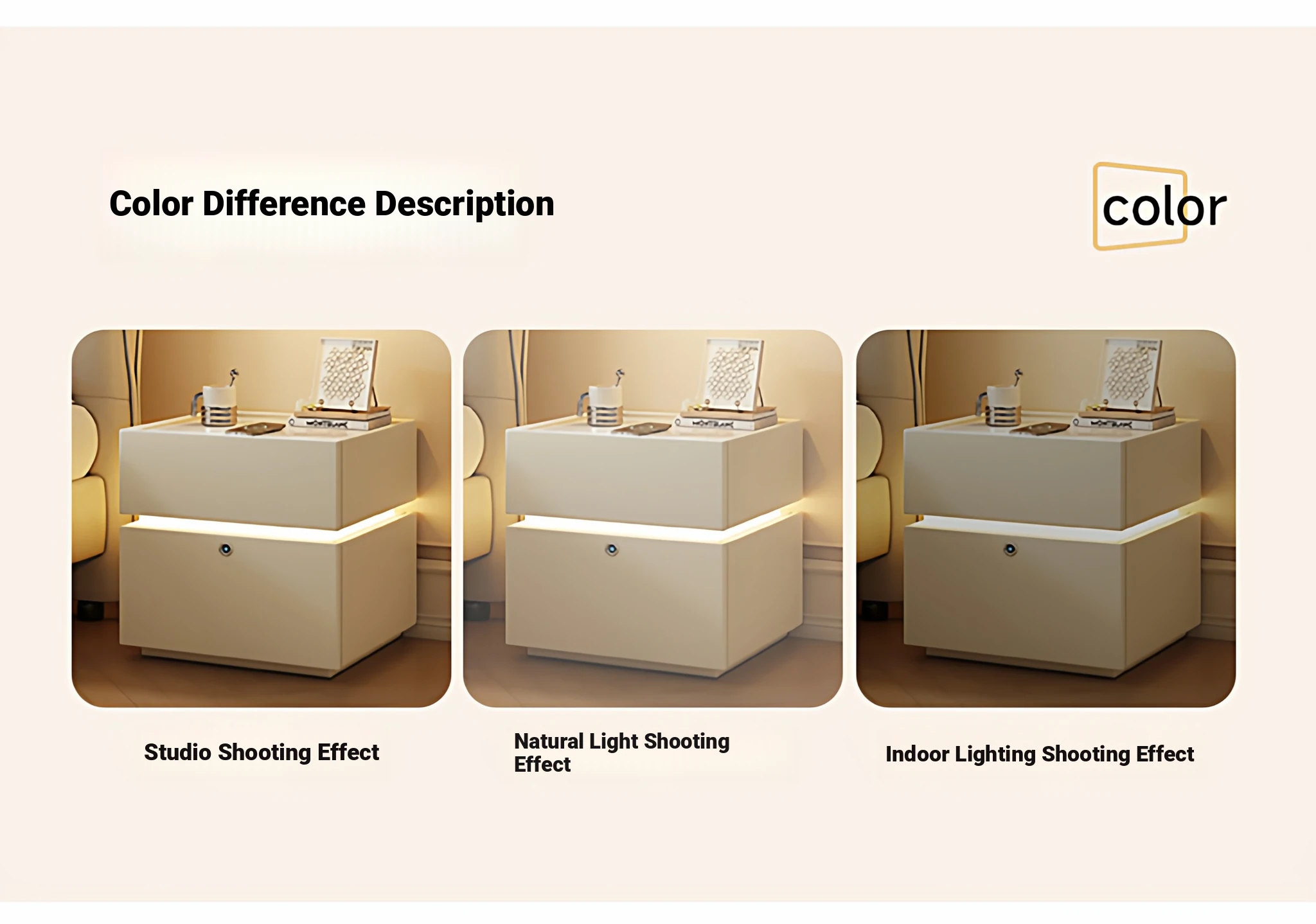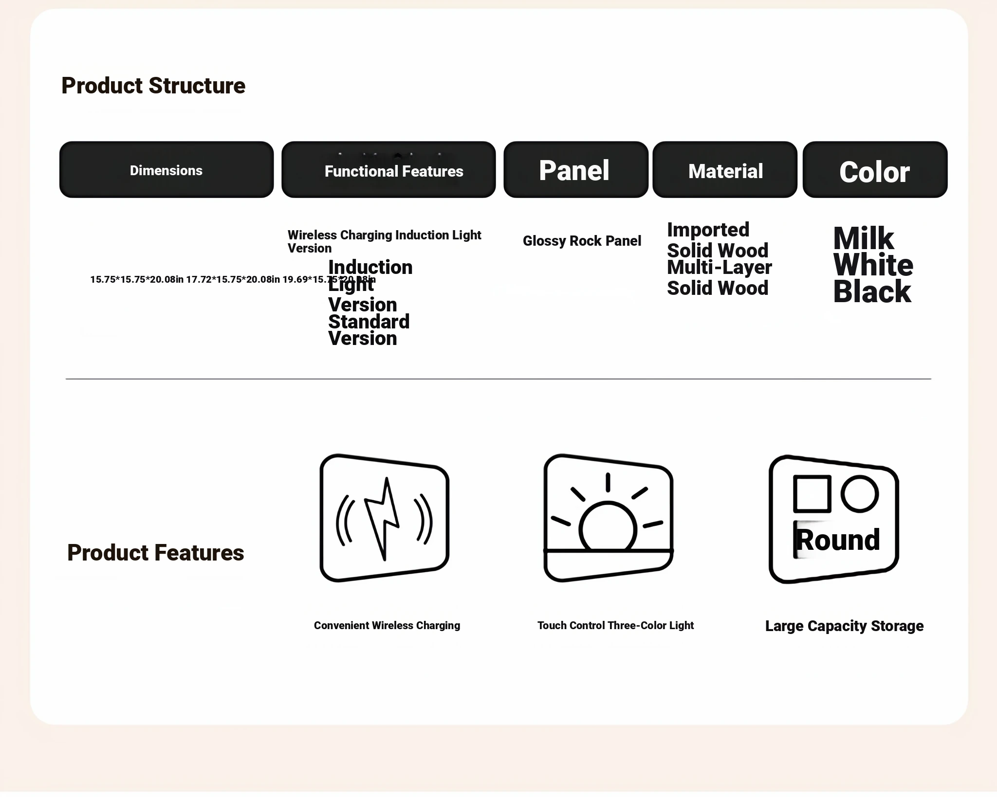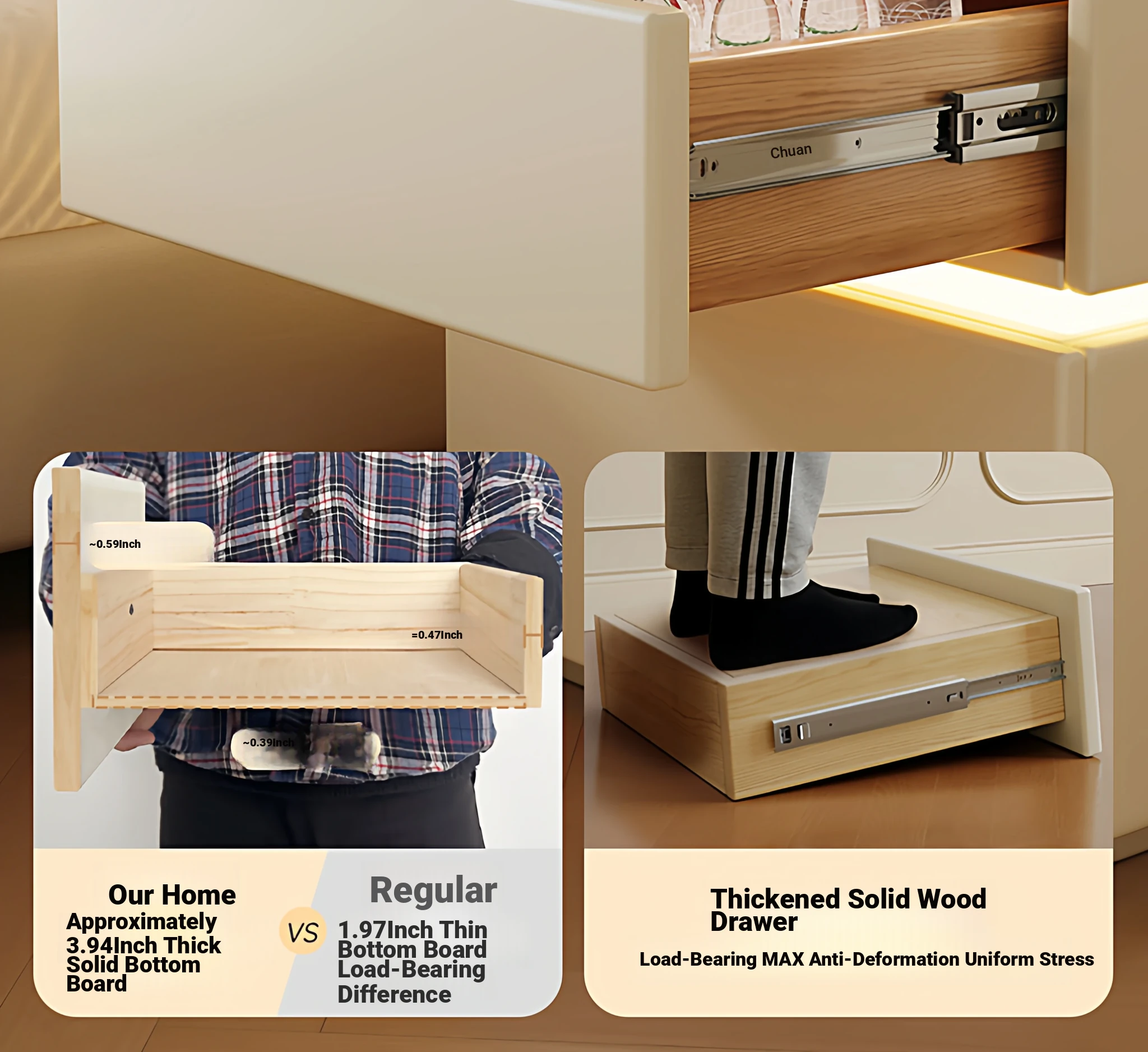 Cream White [Premium] 100% New Zealand Imported Pure Pine Wood Frame + Smart Touch Three-Color Light + Constant Temperature Wireless Charging