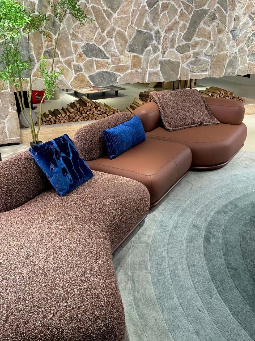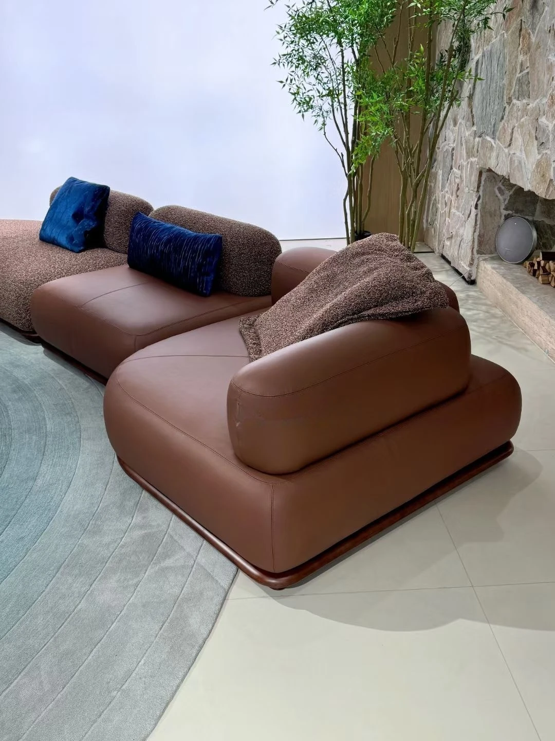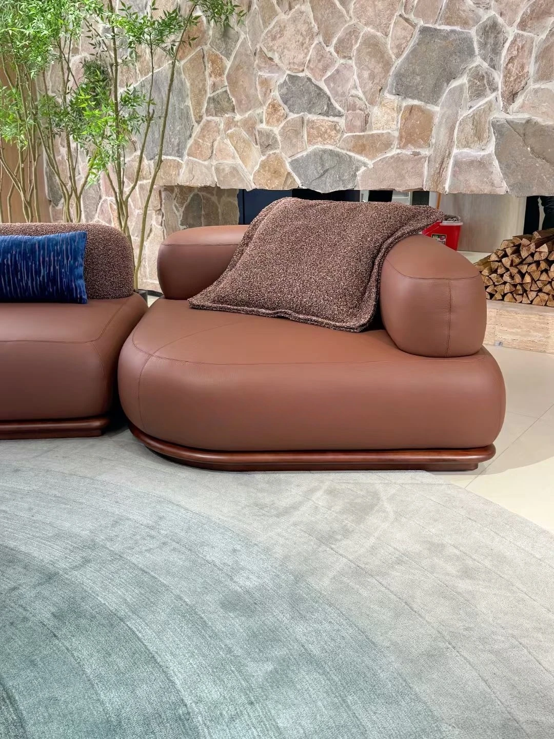 2025 New Italian Minimalist Solid Wood Sofa Set - Stylish Curved Design for Luxurious Living Rooms and Villas, Perfect for Home Use