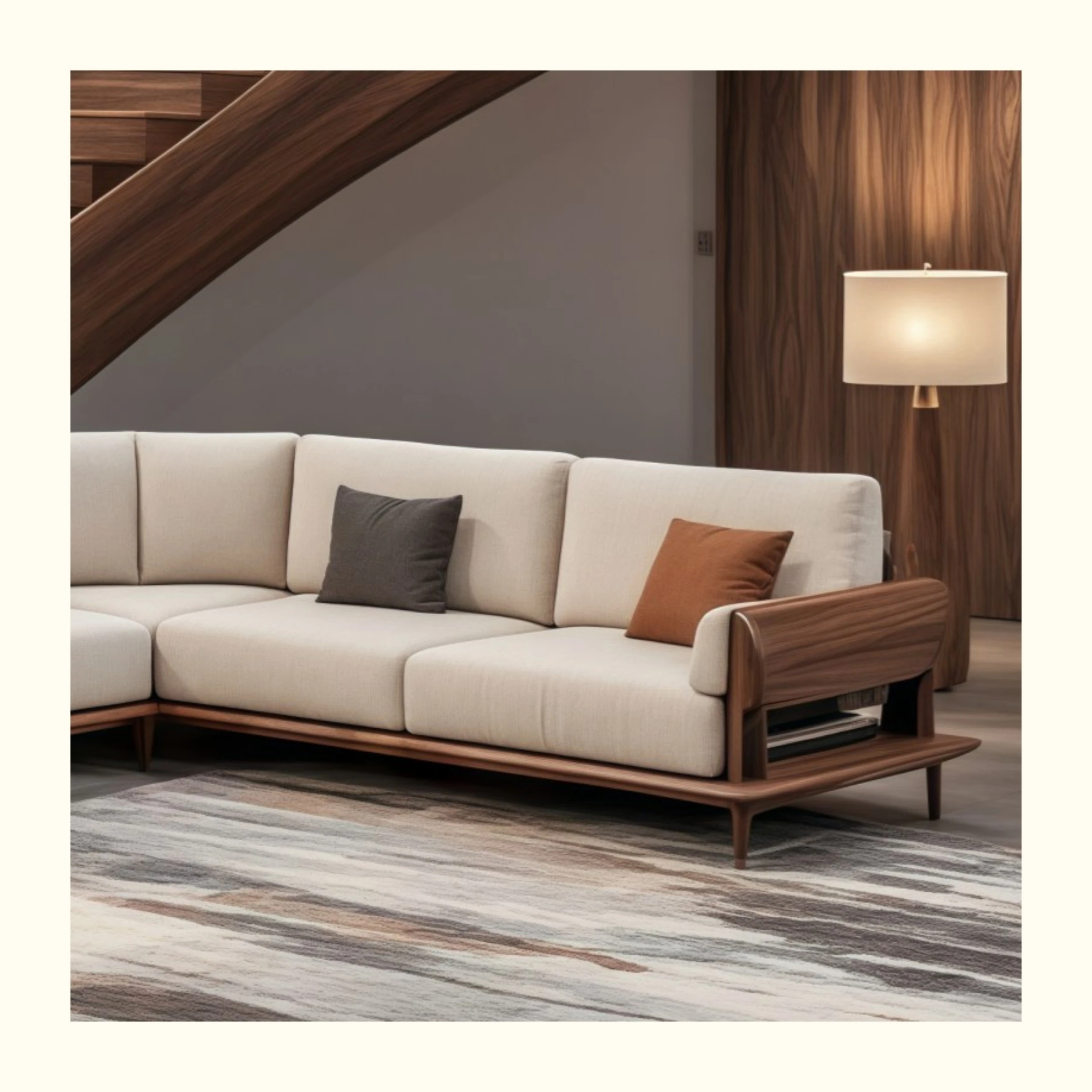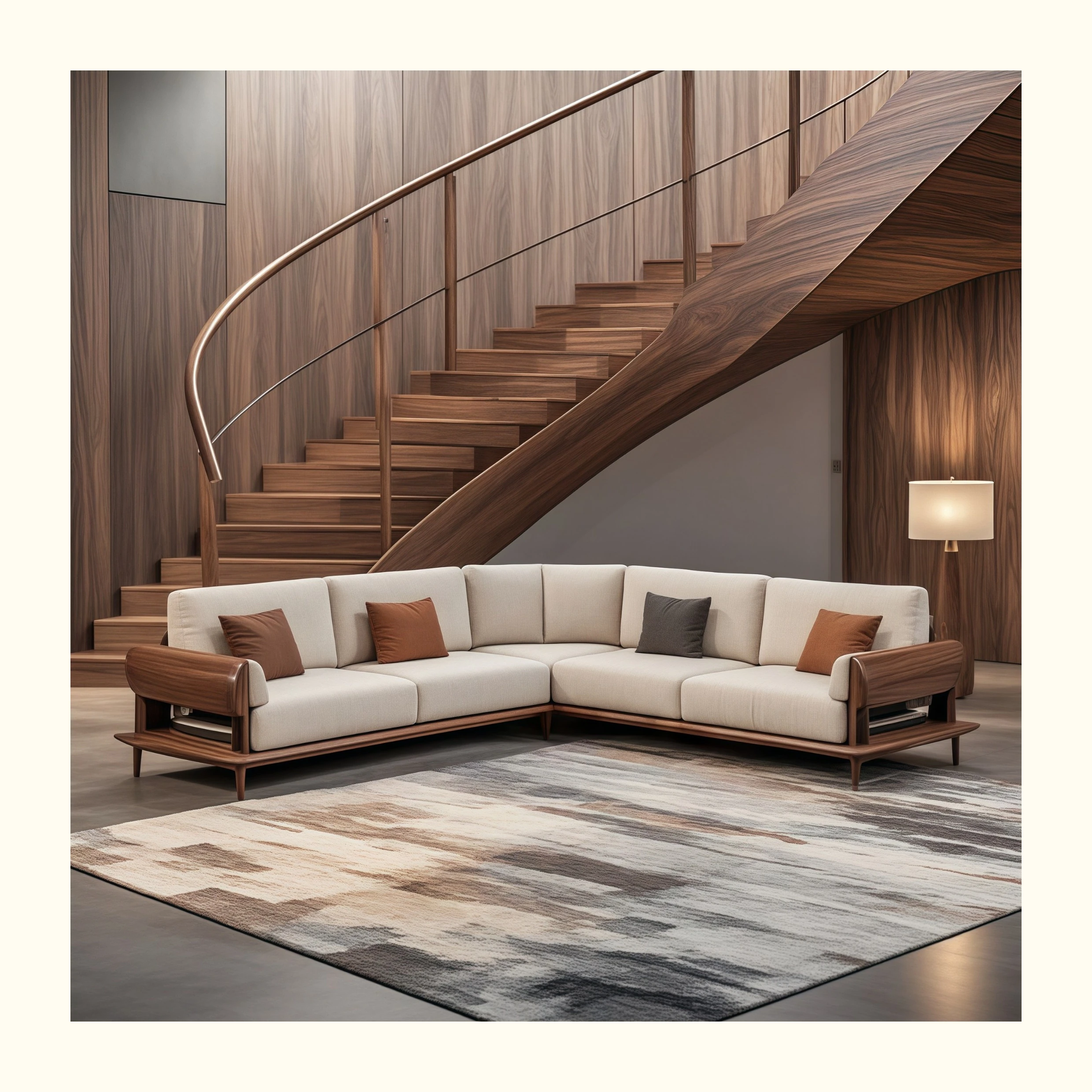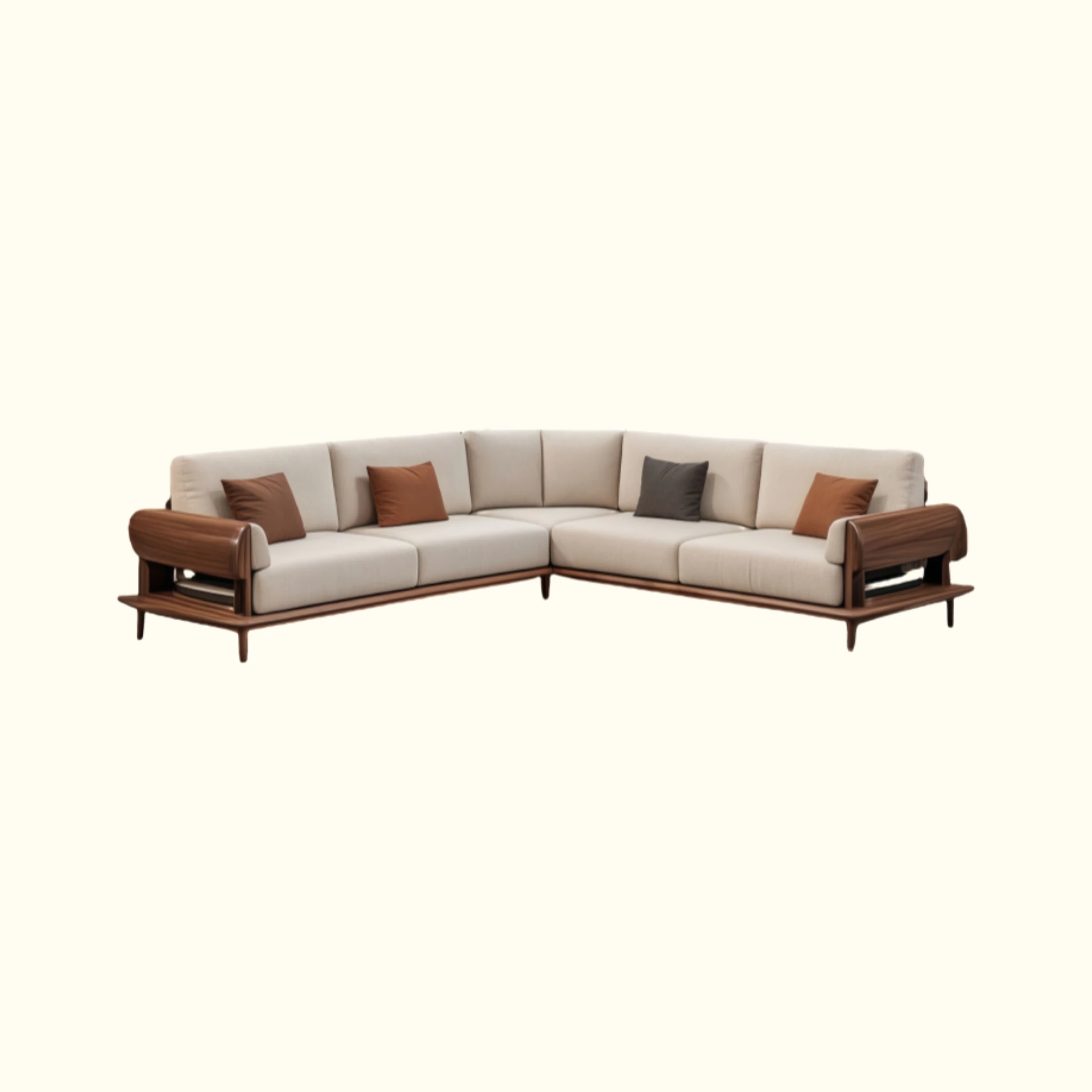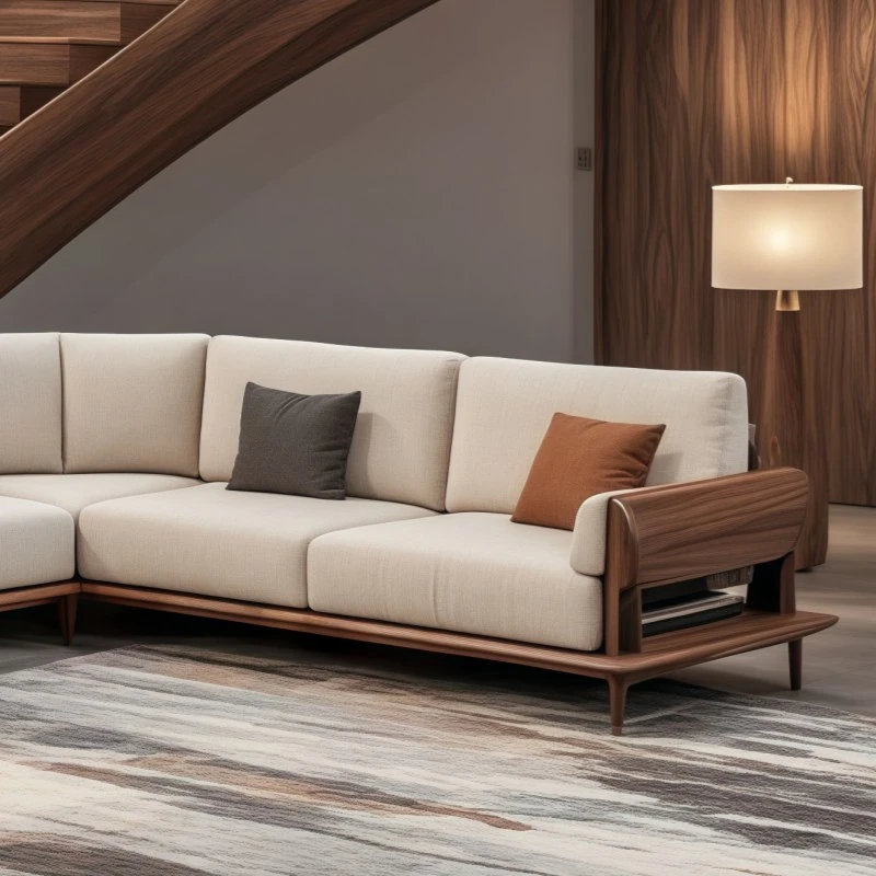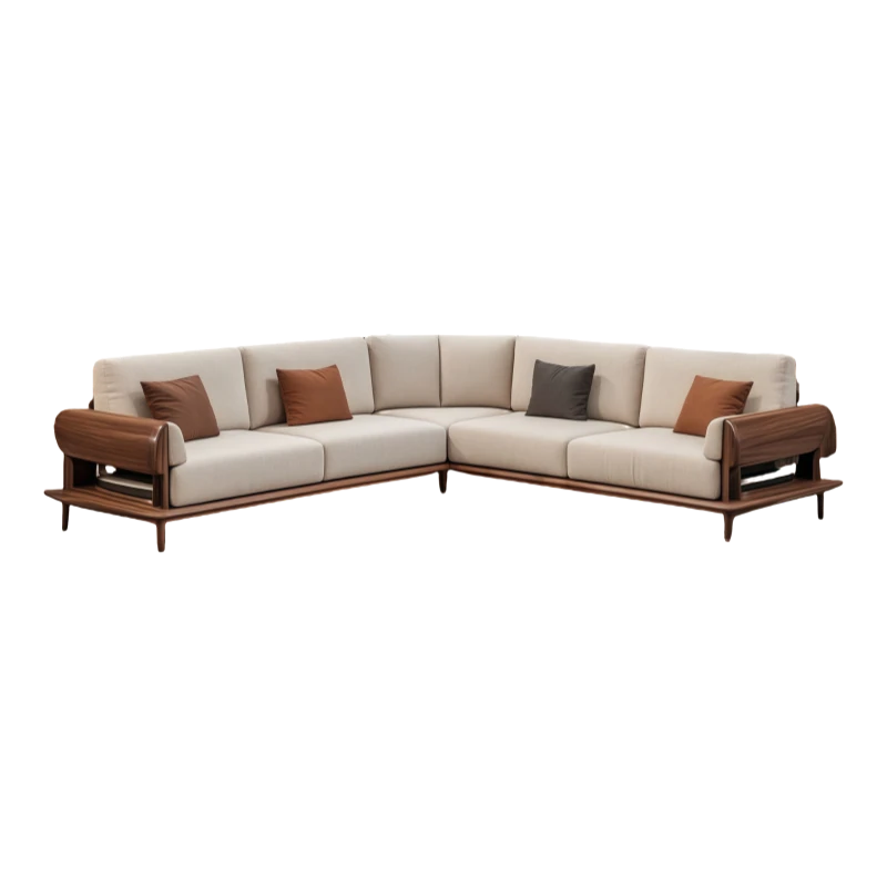 2025 New Luxury Italian Solid Wood Sofa - High-End Walnut Fabric Corner Sofa for Spacious Living Rooms and Villas