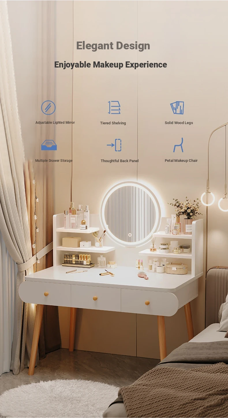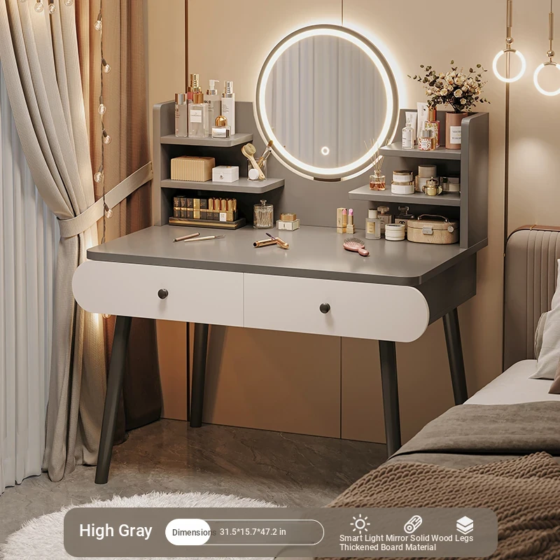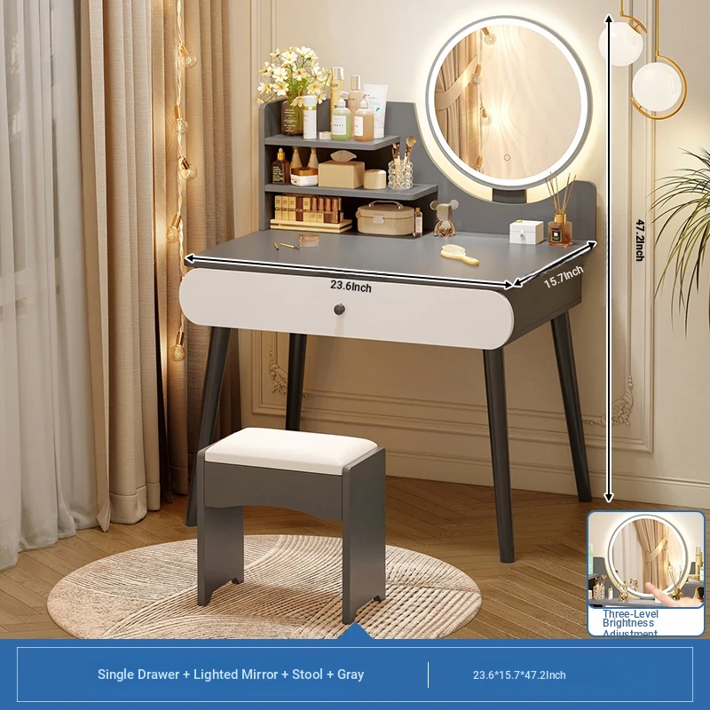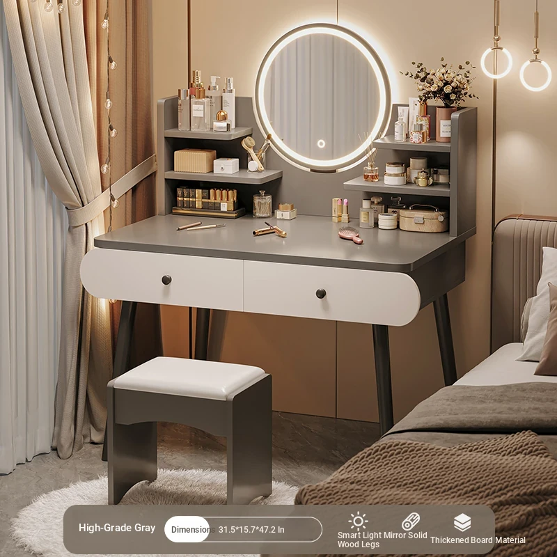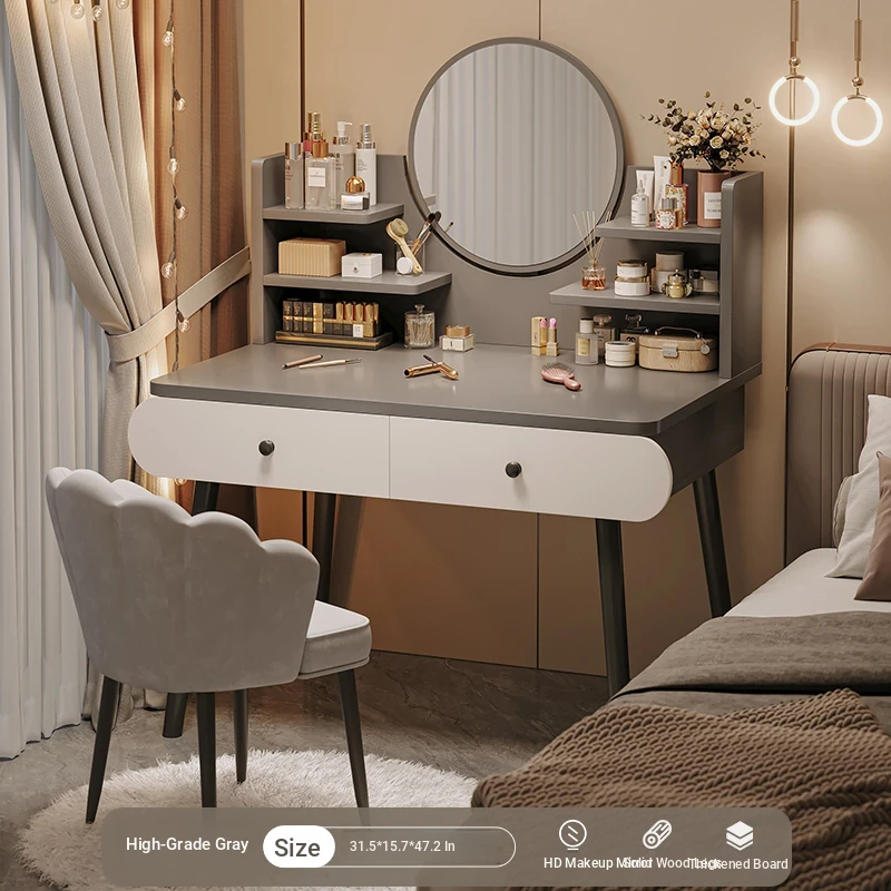 Special Offer [Smart Makeup Mirror Three Layers Double Draw + Fairy Chair] 31.50in Gray●