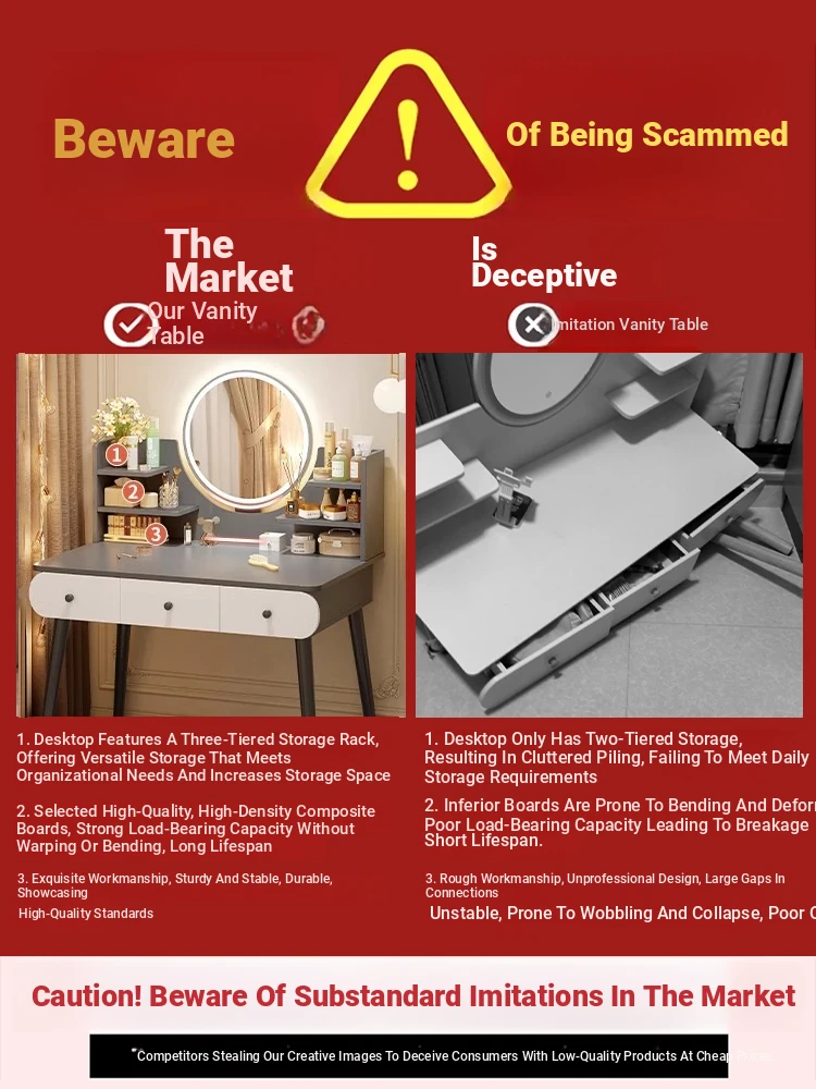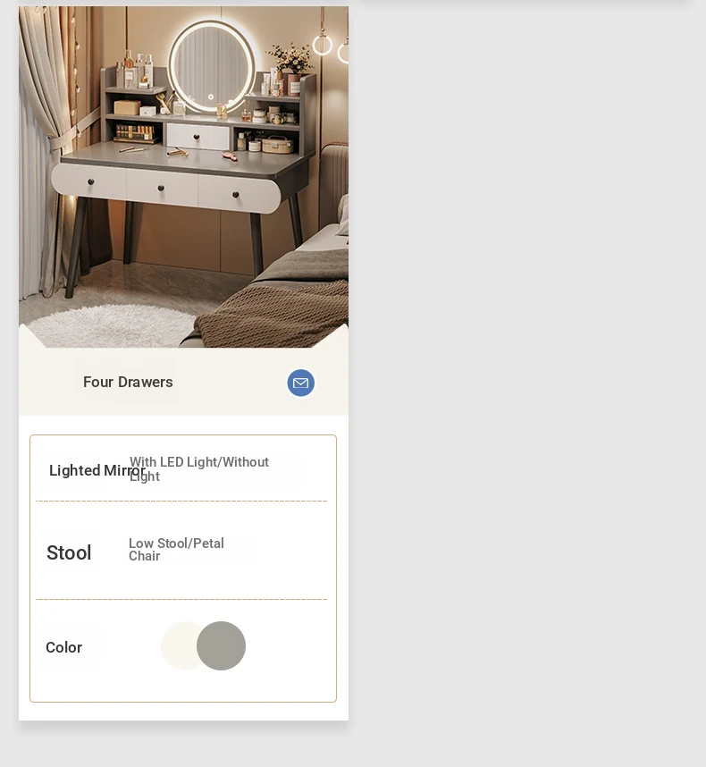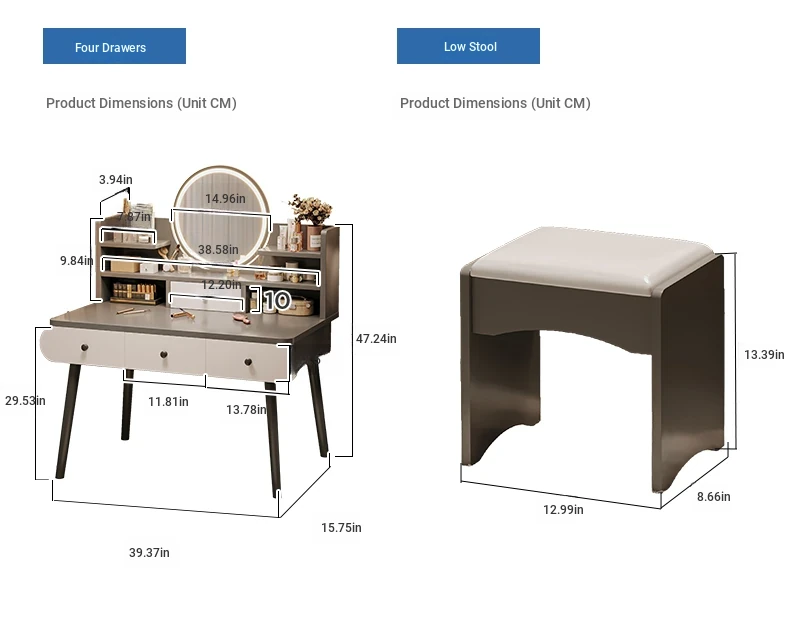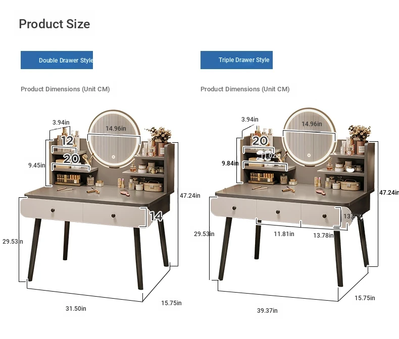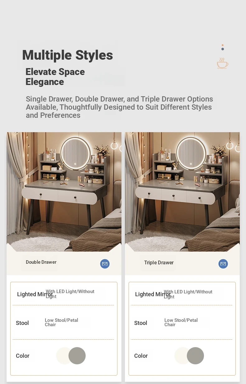 Special Offer [Smart Makeup Mirror Three Layers Double Draw + Fairy Chair] 31.50in Gray●