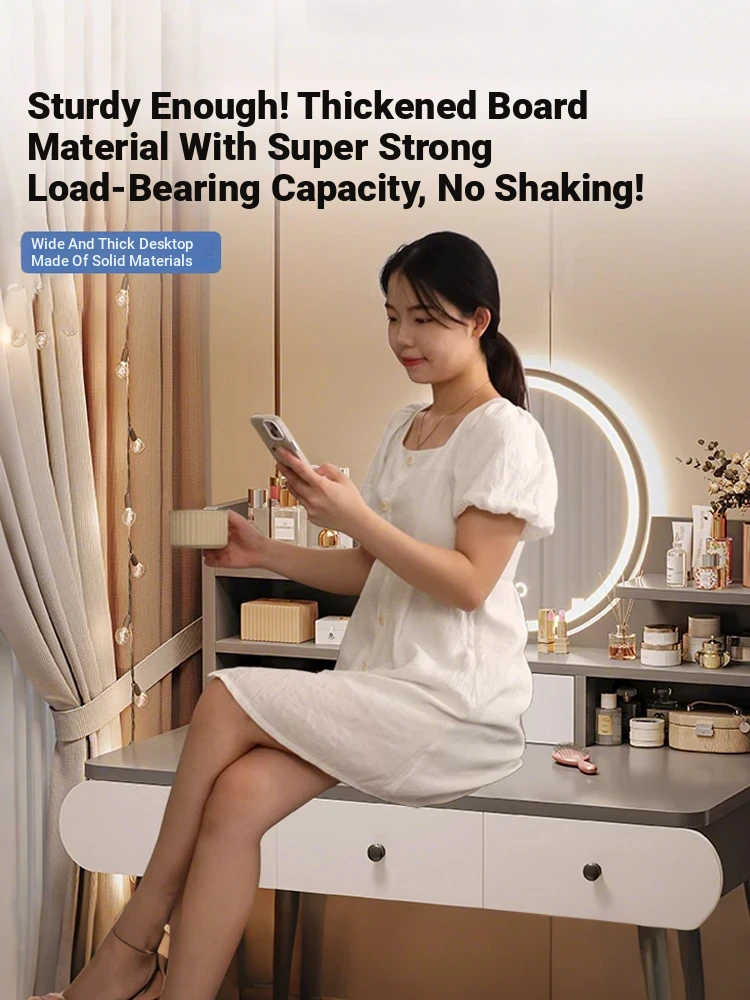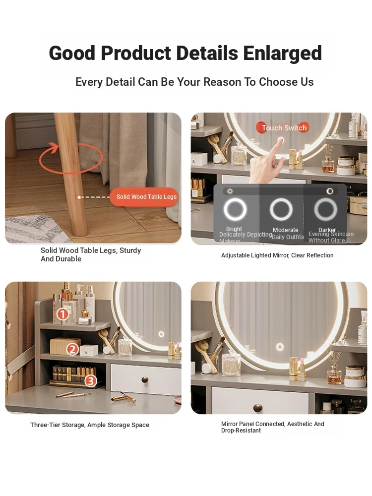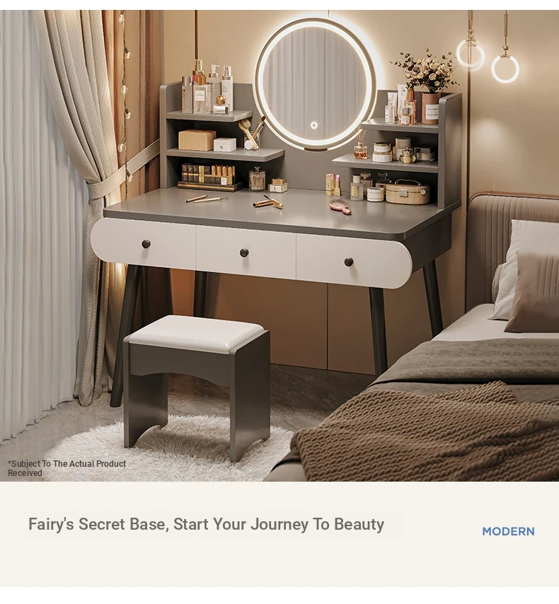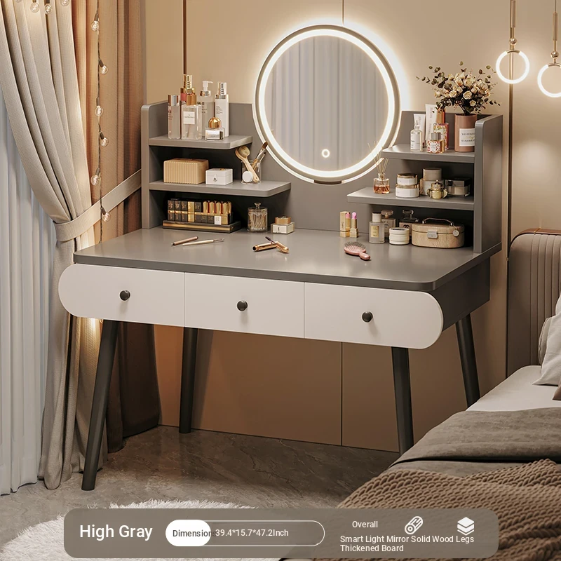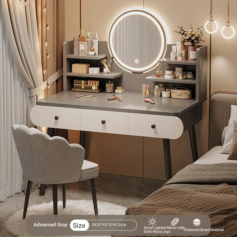 Hot-Selling Main Picture Model [Smart Makeup Mirror + Three Layers and Four Draws + Fairy Chair] 39.37in Gray●