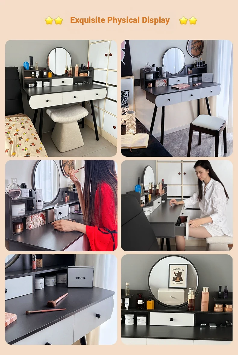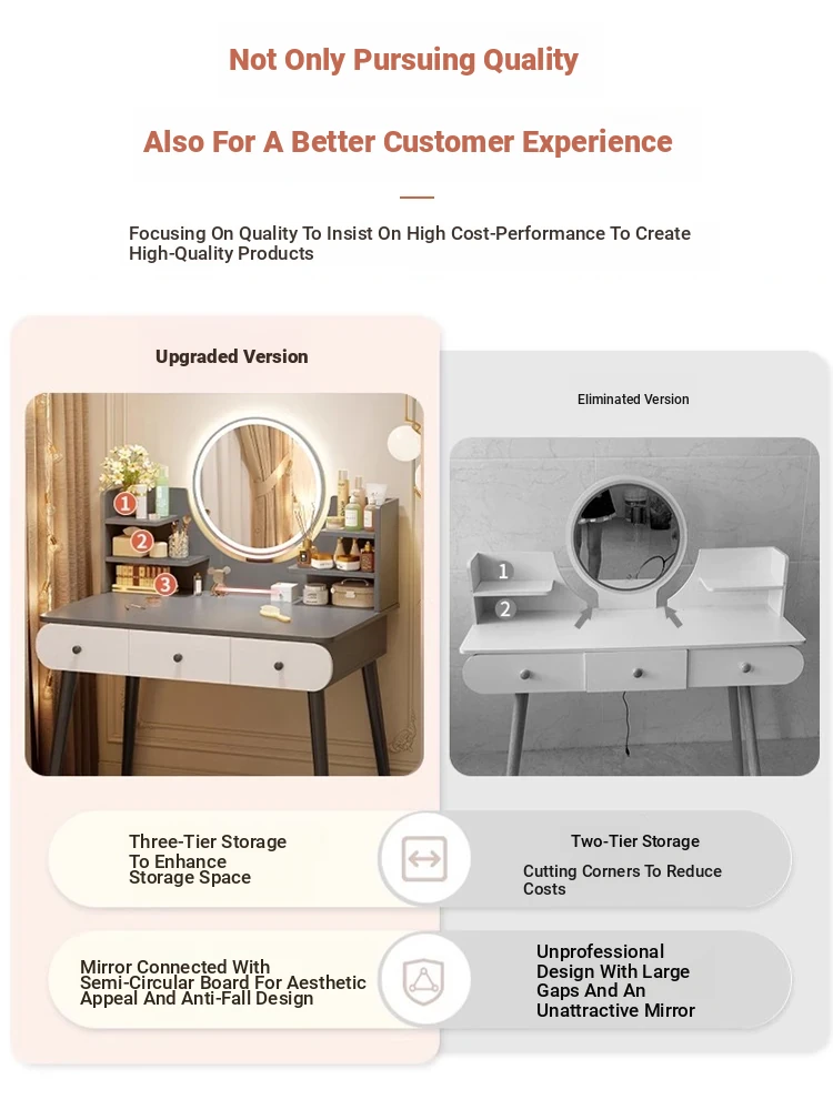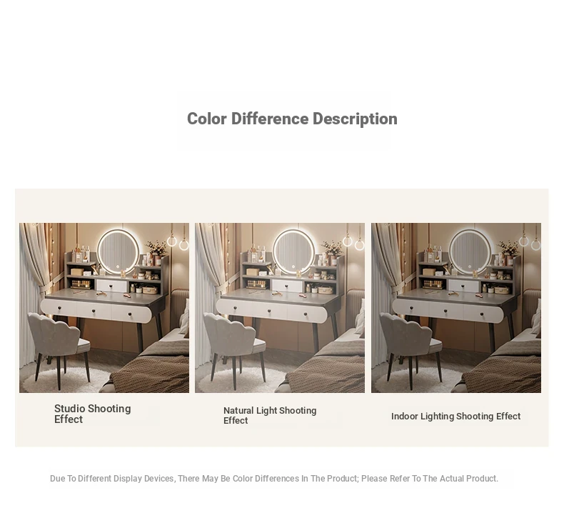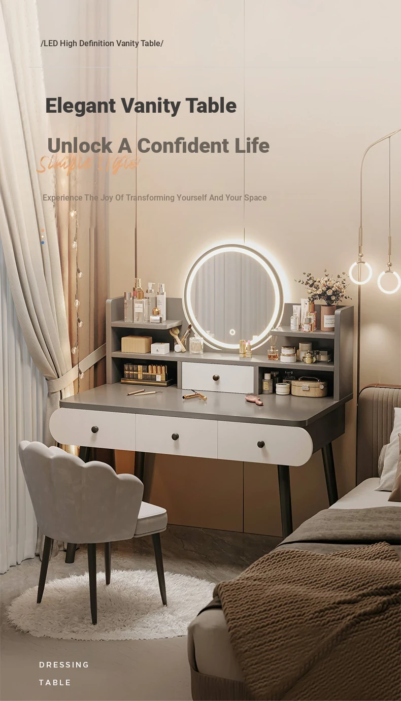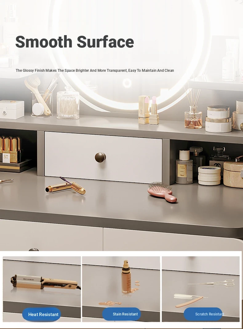 Hot-Selling Main Picture Model [Smart Makeup Mirror + Three Layers and Four Draws + Fairy Chair] 39.37in Gray●