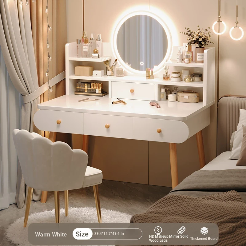 【Smart Makeup Mirror + Three-Tier Four-Drawer Unit + Fairy Chair】100Cm White●