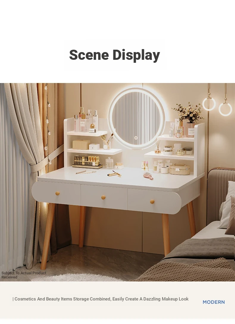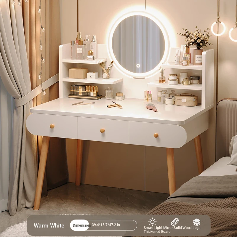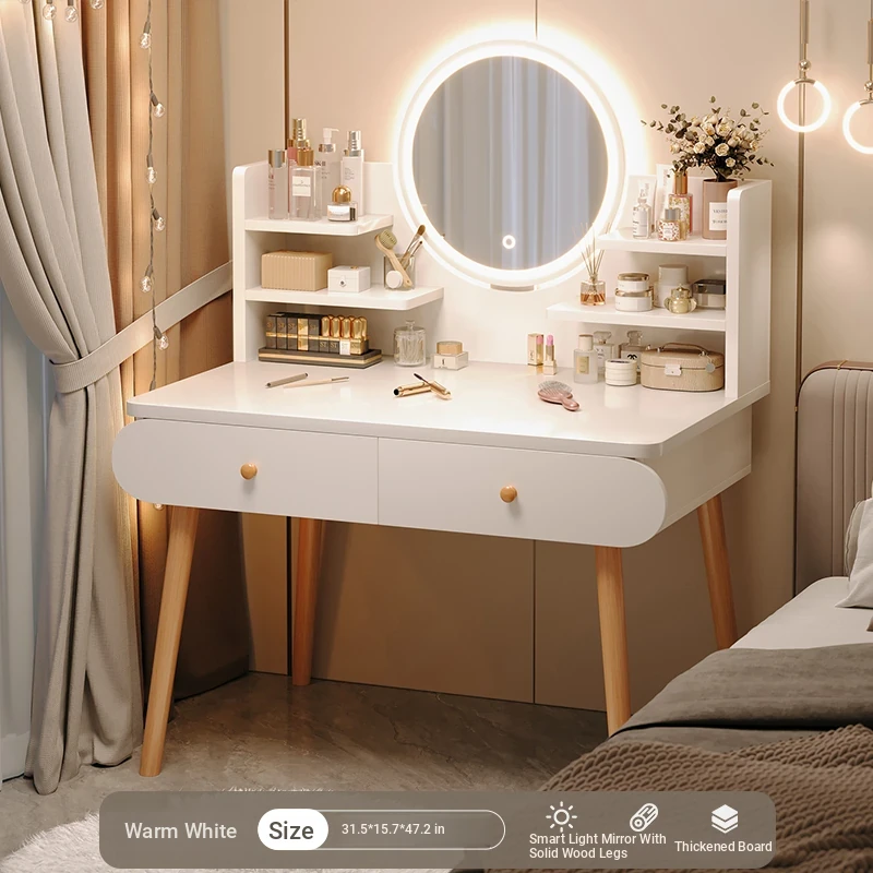 【Smart Makeup Mirror + Three-Tier Double Drawer】80Cm White ●