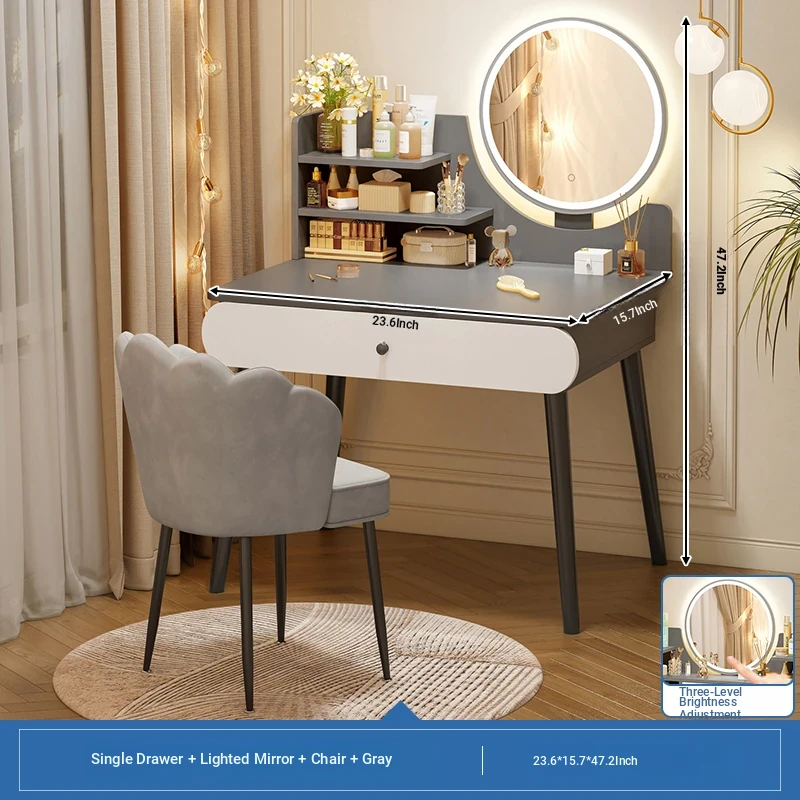 [Smart Makeup Mirror + Three-Layer Single Drawer + Fairy Chair] 23.62in Gray ●