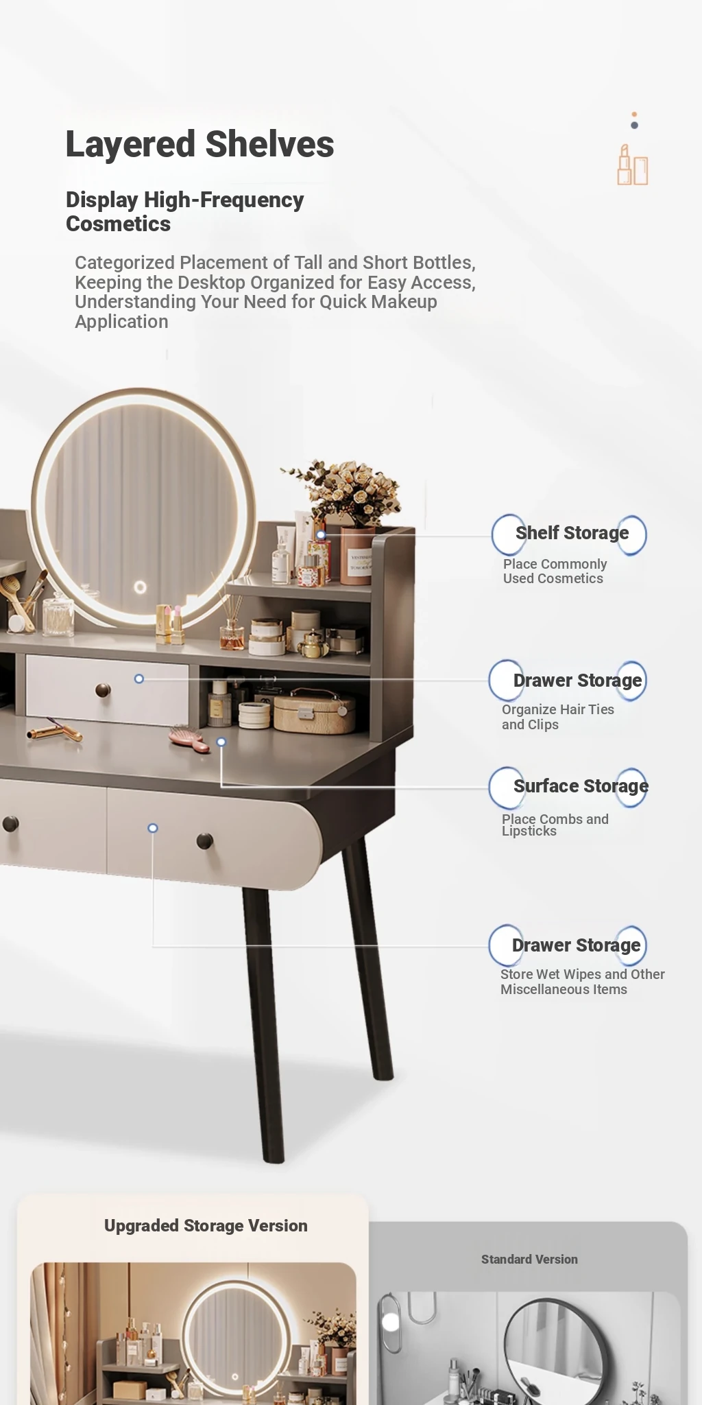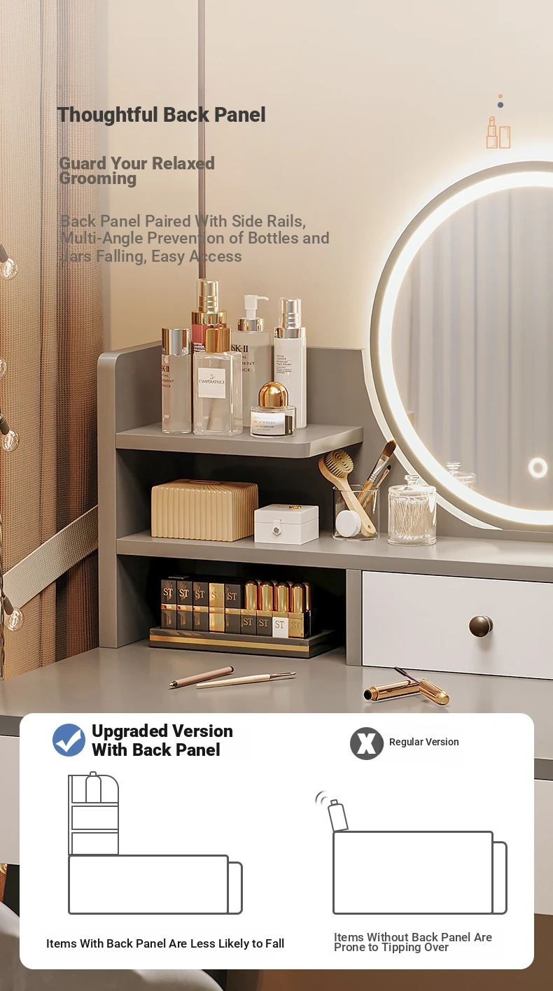 [Smart Makeup Mirror + Three Layers and Four Draws] 39.37in Gray●