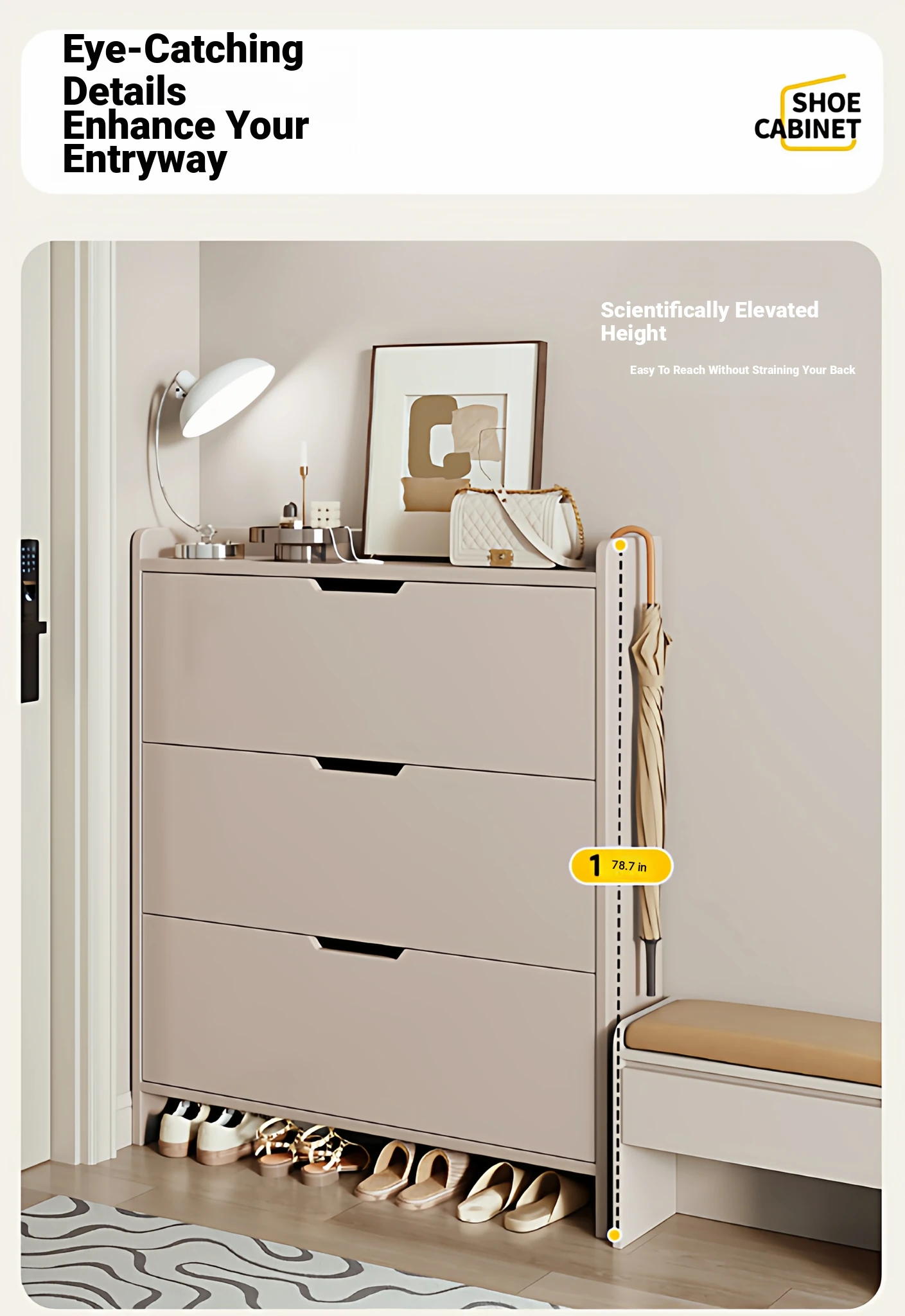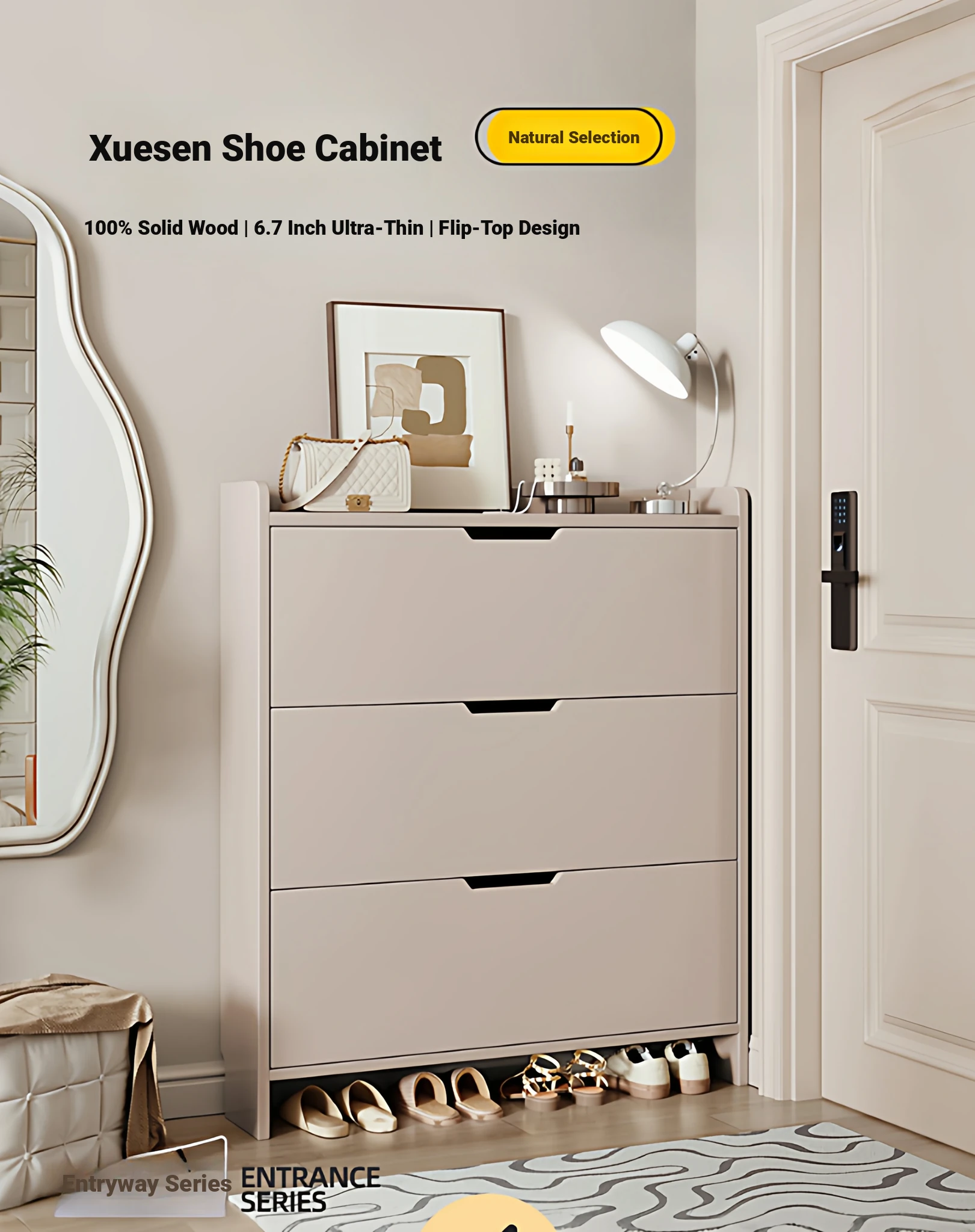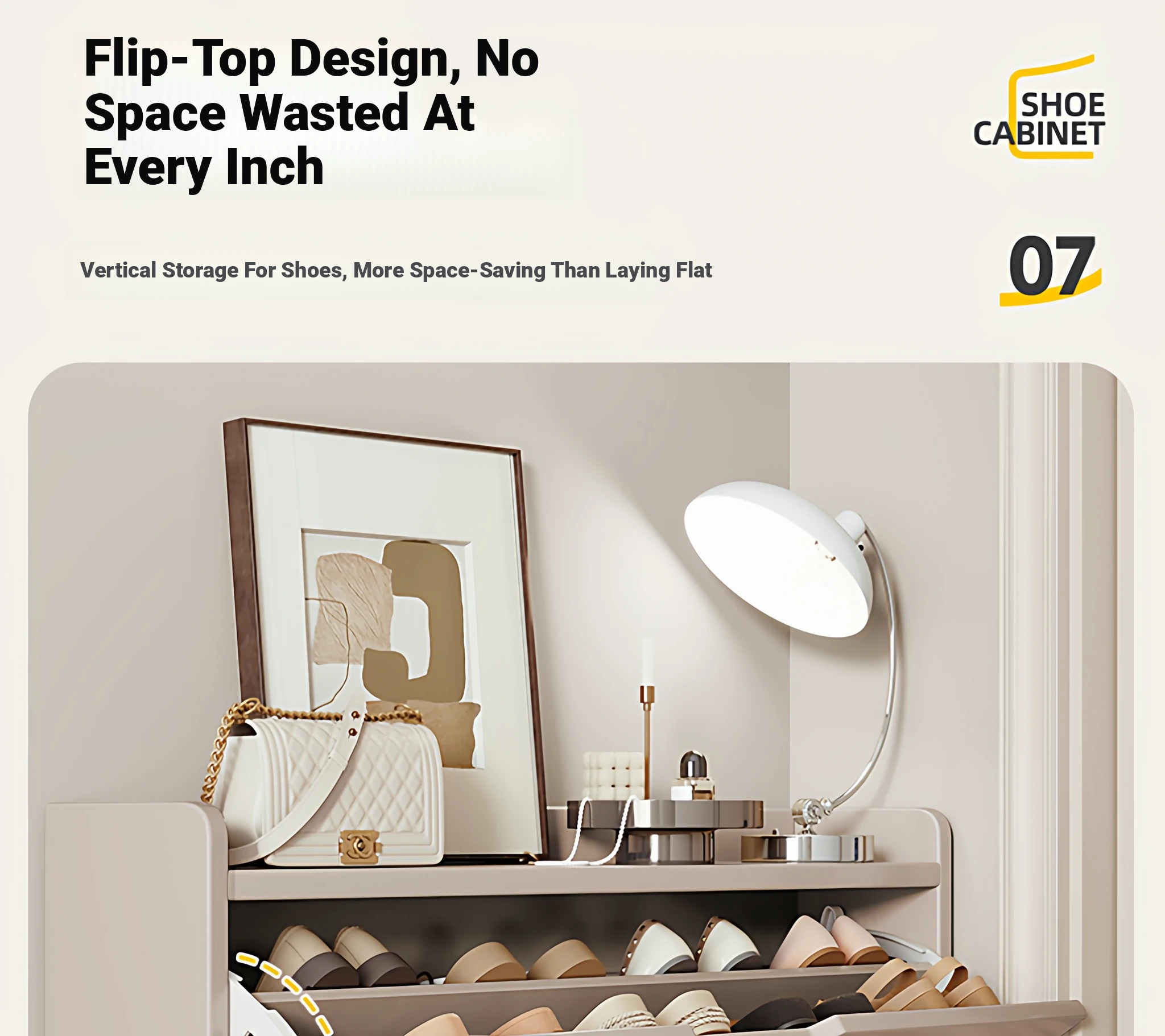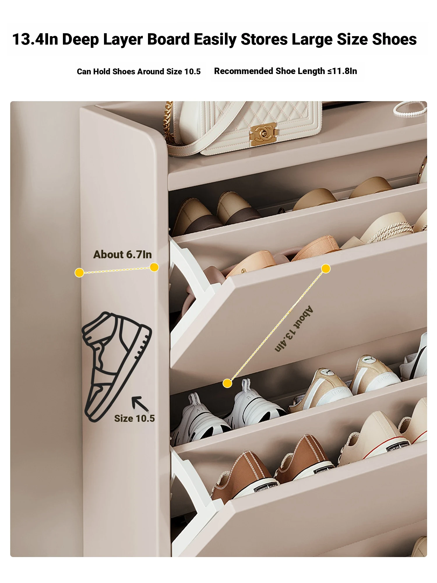 2025 New Slim Solid Wood Flip Shoe Cabinet - Space-Saving Entryway Storage Solution for Home, Perfect for Narrow Hallways and Doorways