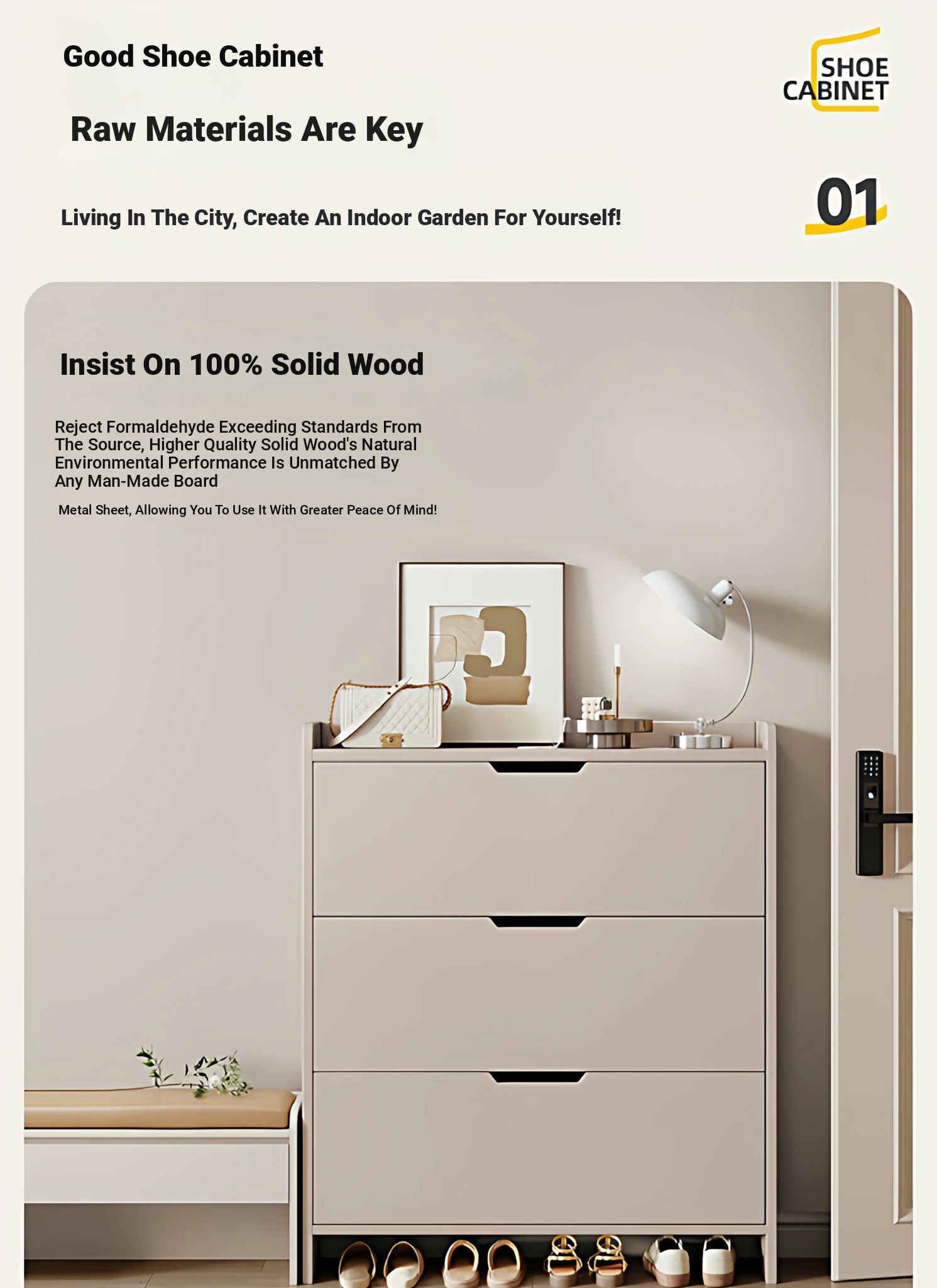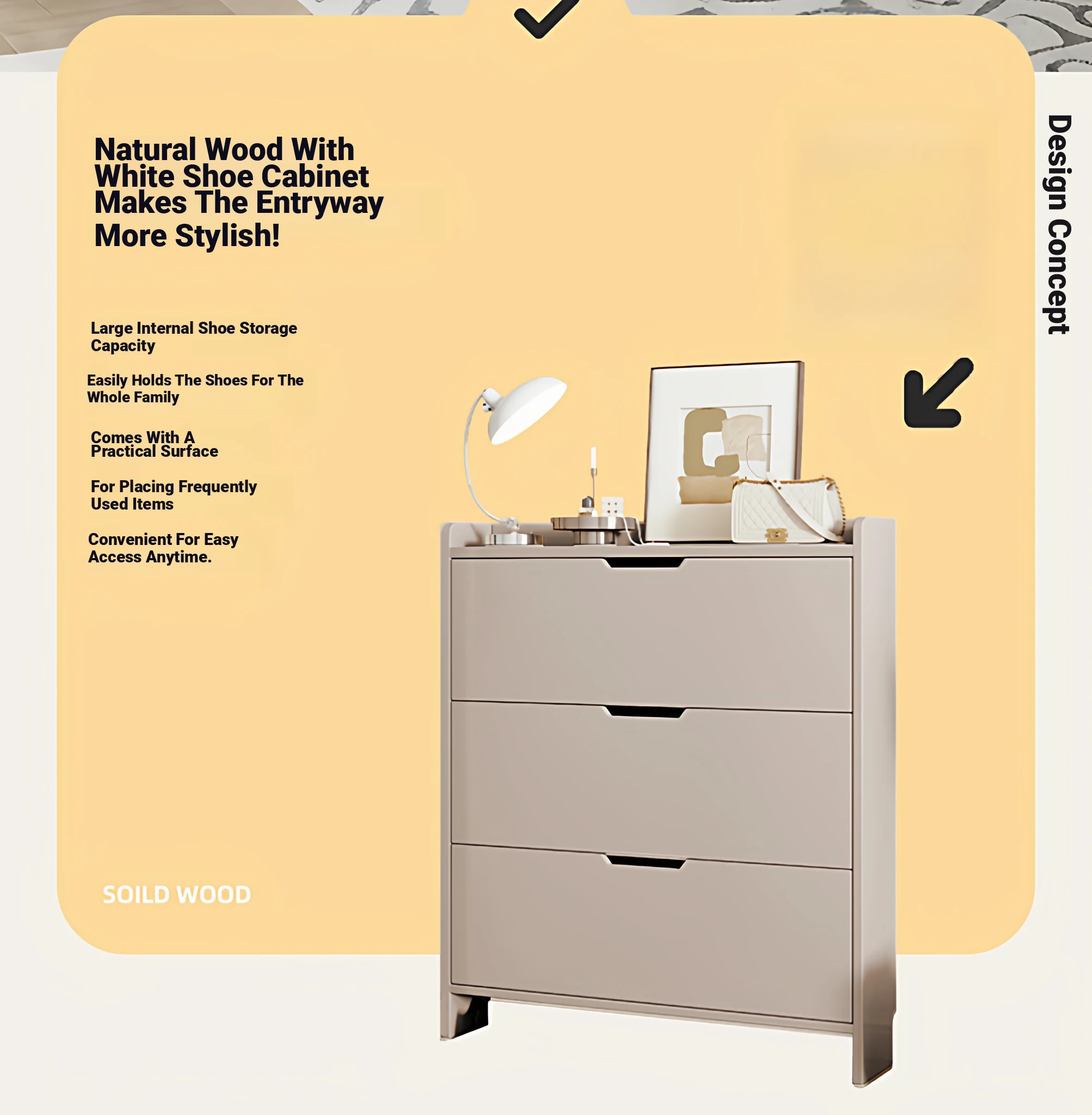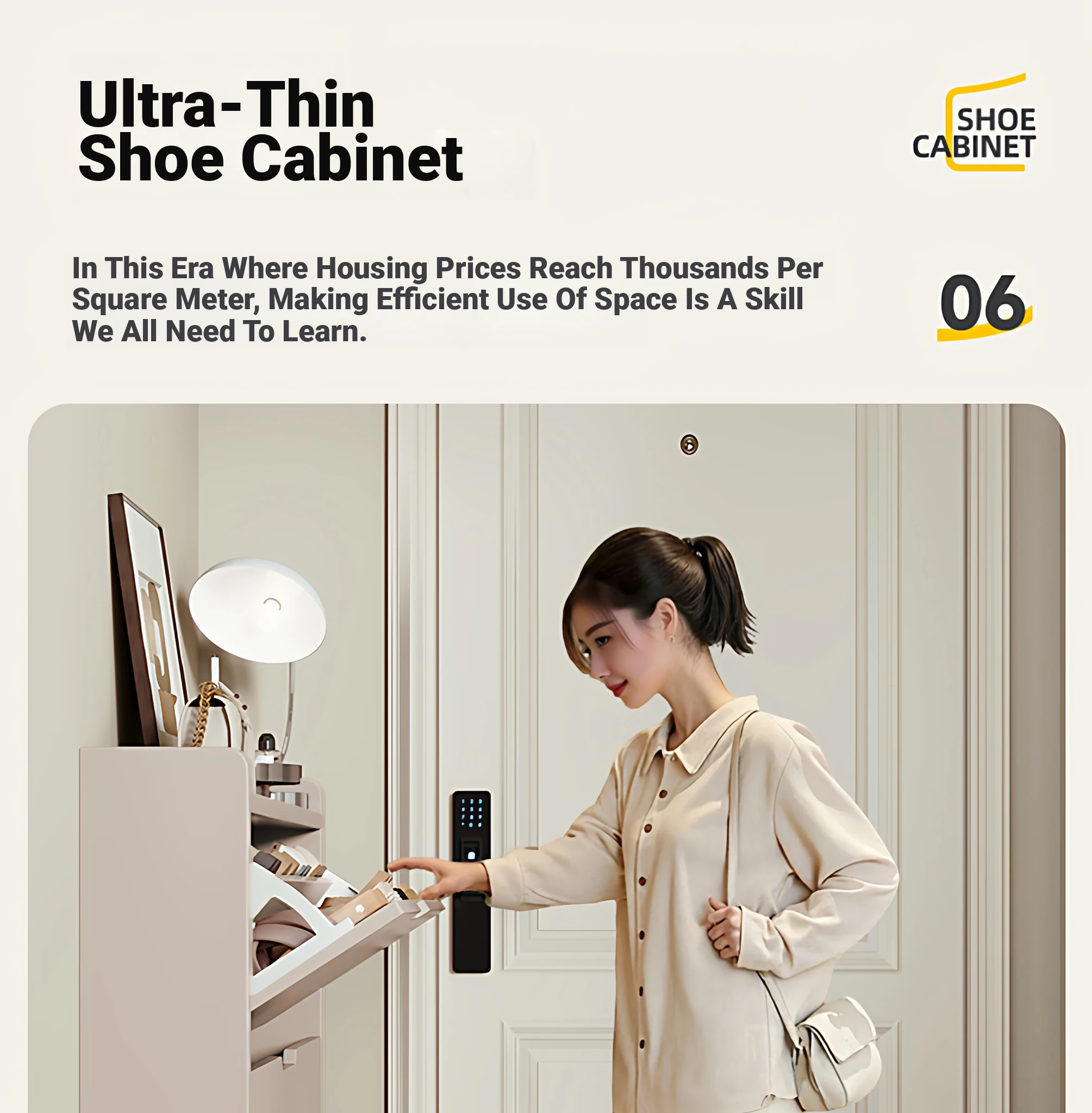 2025 New Slim Solid Wood Flip Shoe Cabinet - Space-Saving Entryway Storage Solution for Home, Perfect for Narrow Hallways and Doorways