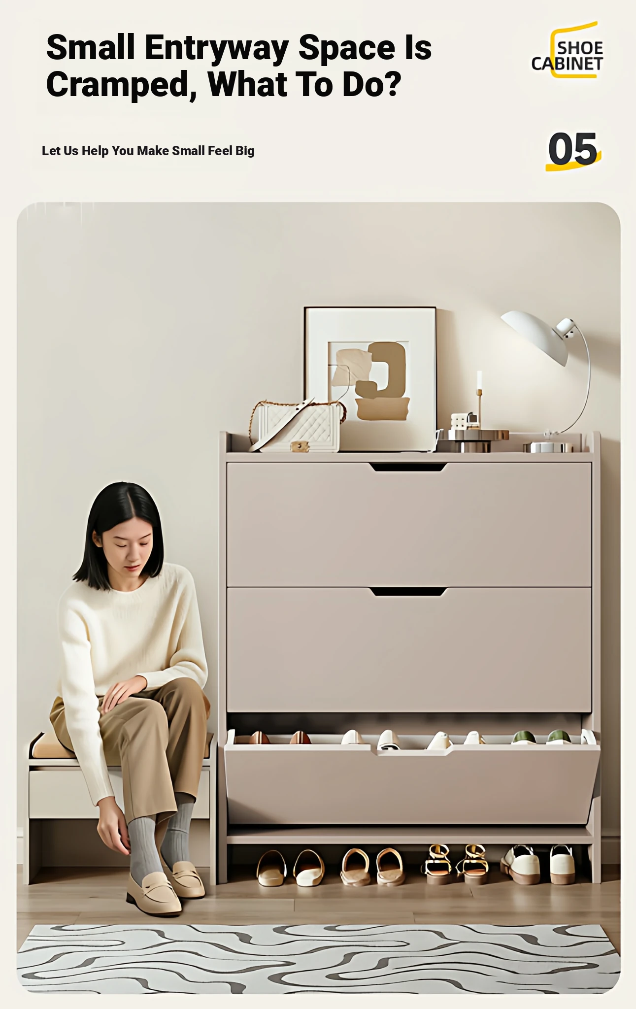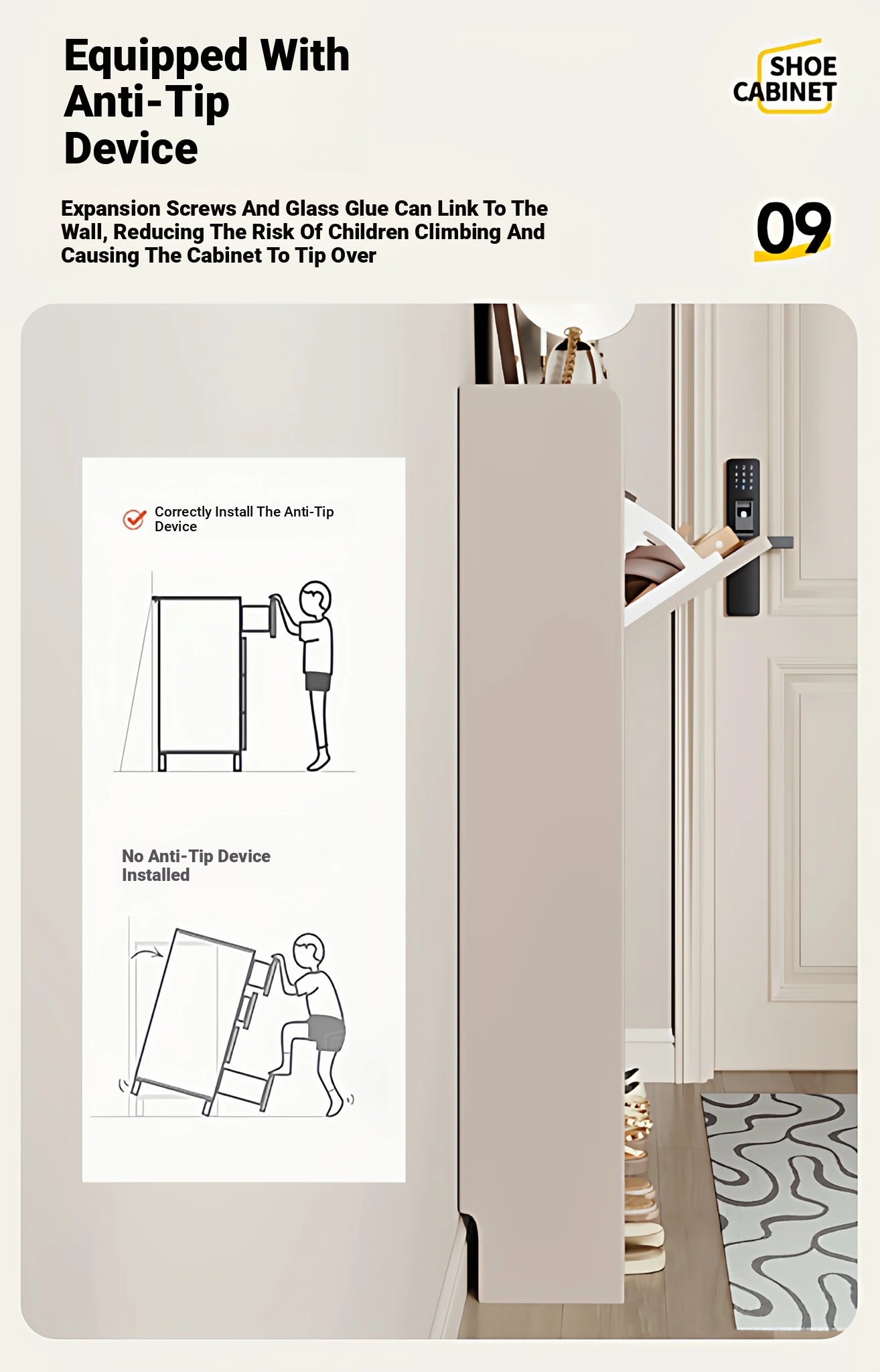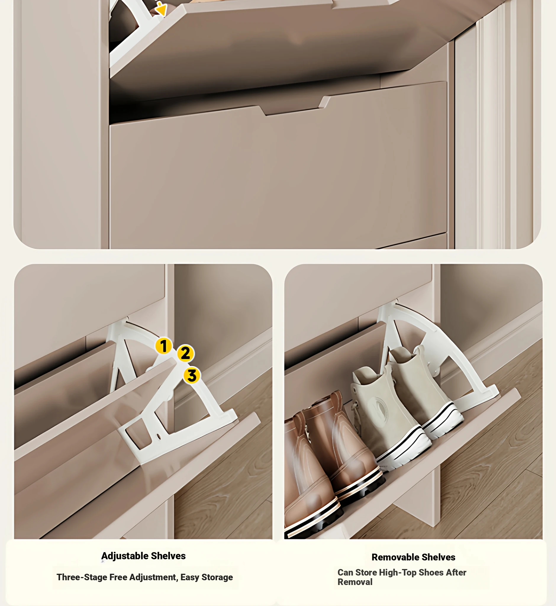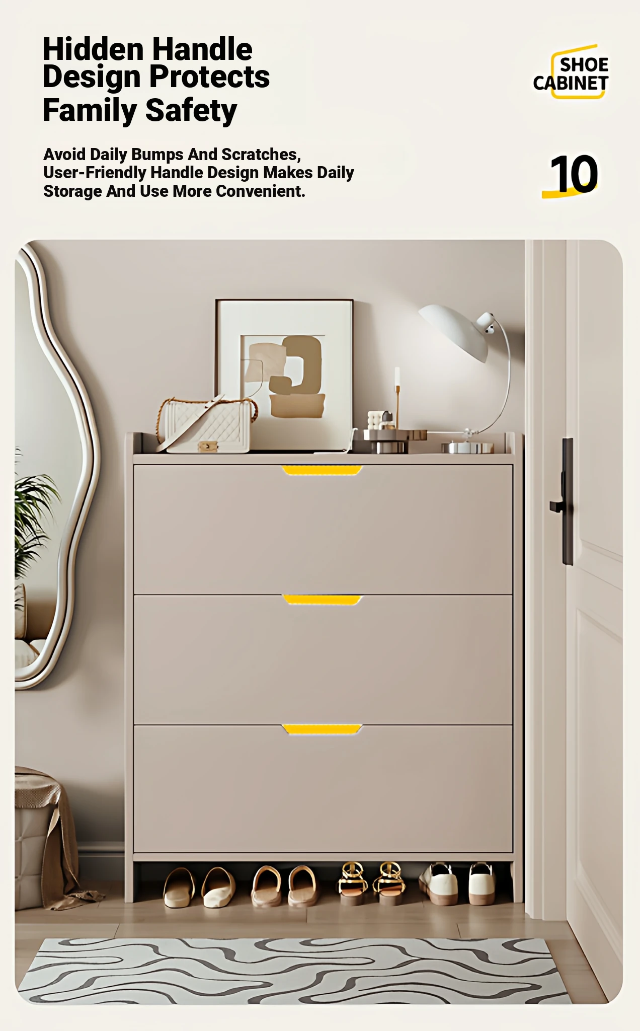 2025 New Slim Solid Wood Flip Shoe Cabinet - Space-Saving Entryway Storage Solution for Home, Perfect for Narrow Hallways and Doorways