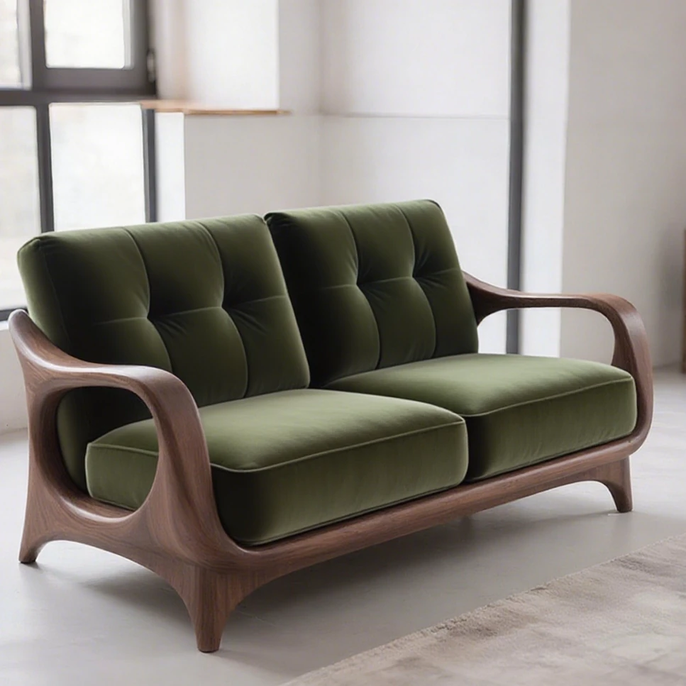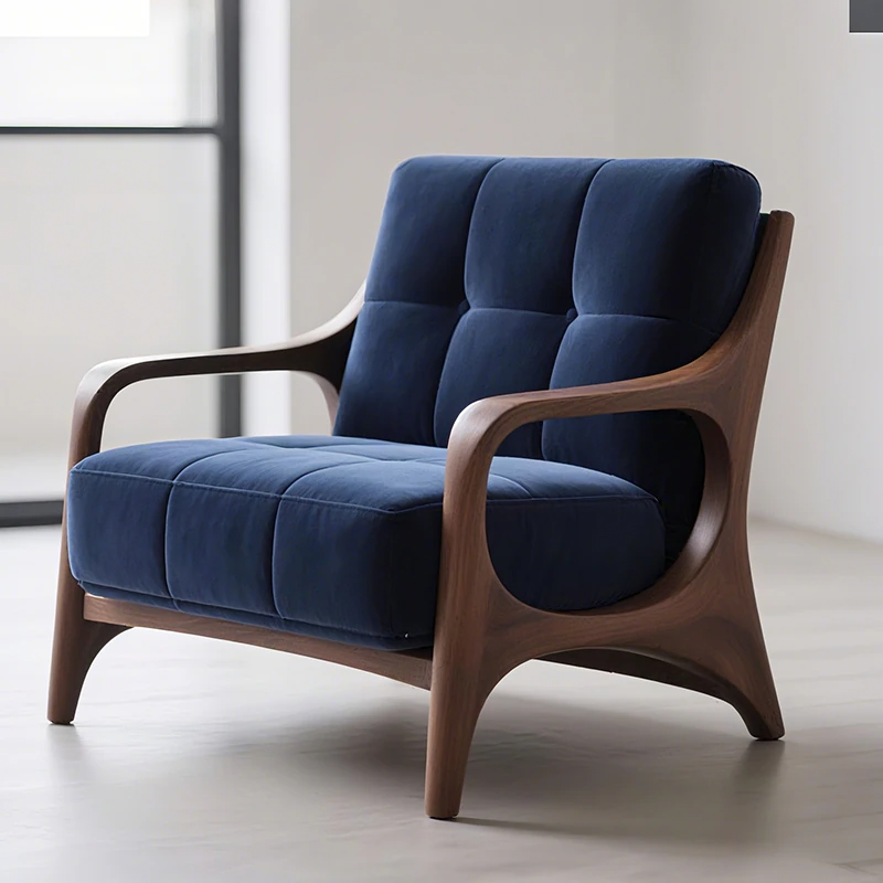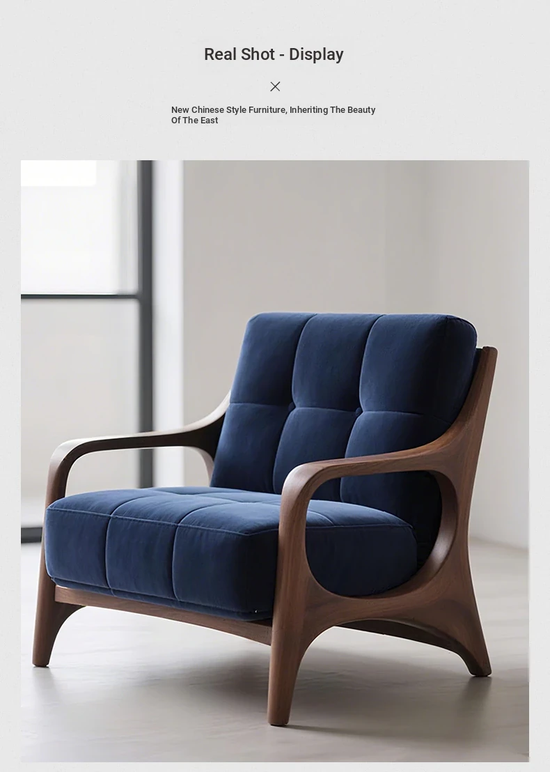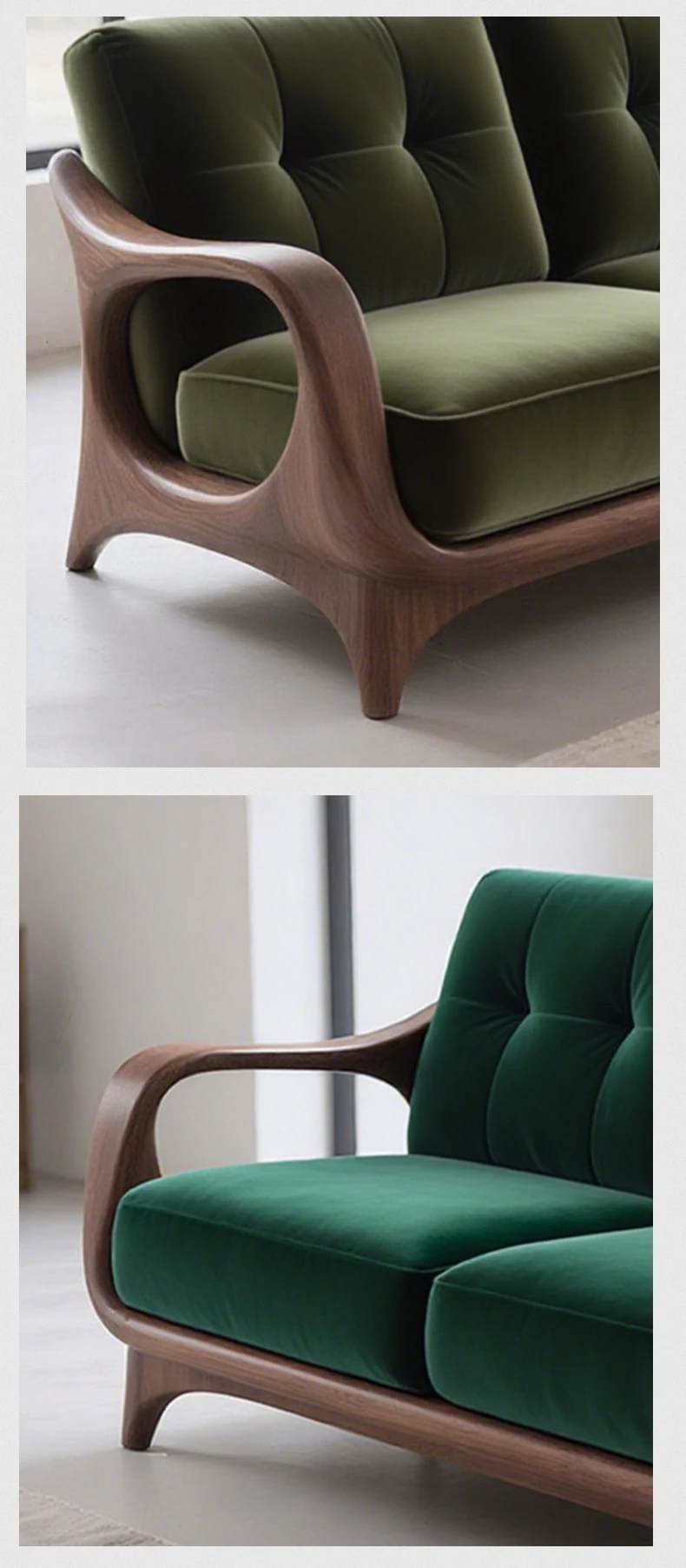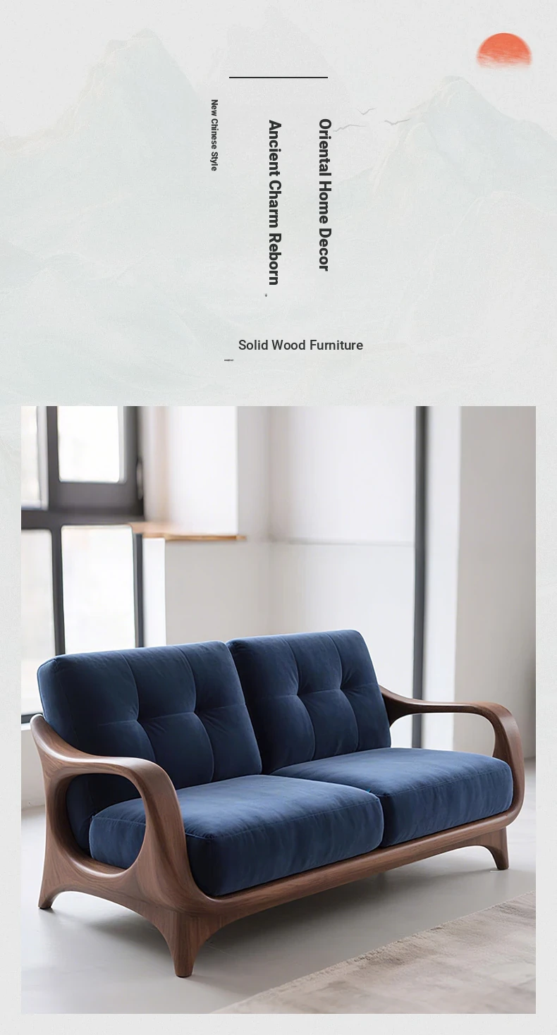 2025 New Vintage Solid Wood Sofa – High-End Walnut Fabric Reception Sofa for Living Room, Hotels, and Guesthouses