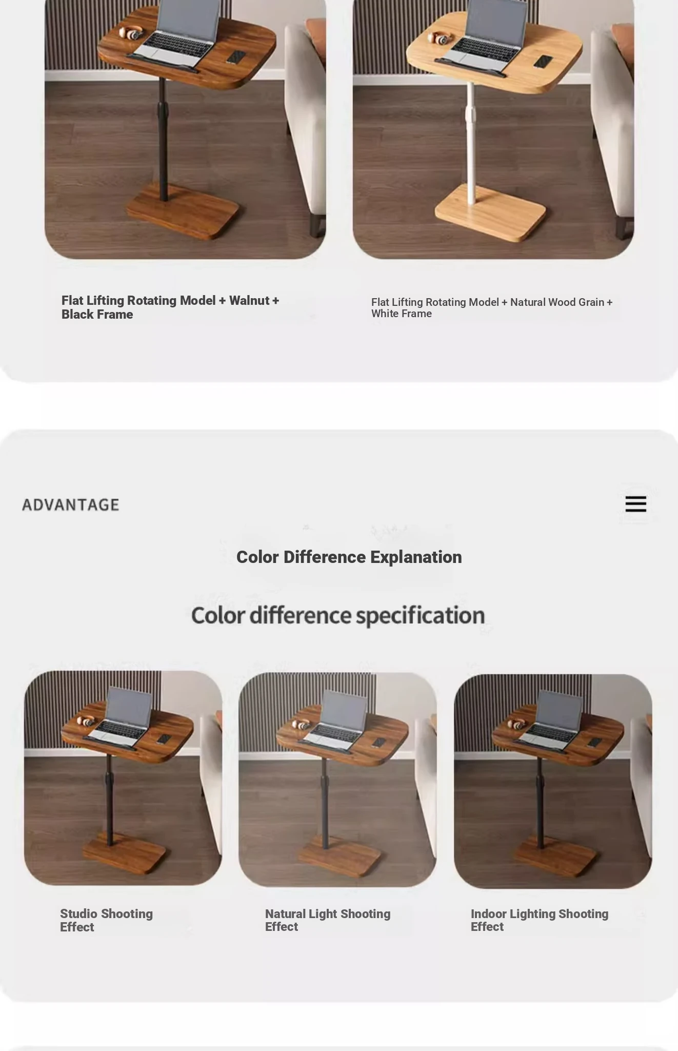 【Elevated Edge, Height-Adjustable】Natural Wood Grain