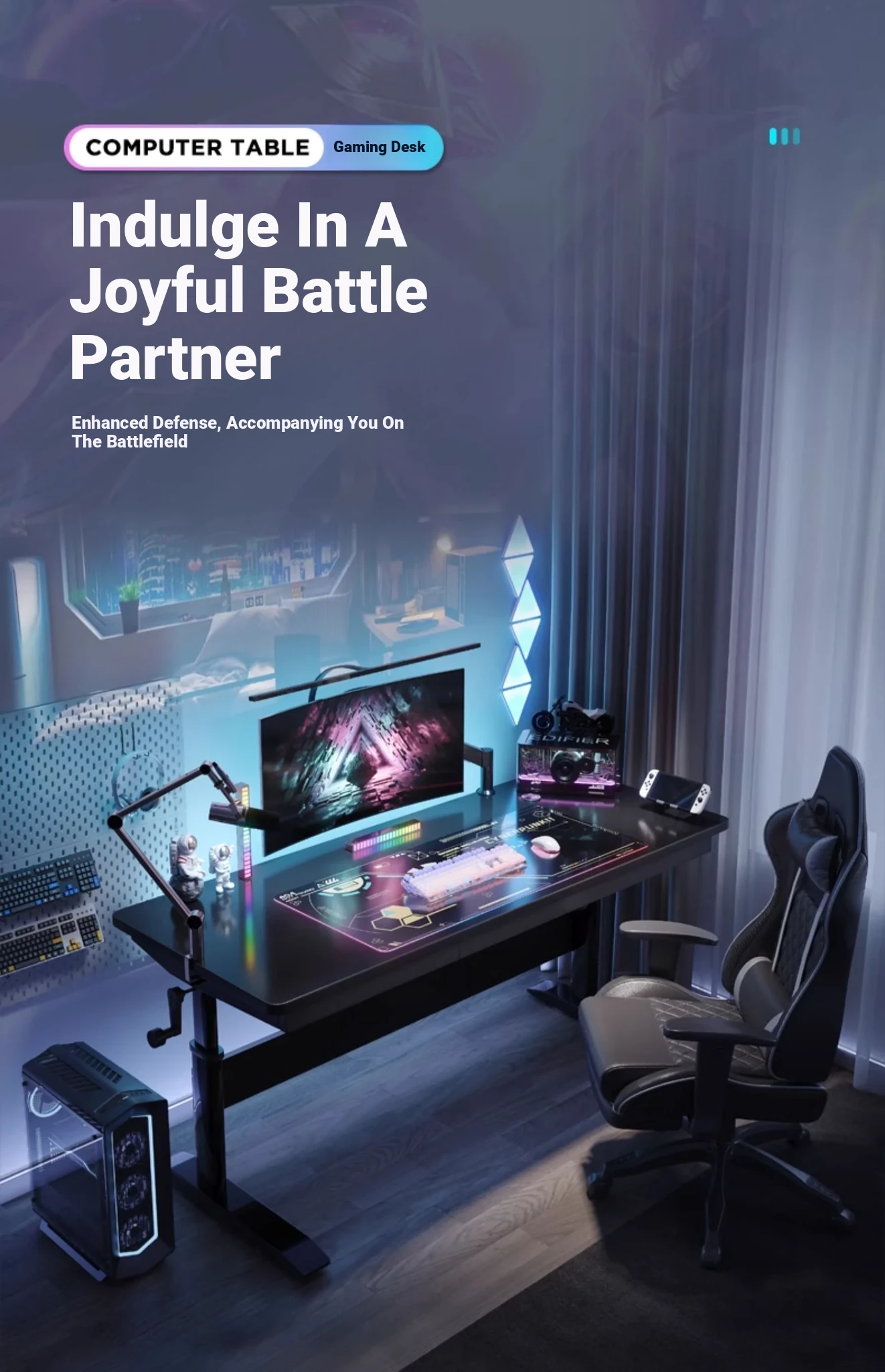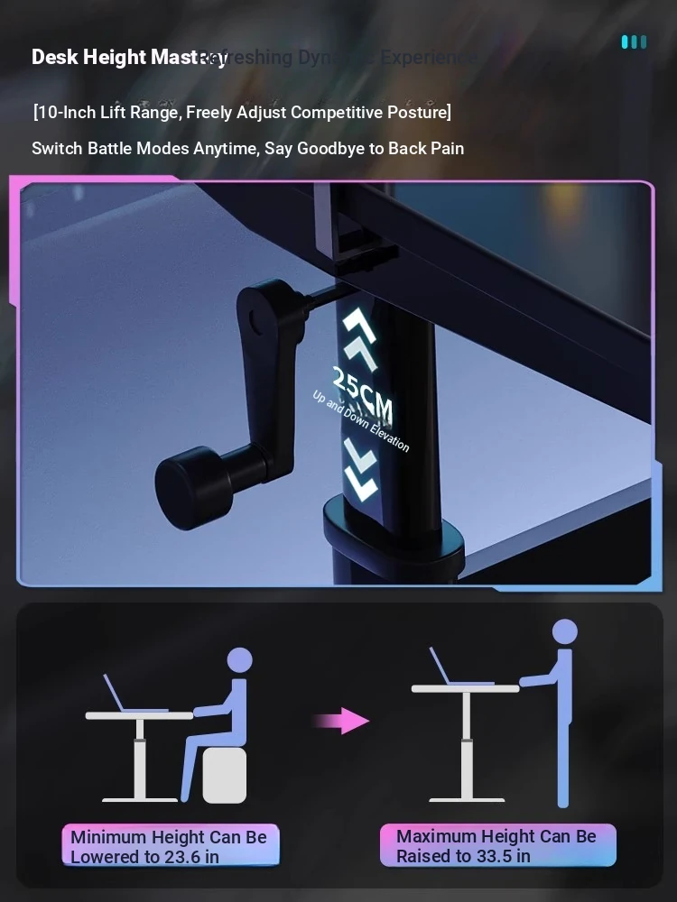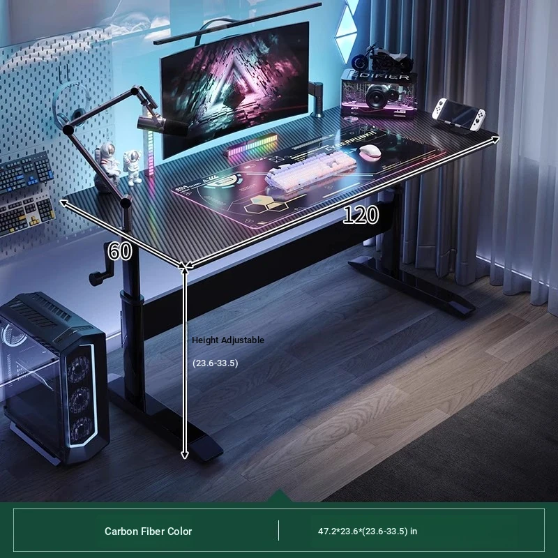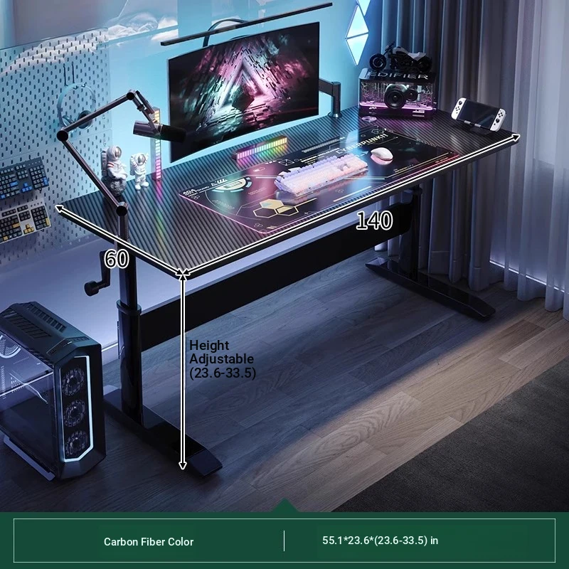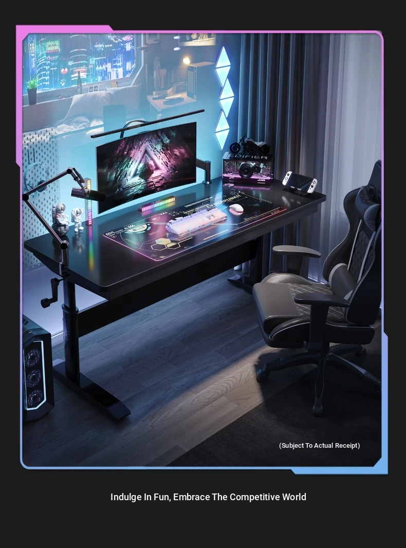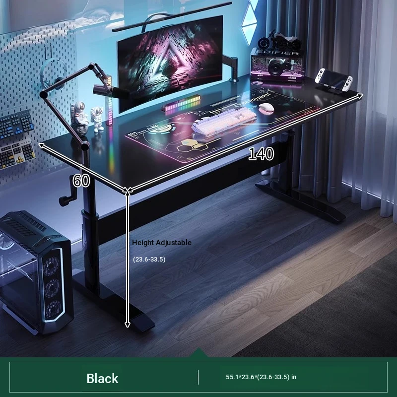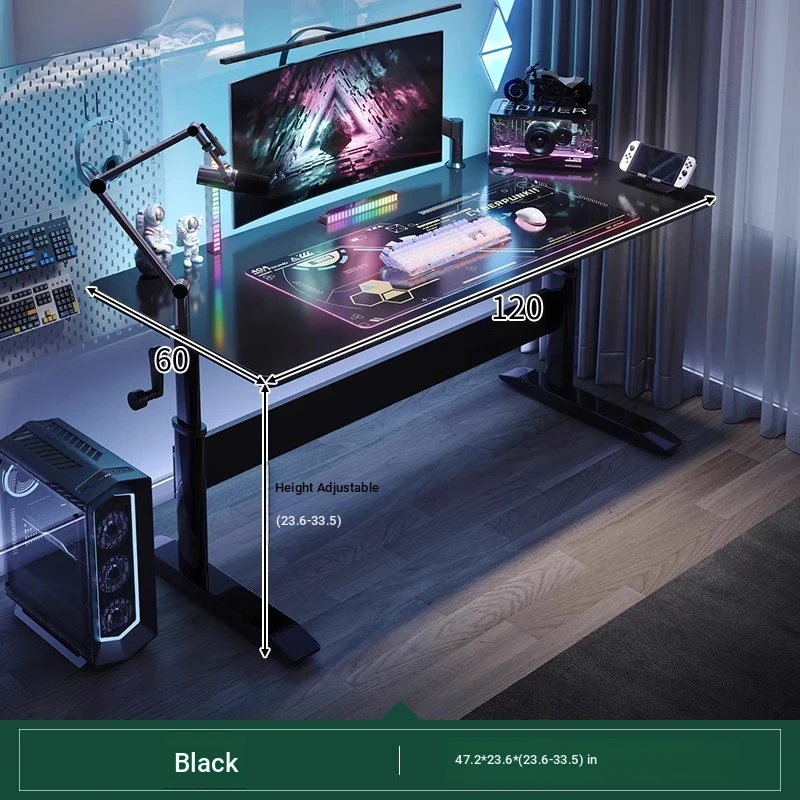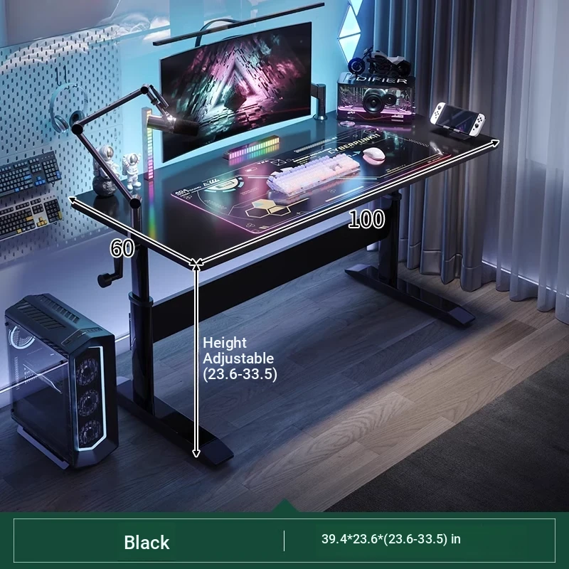 Adjustable Black Gaming Desk - Versatile Computer Table for Streamers, Perfect for Bedroom, Home Office, Study, and Workstation