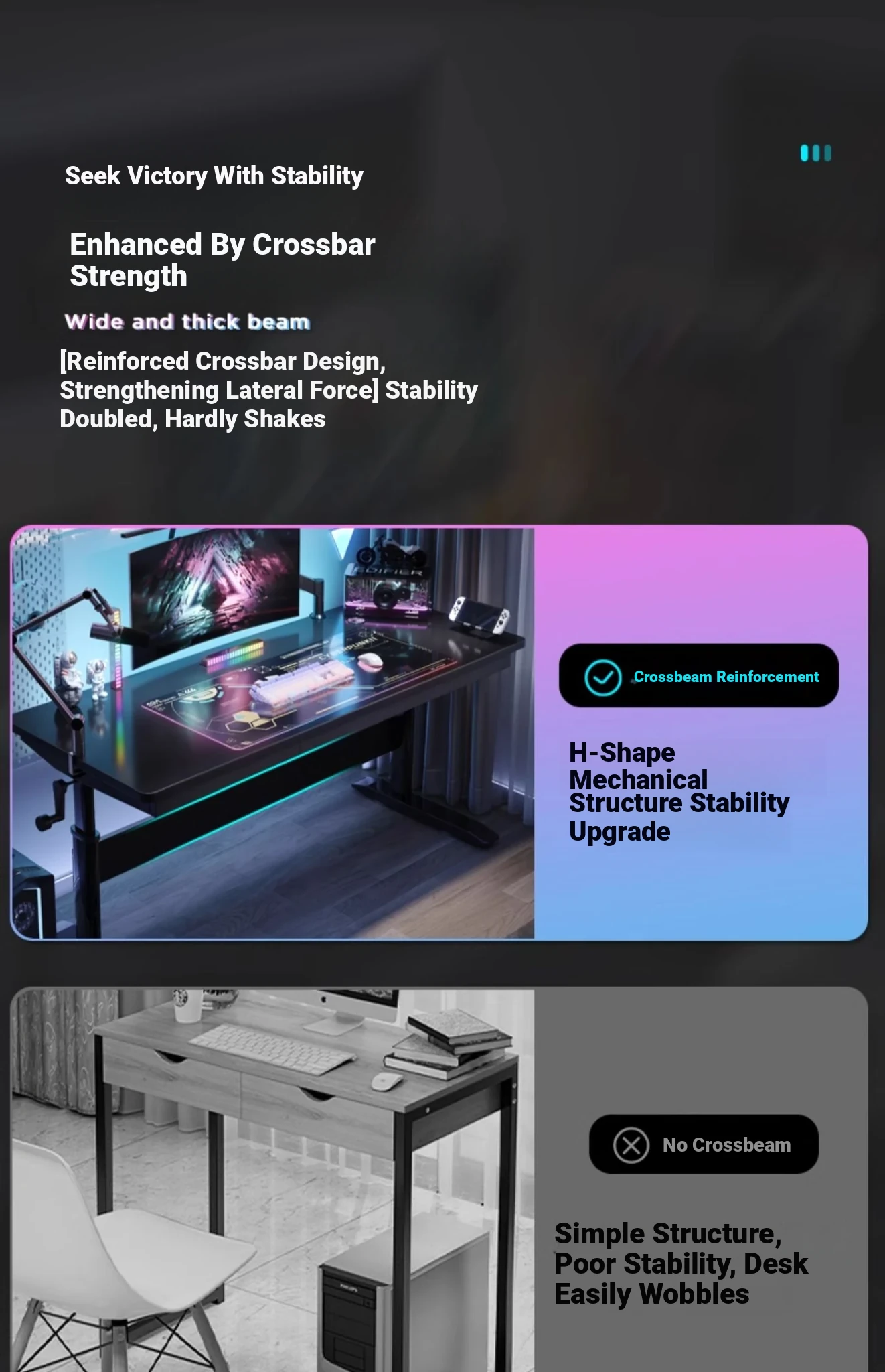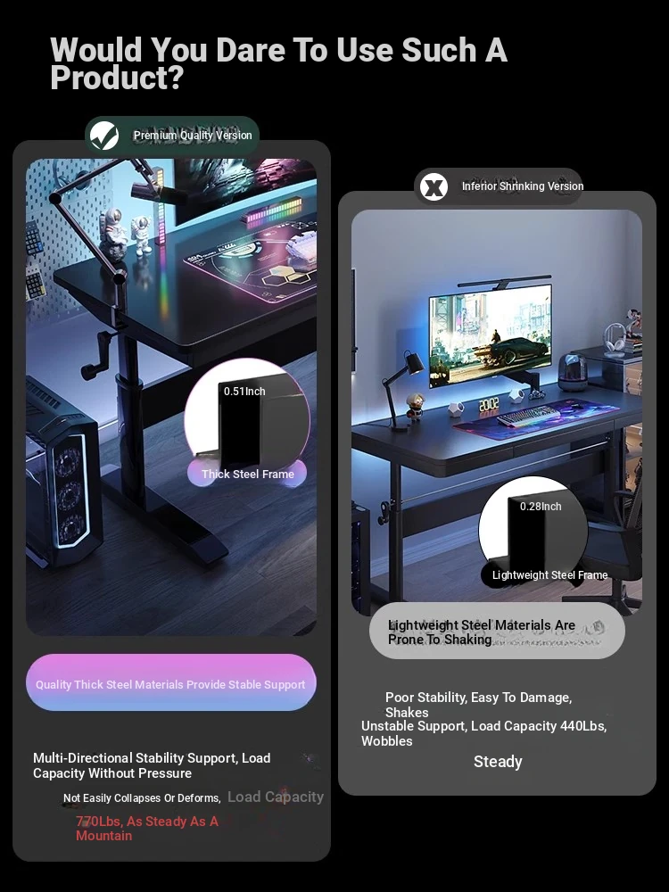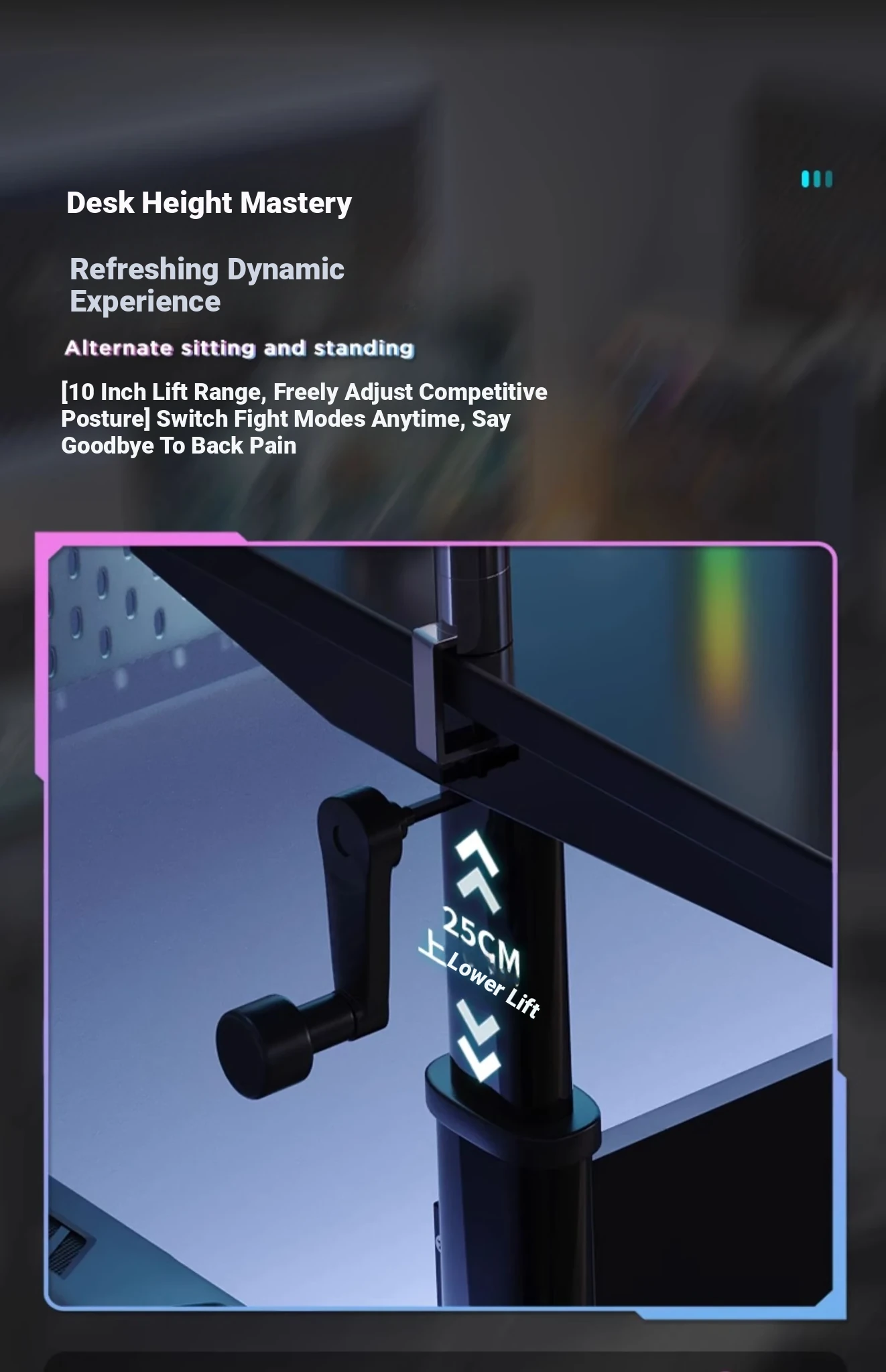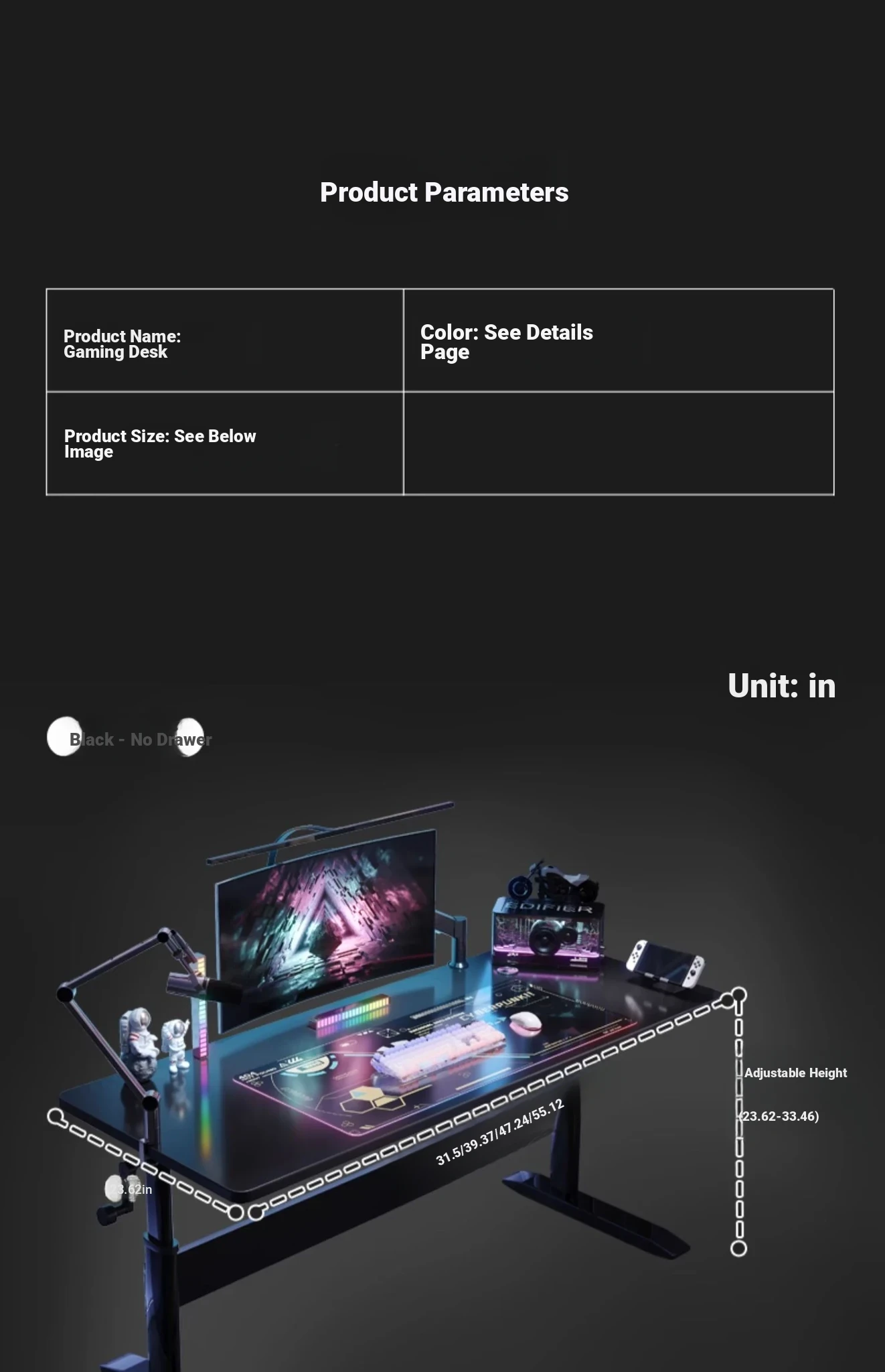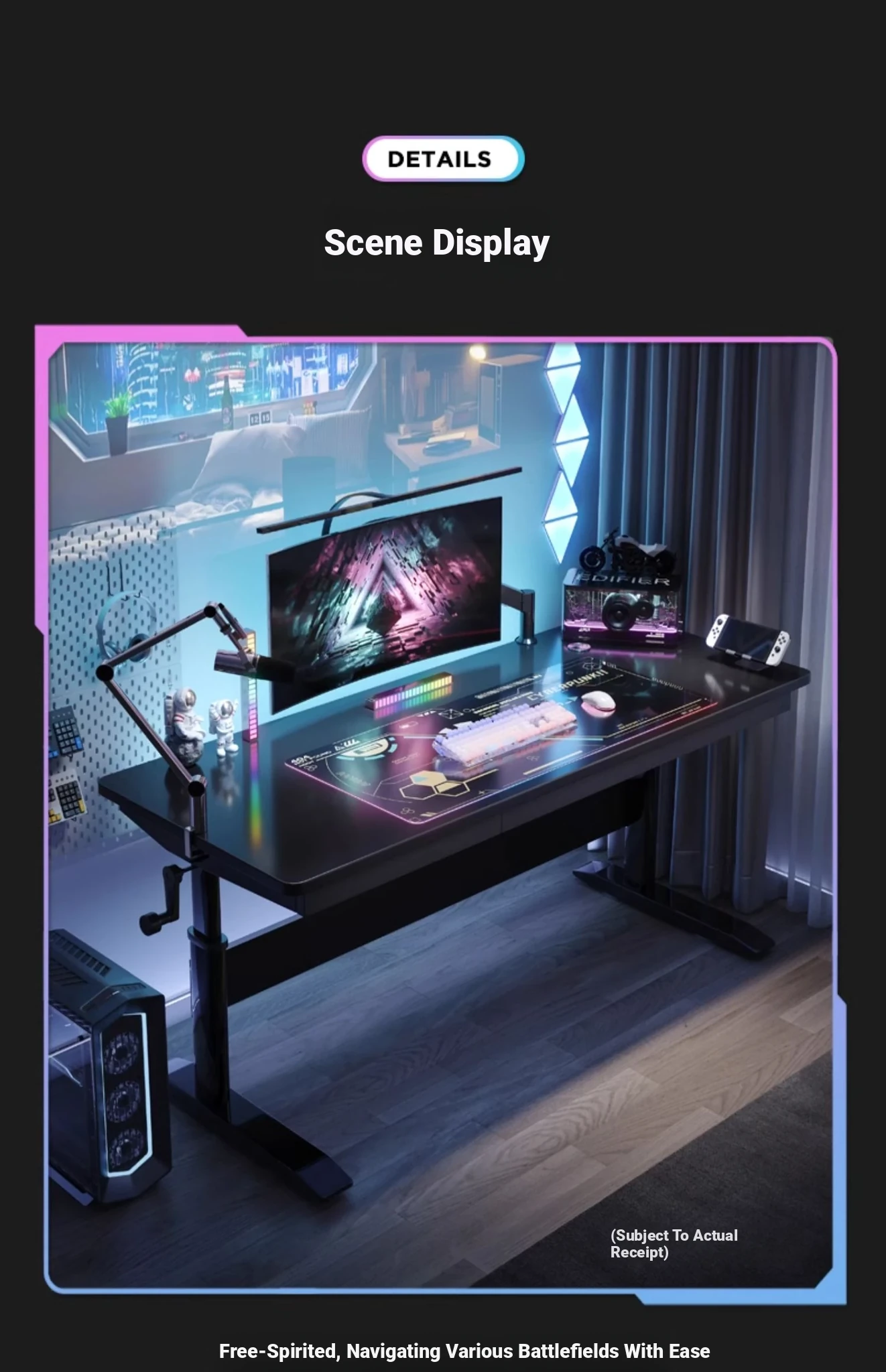 Adjustable Black Gaming Desk - Versatile Computer Table for Streamers, Perfect for Bedroom, Home Office, Study, and Workstation