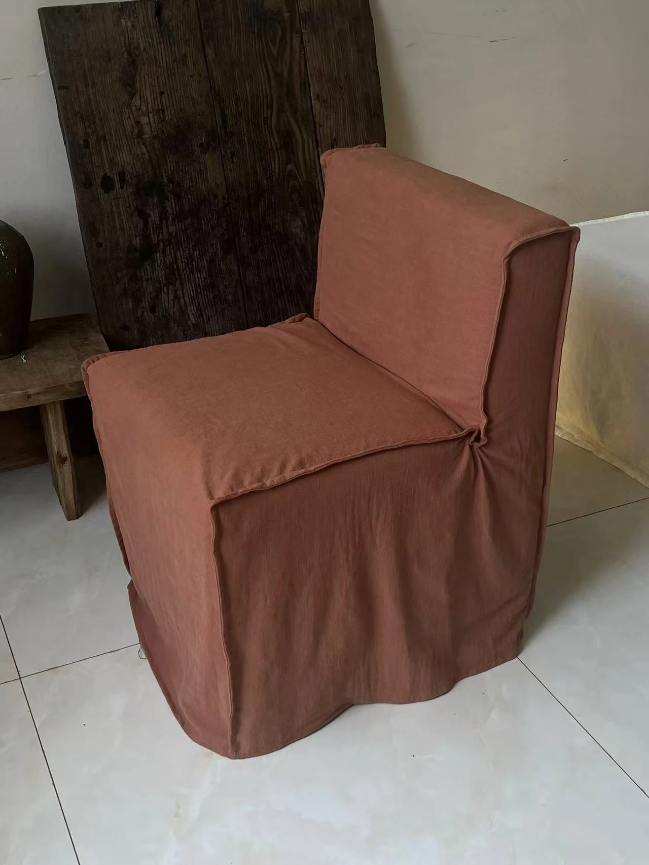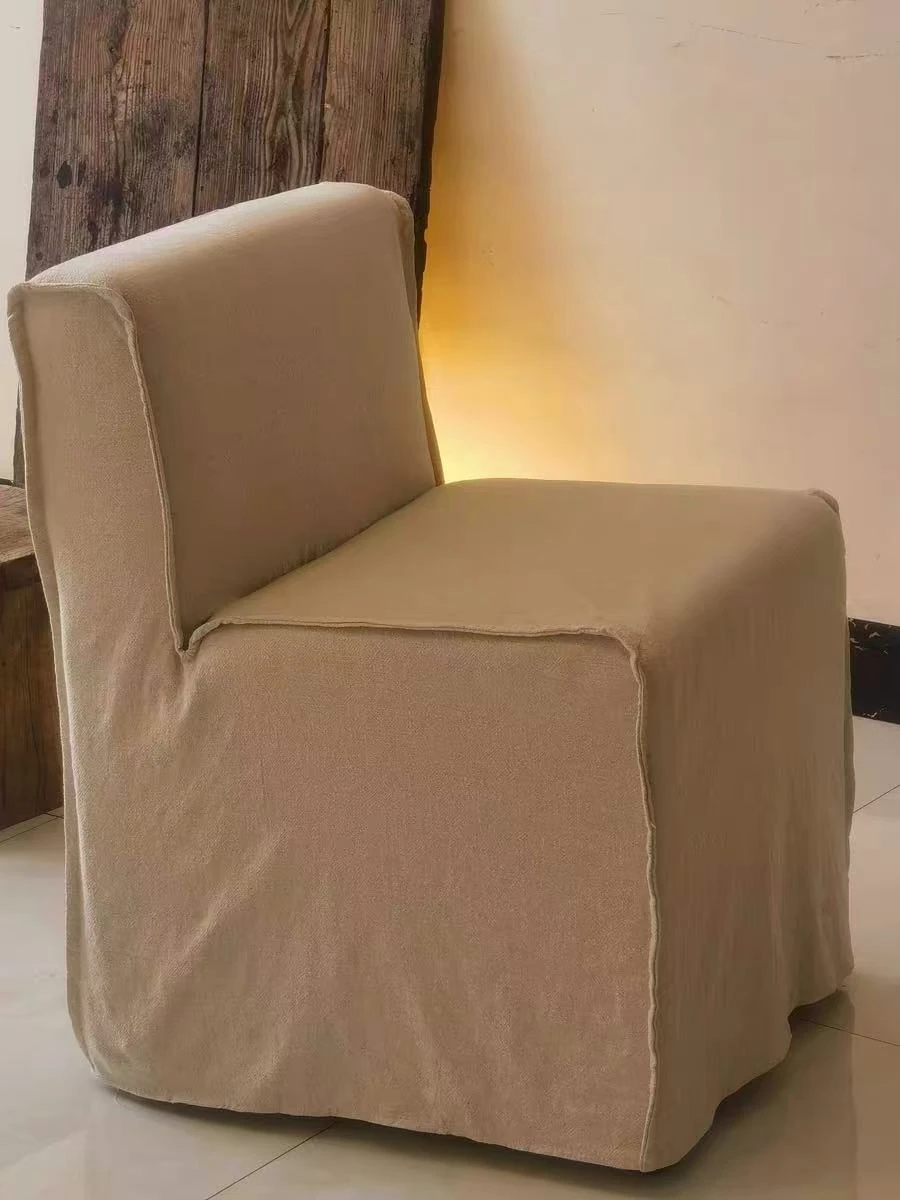Chaji Wind Japanese-Style Single Person Padded Dining Chair – Portable Linen Upholstered Soft Sofa for Hotels, Tea Rooms, and Coffee Shops