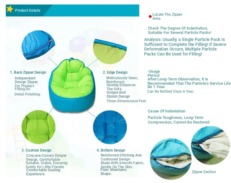 Children's Bean Bag Chair Filled with EPS Foam Particles - Cozy and Comfortable Lazy Sofa for Kids, Perfect for Playrooms and Relaxation!