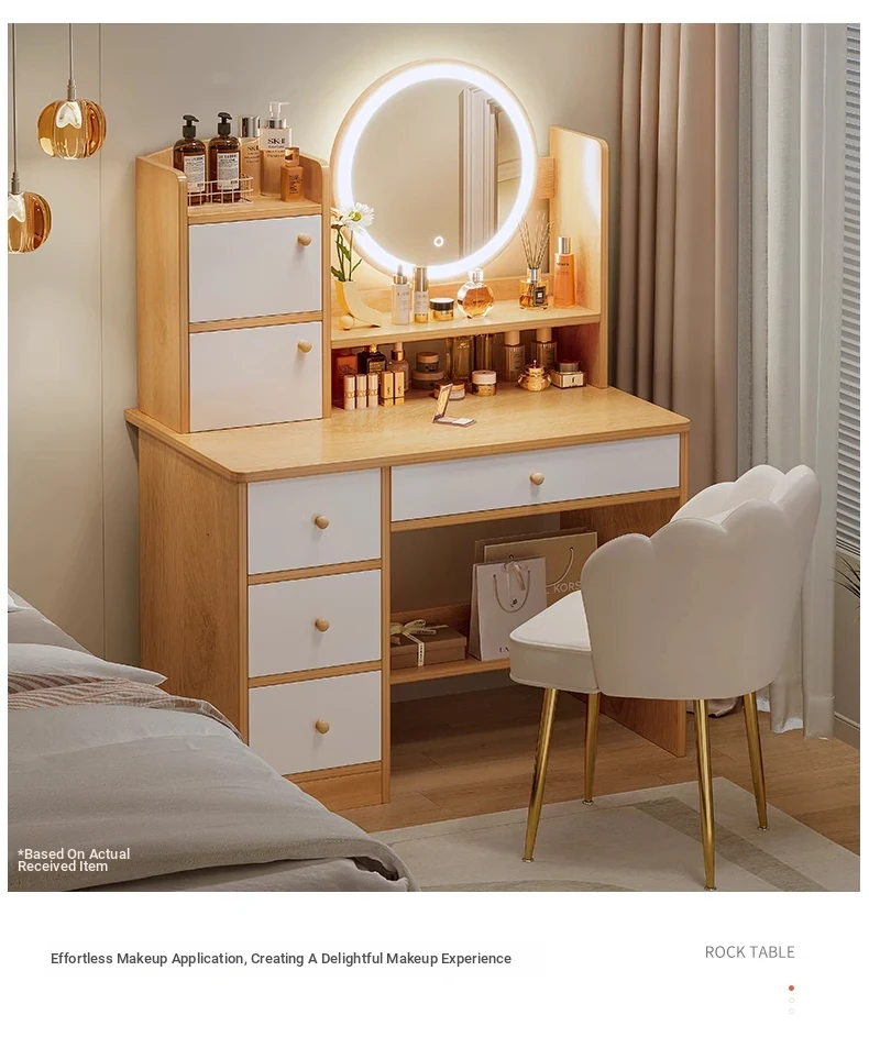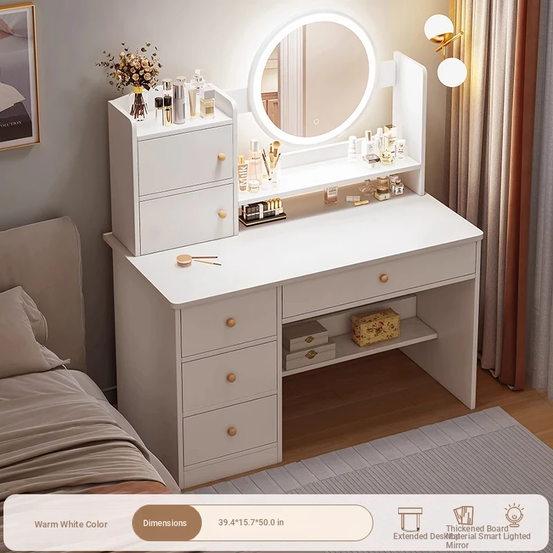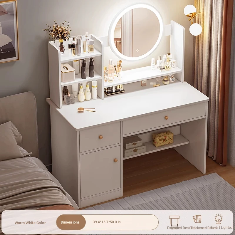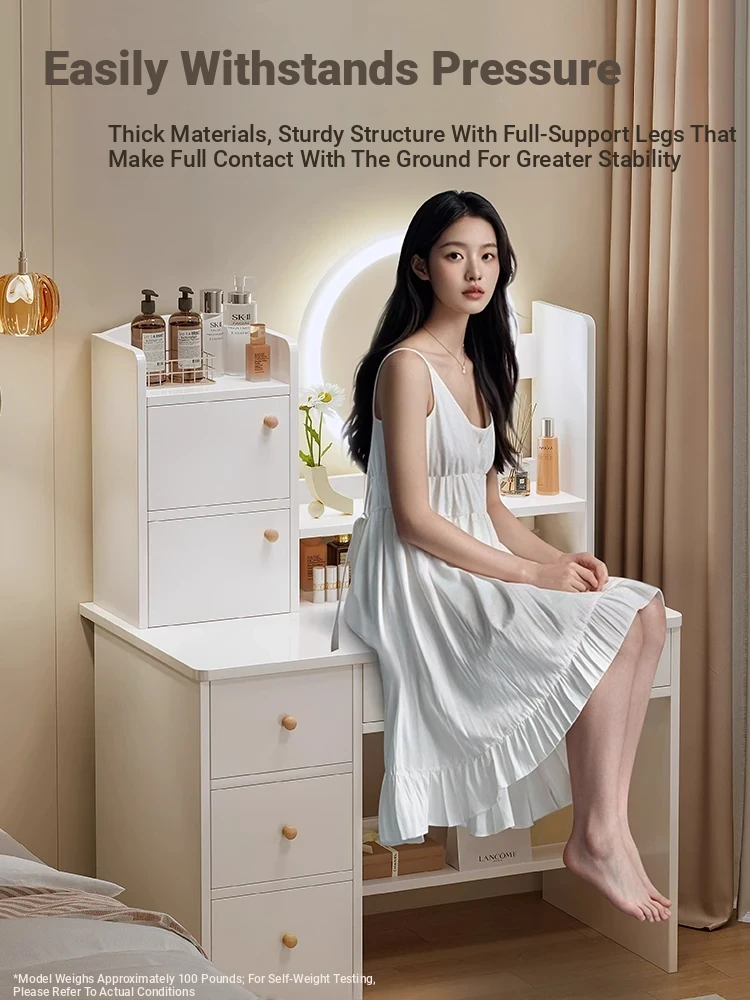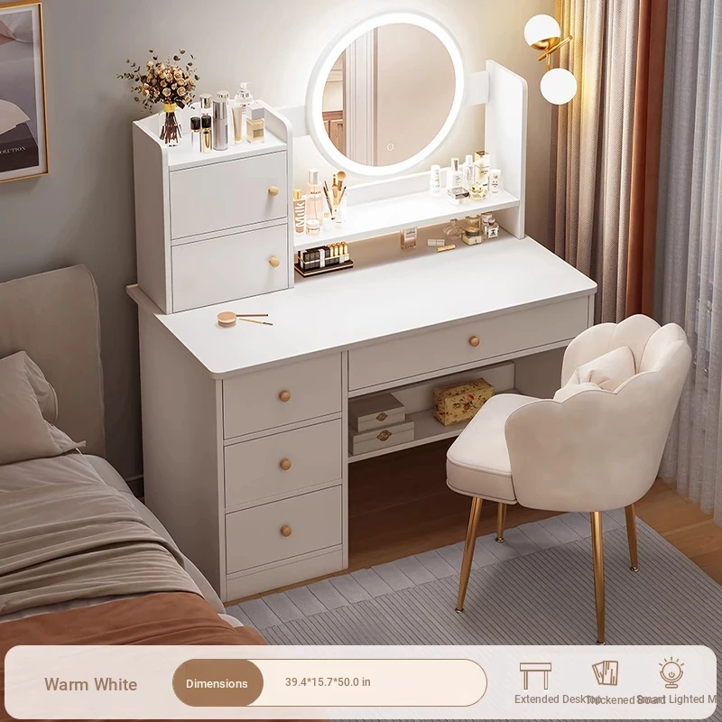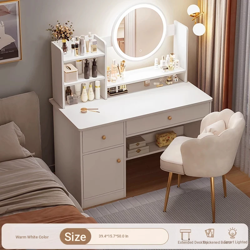 Thickened Plate ⭐ Led Light-Up Vanity Table with Four Drawers, Two Cabinets + Fairy Chair, 31.50in, Warm White