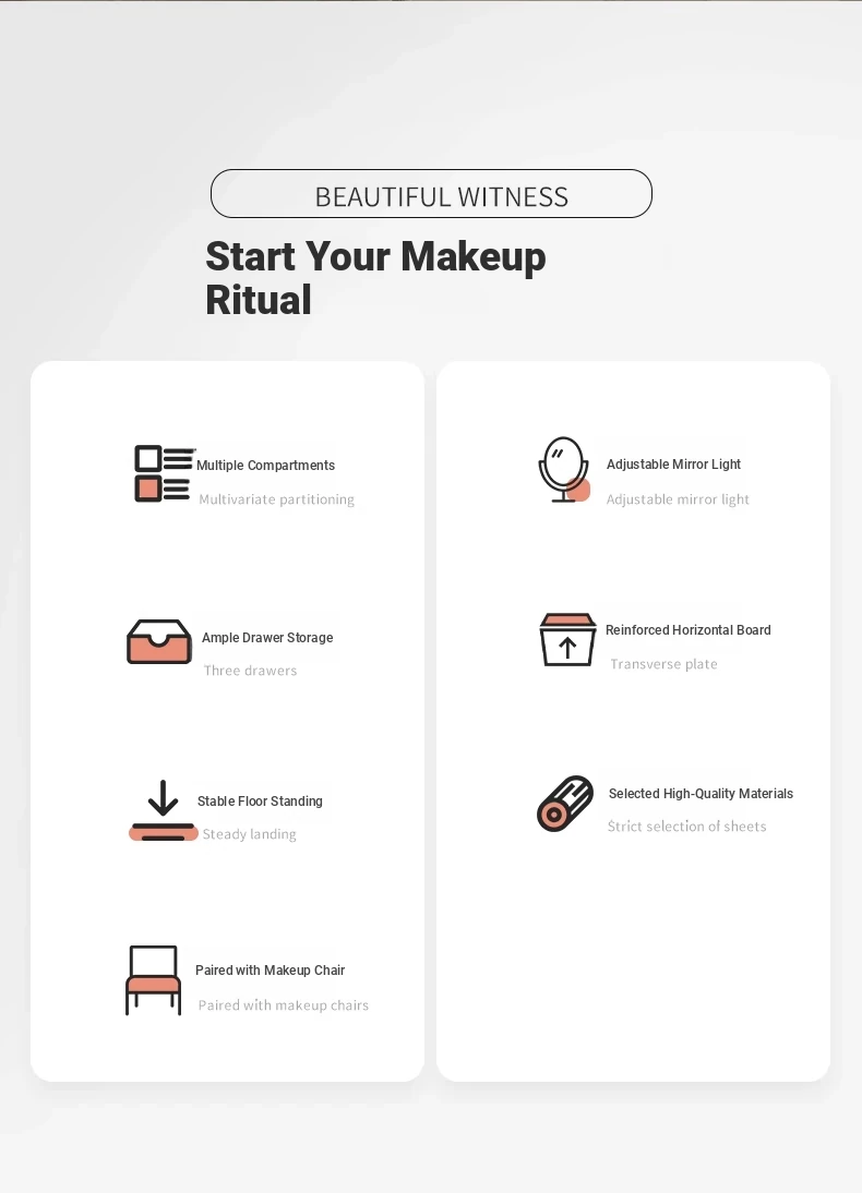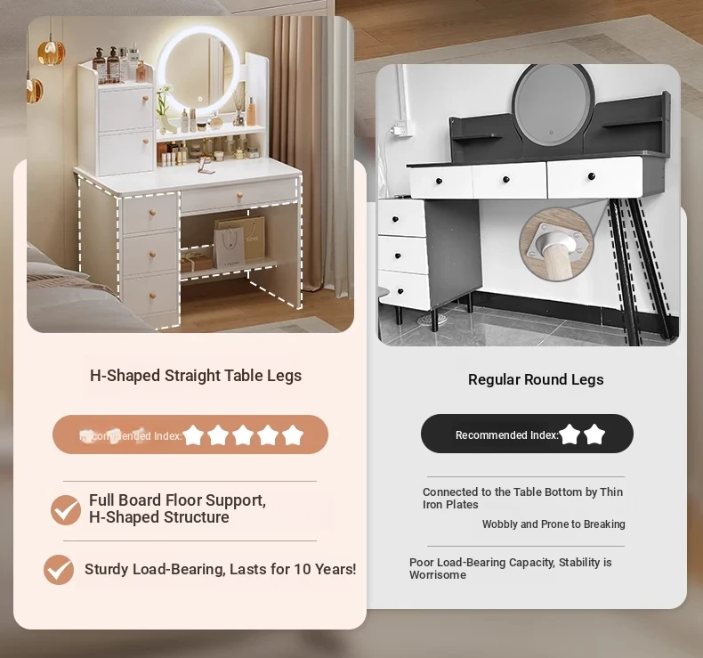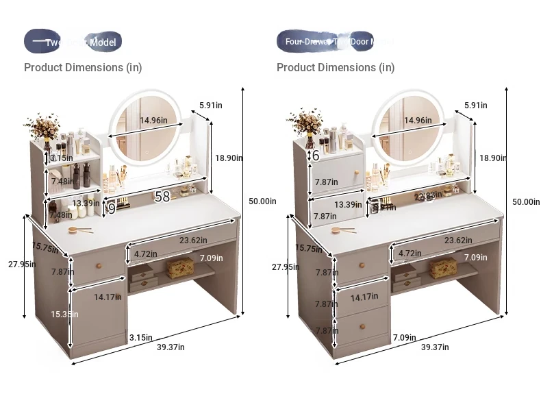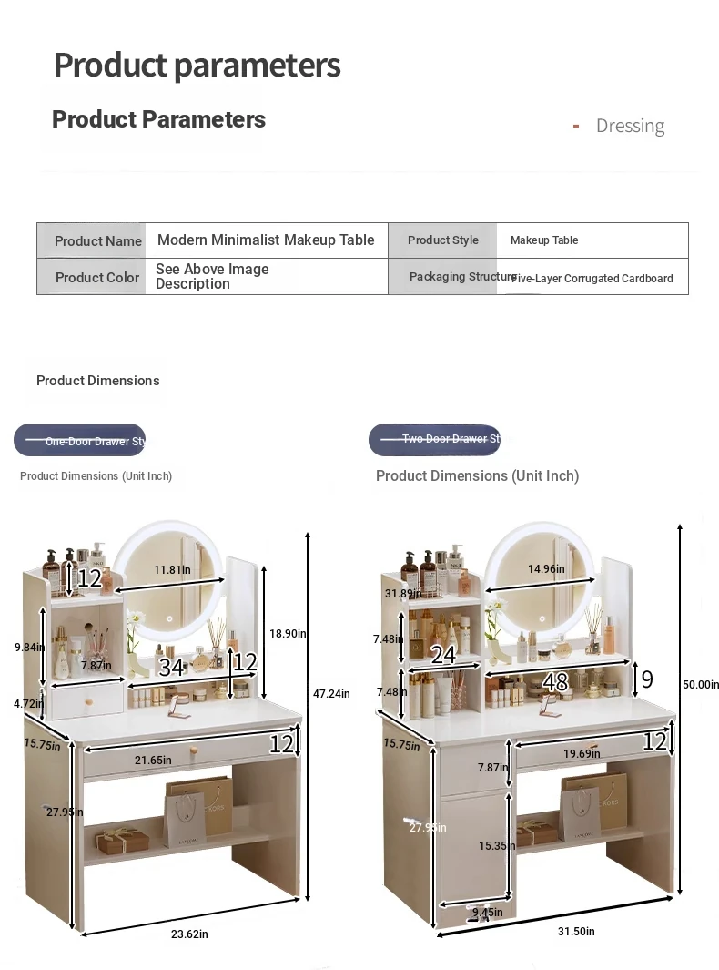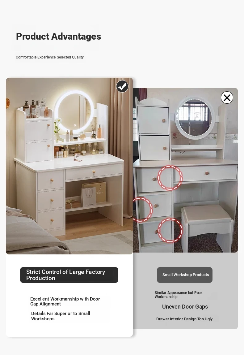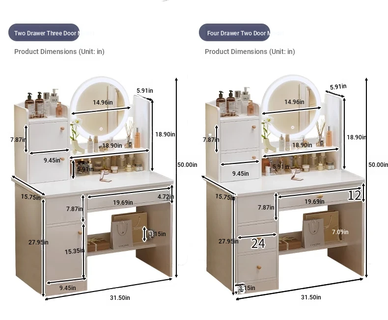 Upgrade European Style⭐Led Light [Molded Four Draws + Square Stool] 31.50in