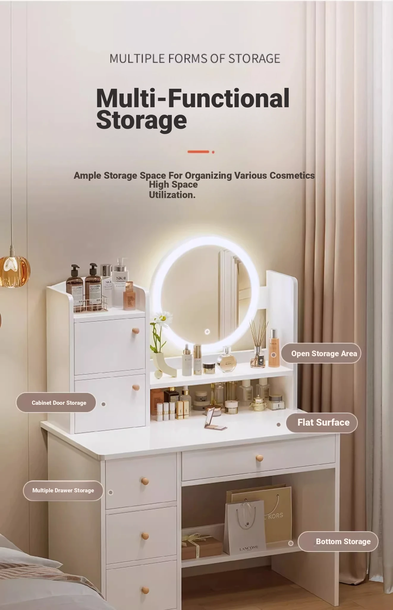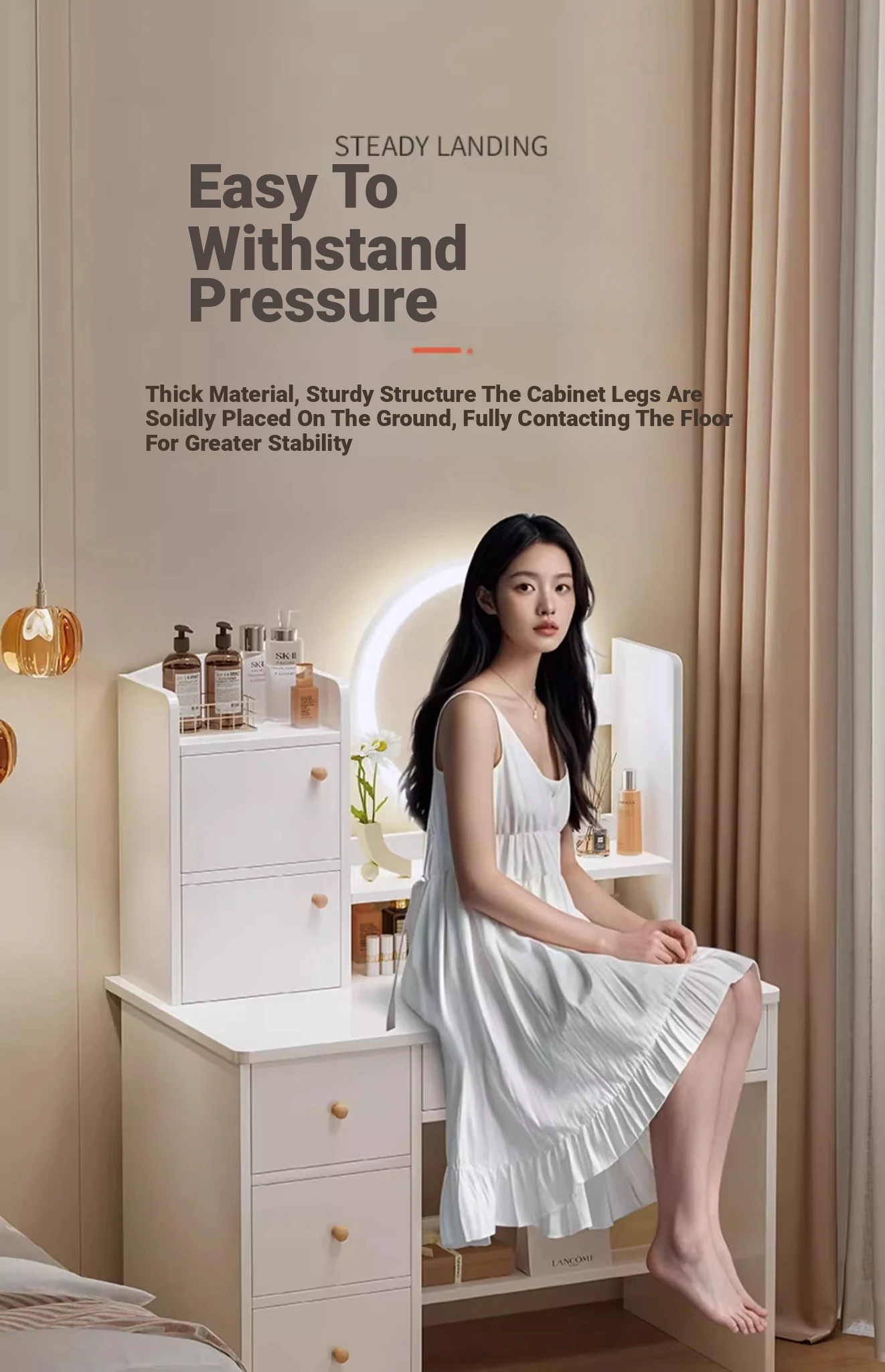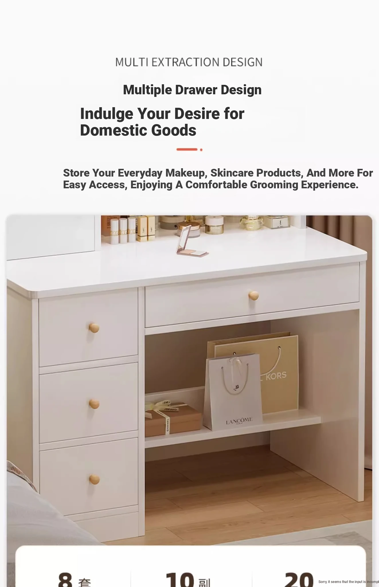 Upgrade European Style⭐Led Light [Molded Four Draws + Square Stool] 31.50in
