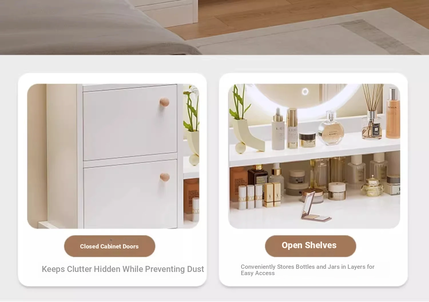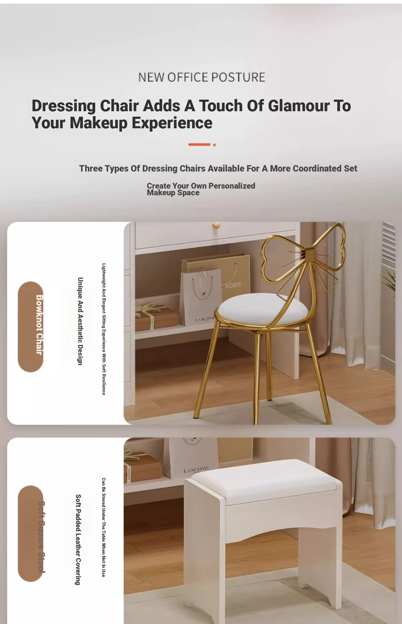 Upgraded Extended Length⭐Led Light [Two Cabinets, One Drawer + Petal Chair] 39.37in Warm White