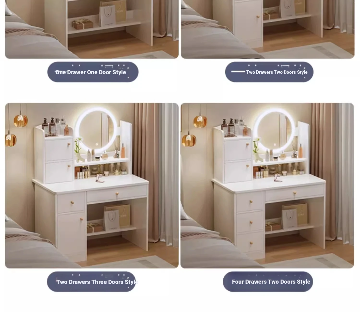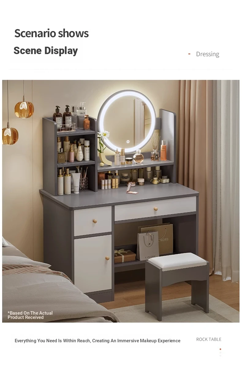 Hot Selling Model ⭐ Led Light [Four Drawers, Two Cabinets + Petal Chair] 31.50in, Misty Gray