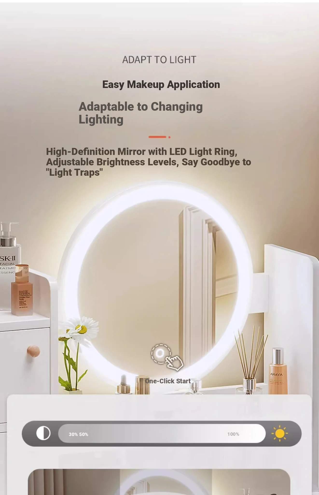 Thickened Plate ⭐ Led Light-Up Vanity Table with Four Drawers (Molded Design) + Petal Chair, 31.50in, Warm White