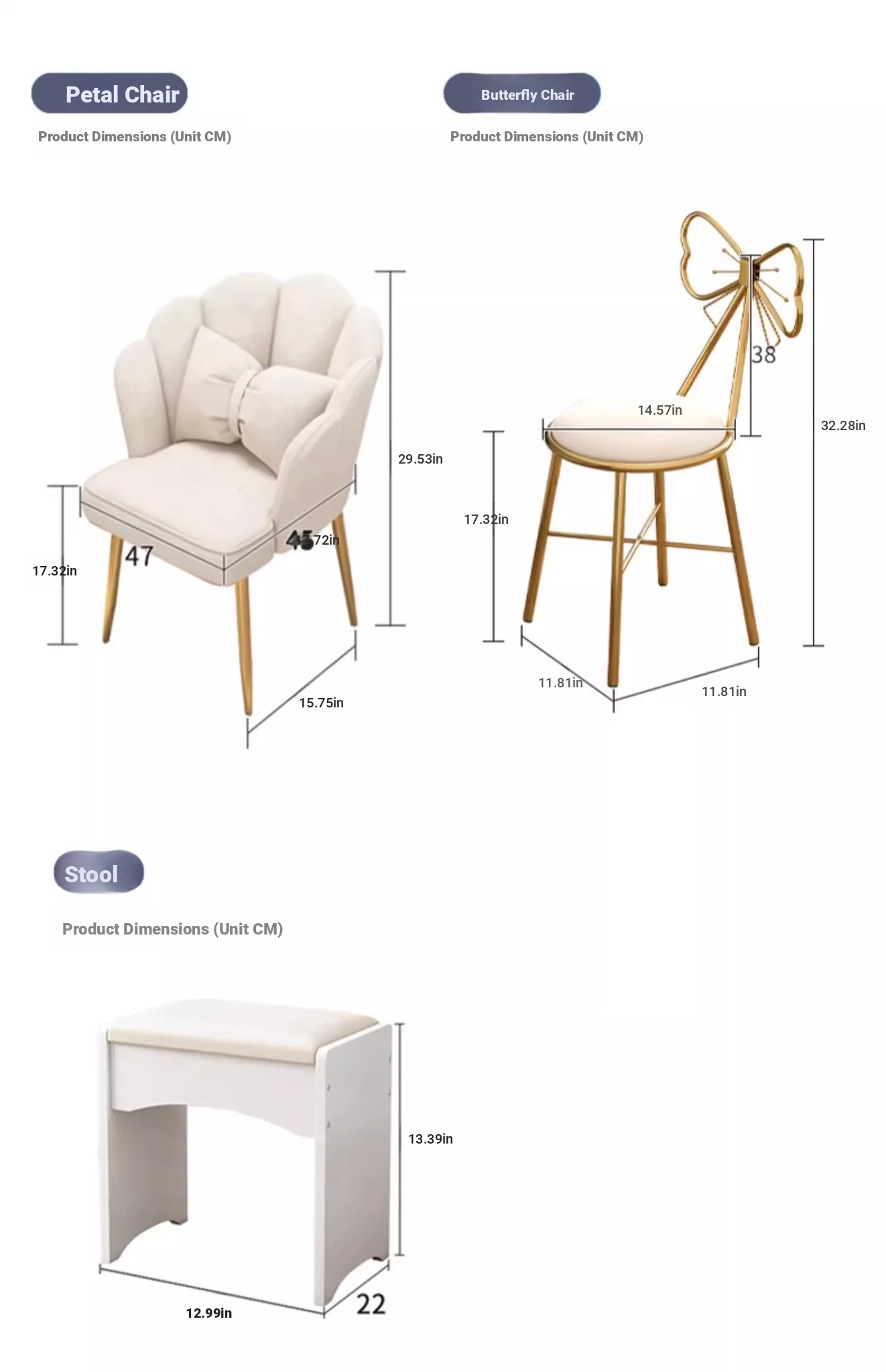 Upgrade European Style⭐Led Light [Molded Four-Pull + Petal Chair] 31.50in
