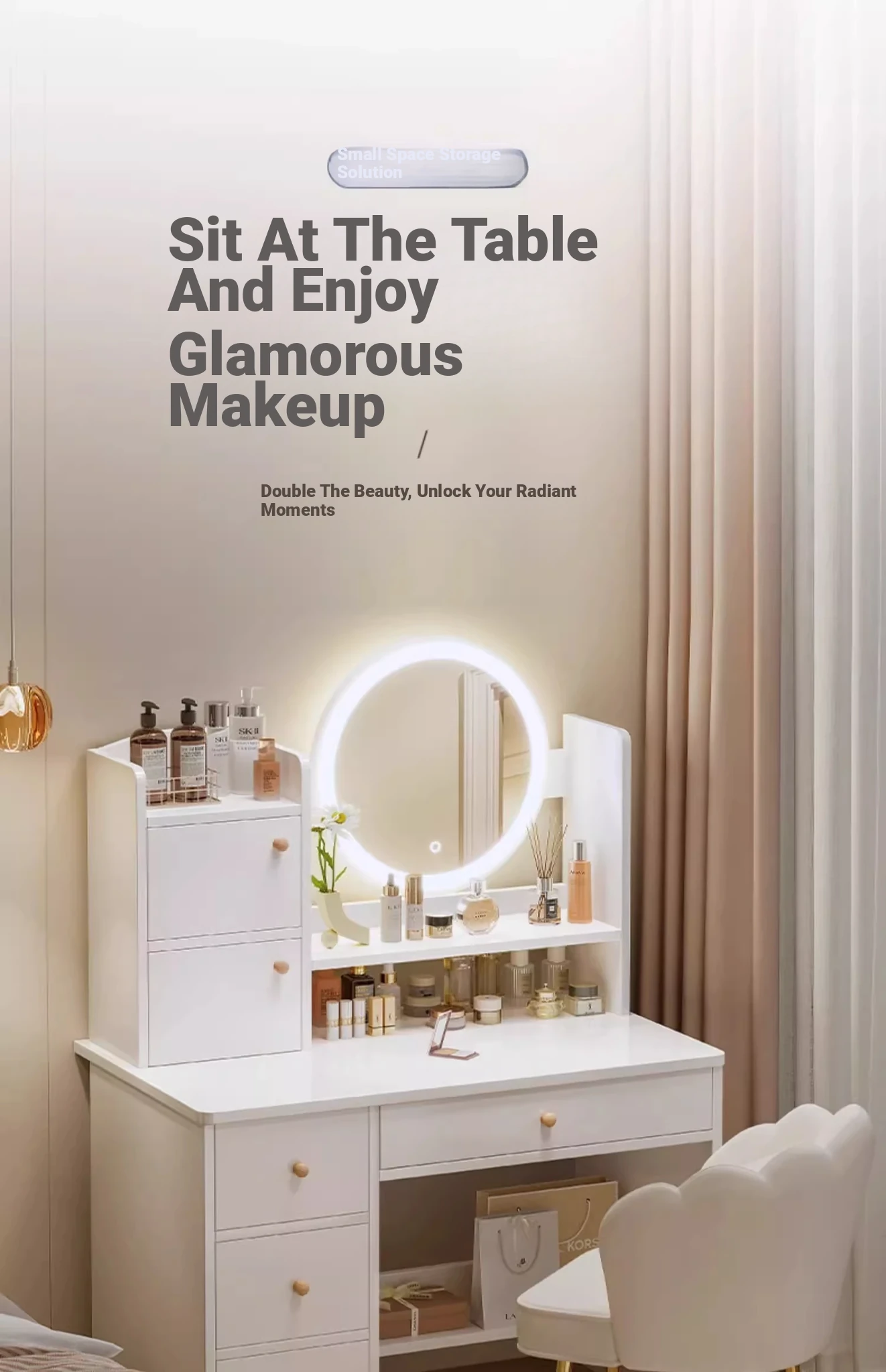Compact Mini Dressing Table - Modern and Stylish Makeup Vanity for Small Spaces, Perfect for Bedrooms. Ideal for New Apartments, Chic Design with Ample Storage.