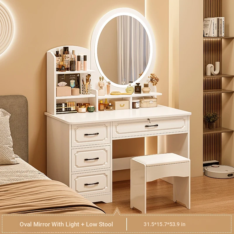 Round Mirror Model [One Drawer, One Cabinet + Stool] 23.62in Warm White