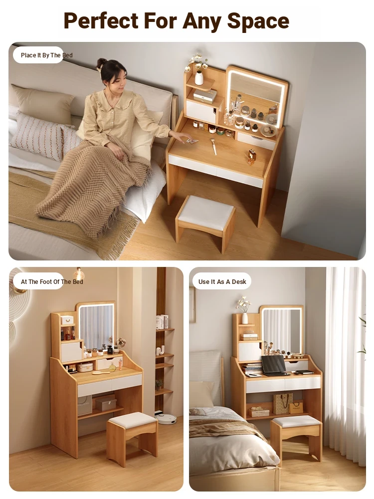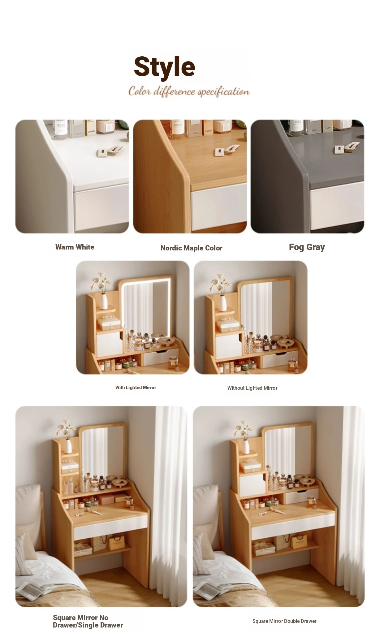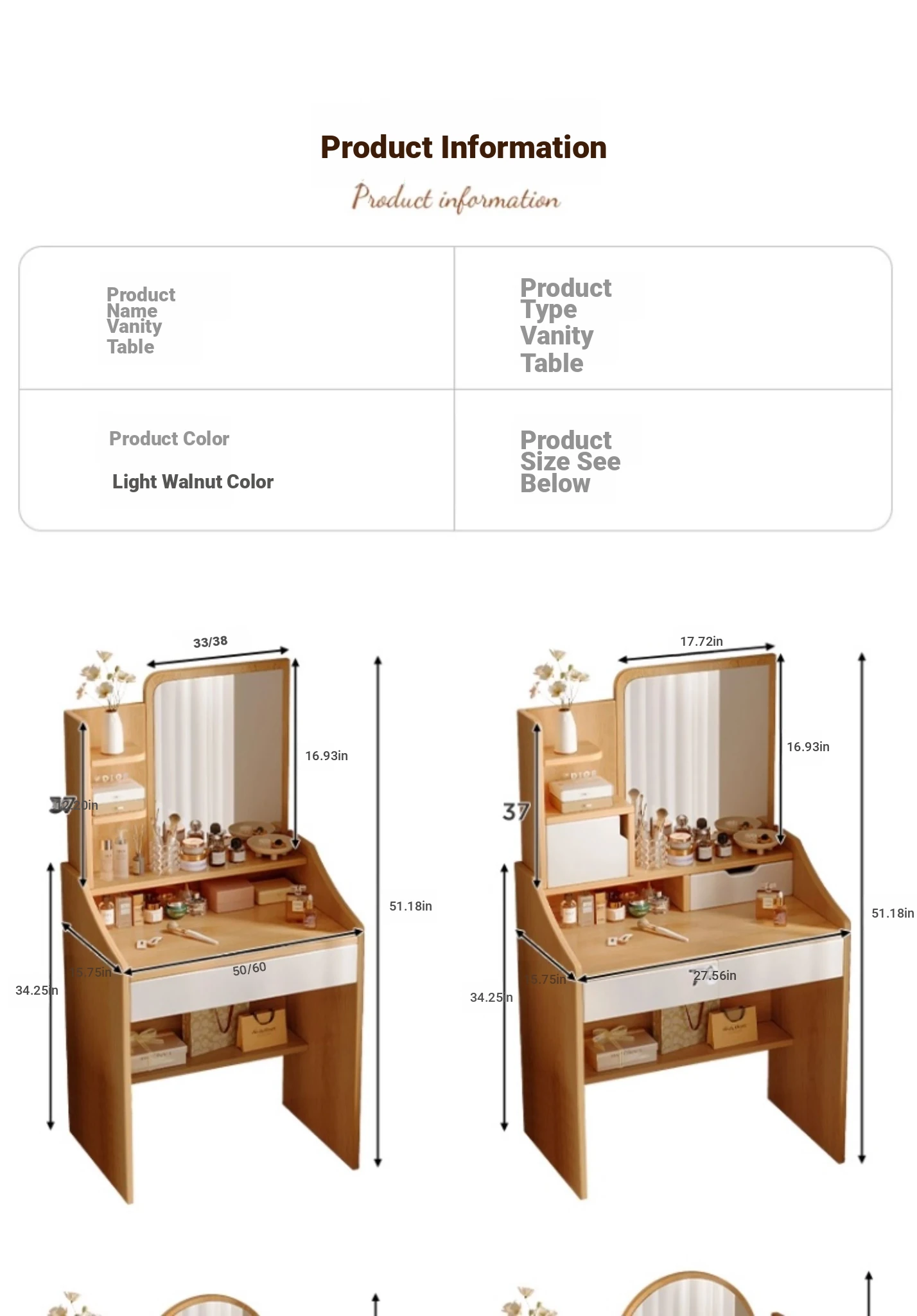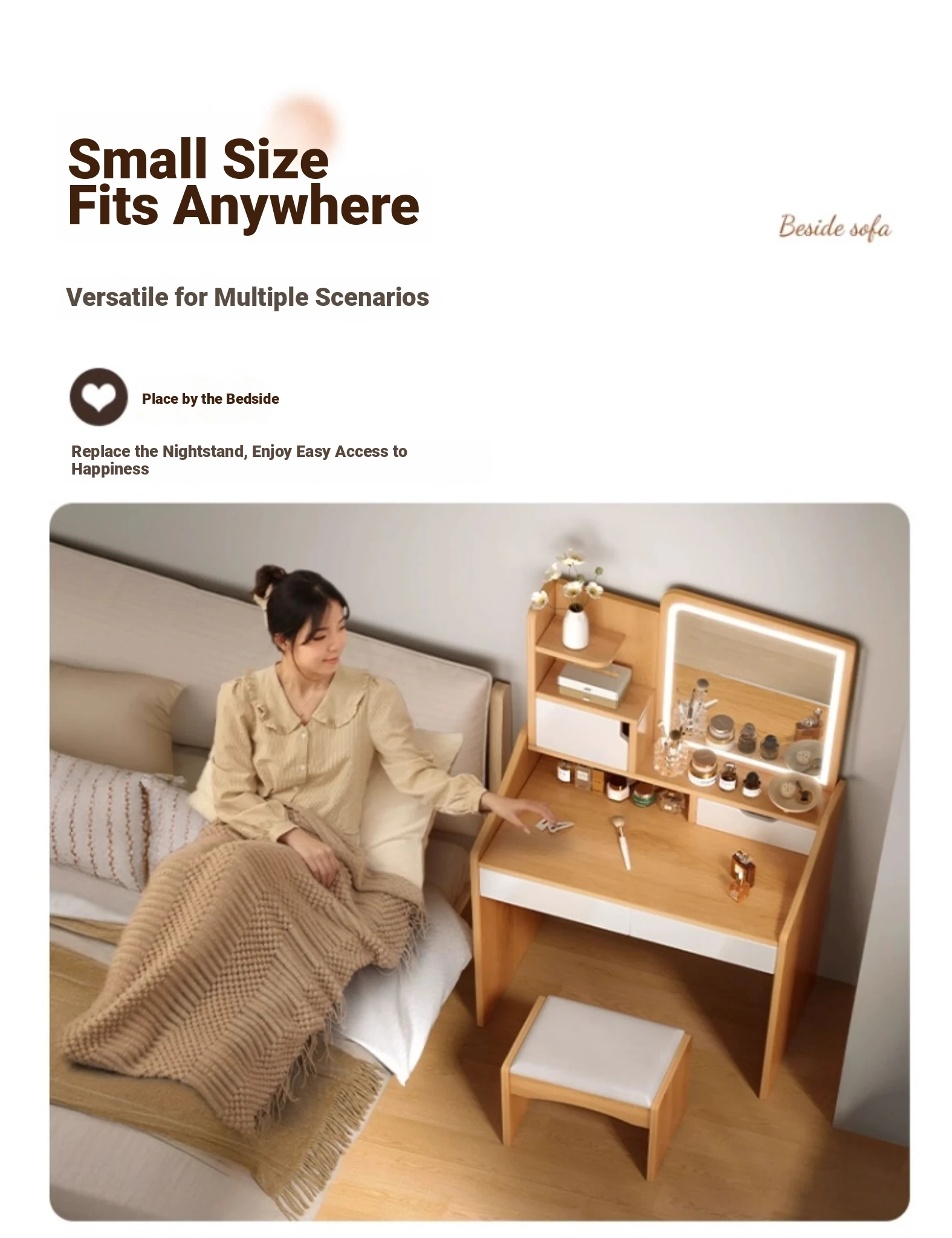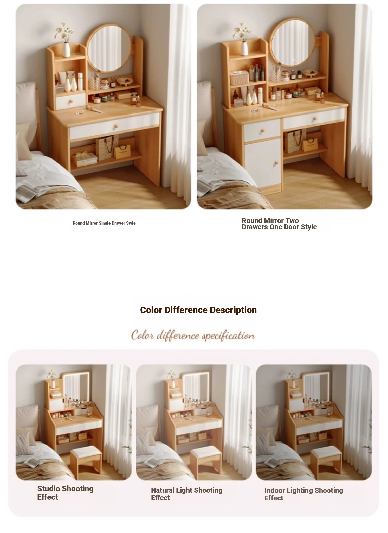 Round Mirror Model [One Drawer, One Cabinet + Stool] 23.62in Nordic Maple Color