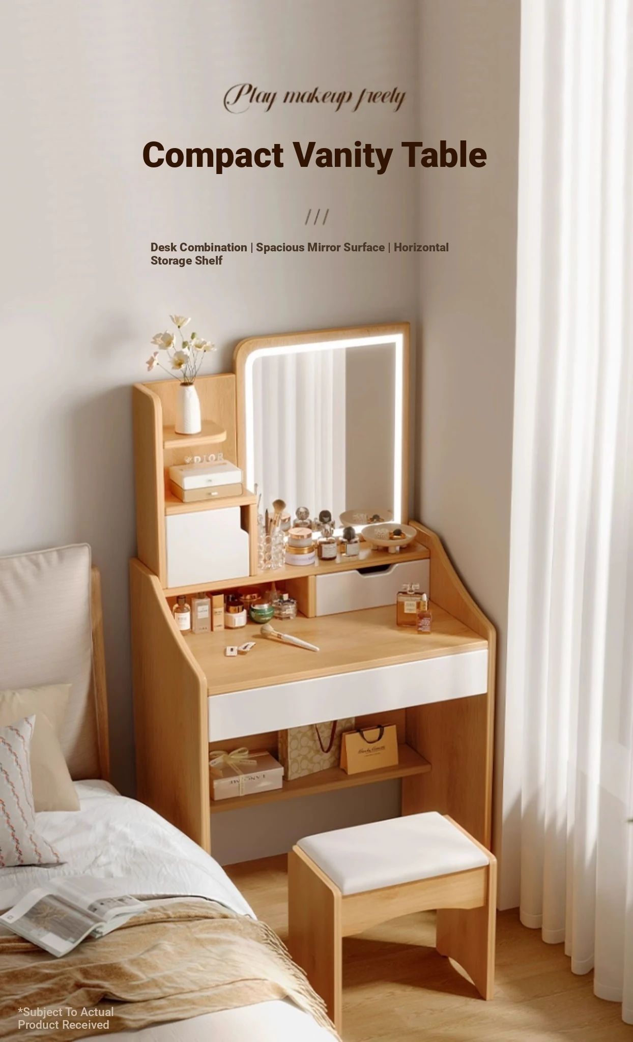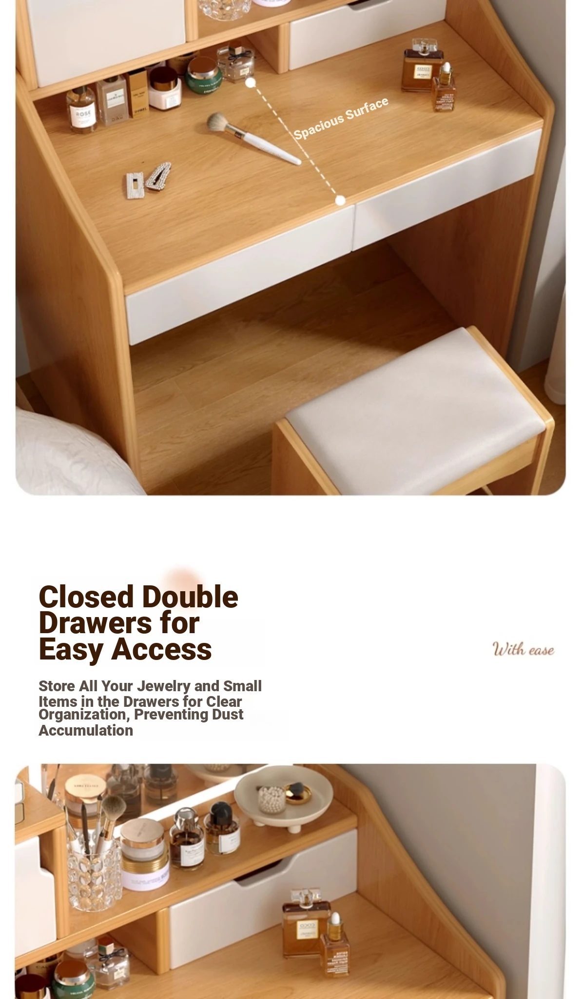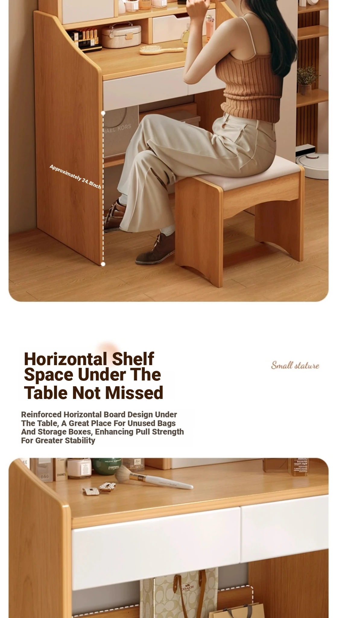 【Minimalist No-Drawer Design + Stool】50Cm Nordic Maple Finish