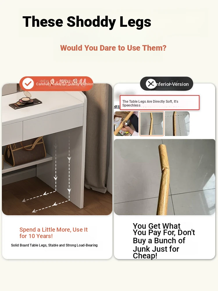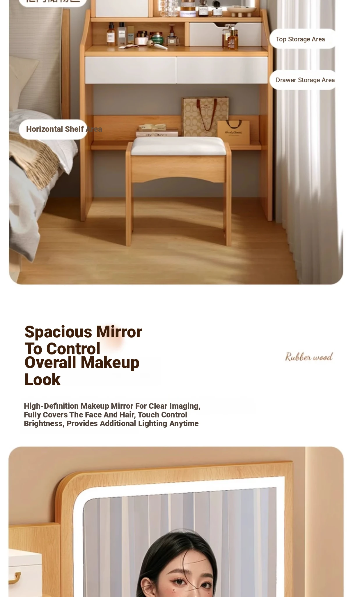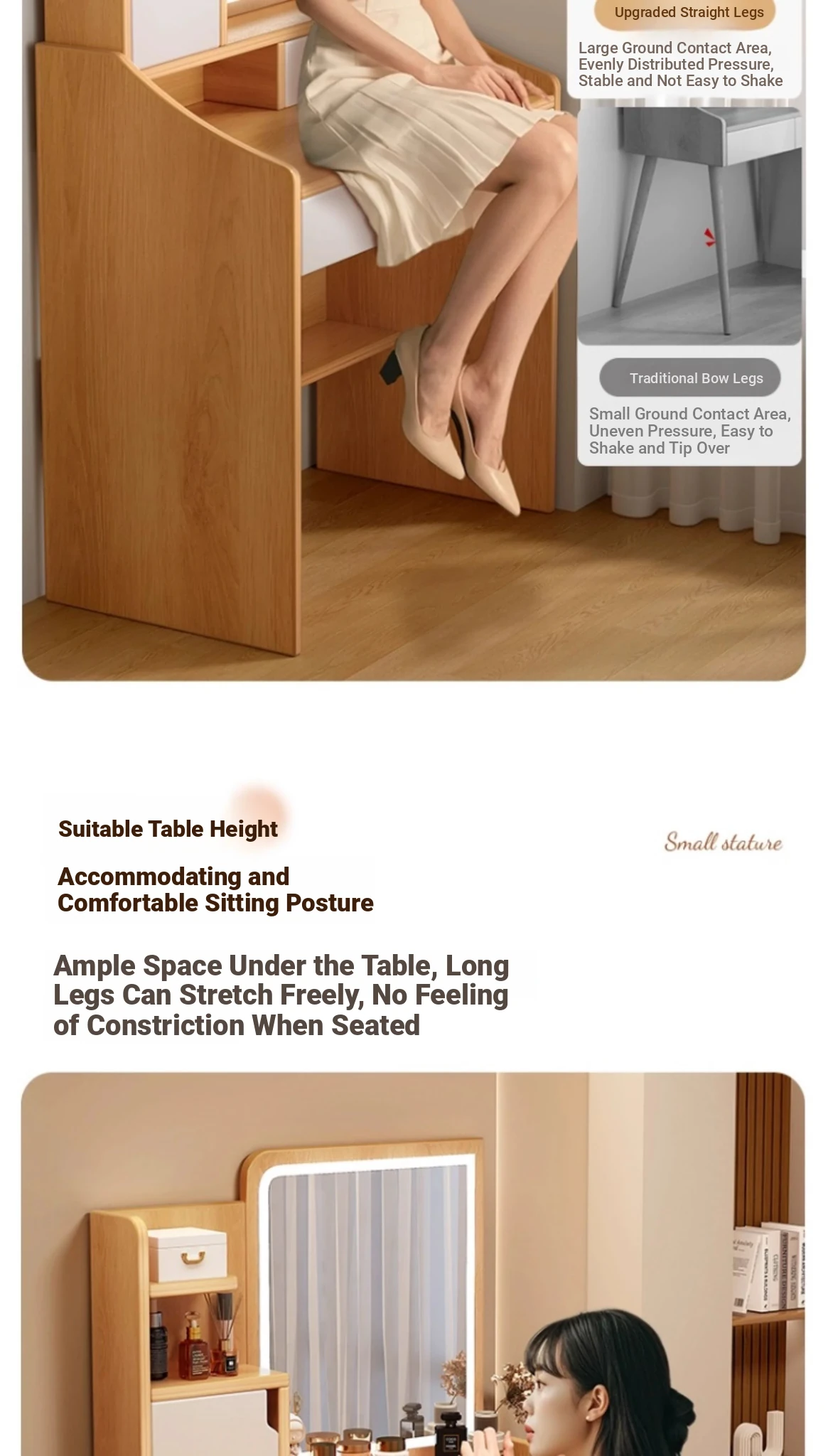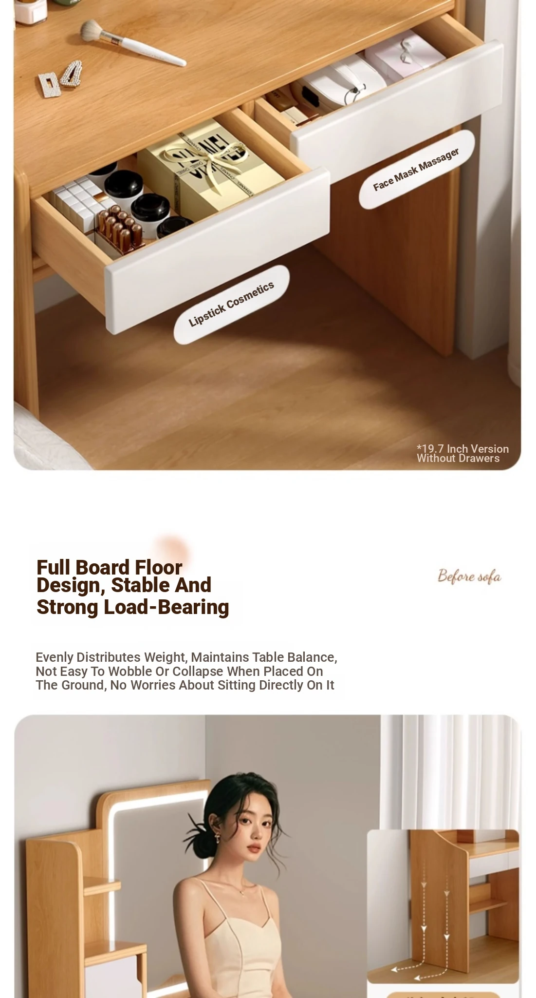 【Minimalist No-Drawer Design + Stool】50Cm Nordic Maple Finish