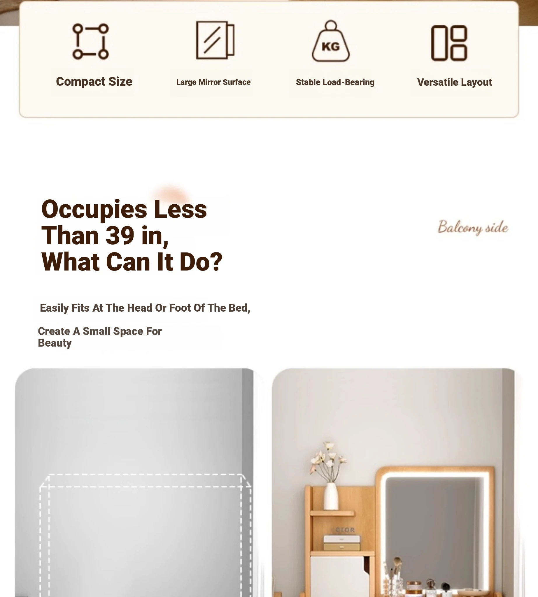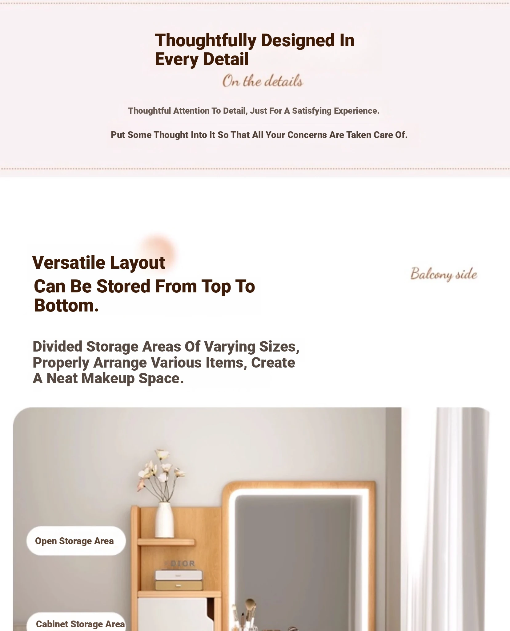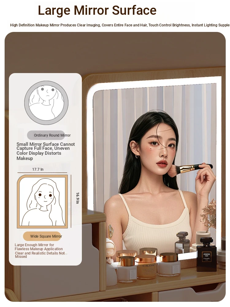 [Led Light Mirror + Round Mirror + Stool] 31.50in