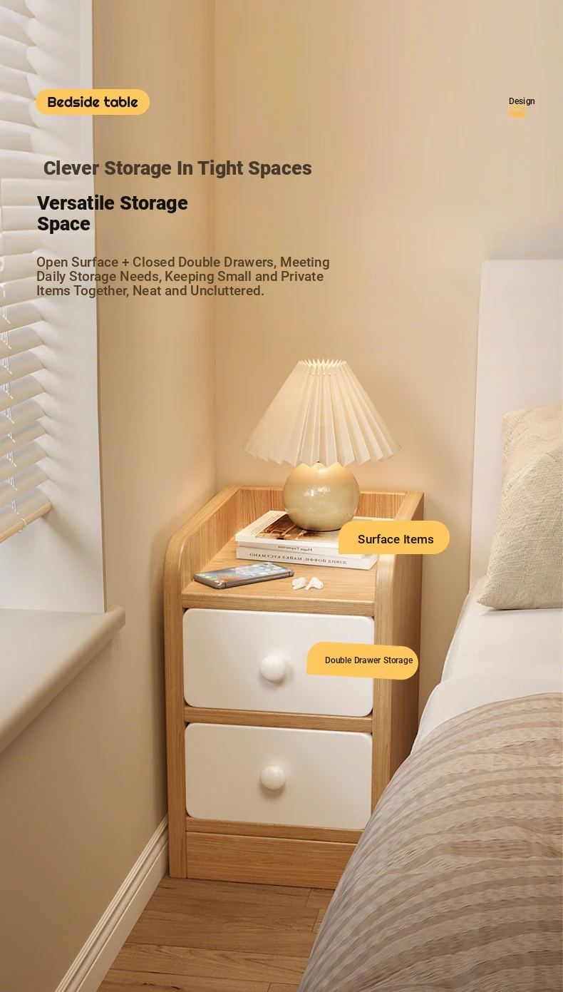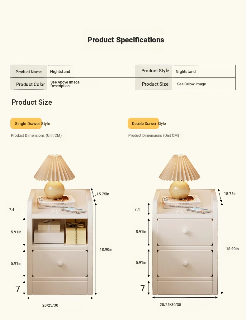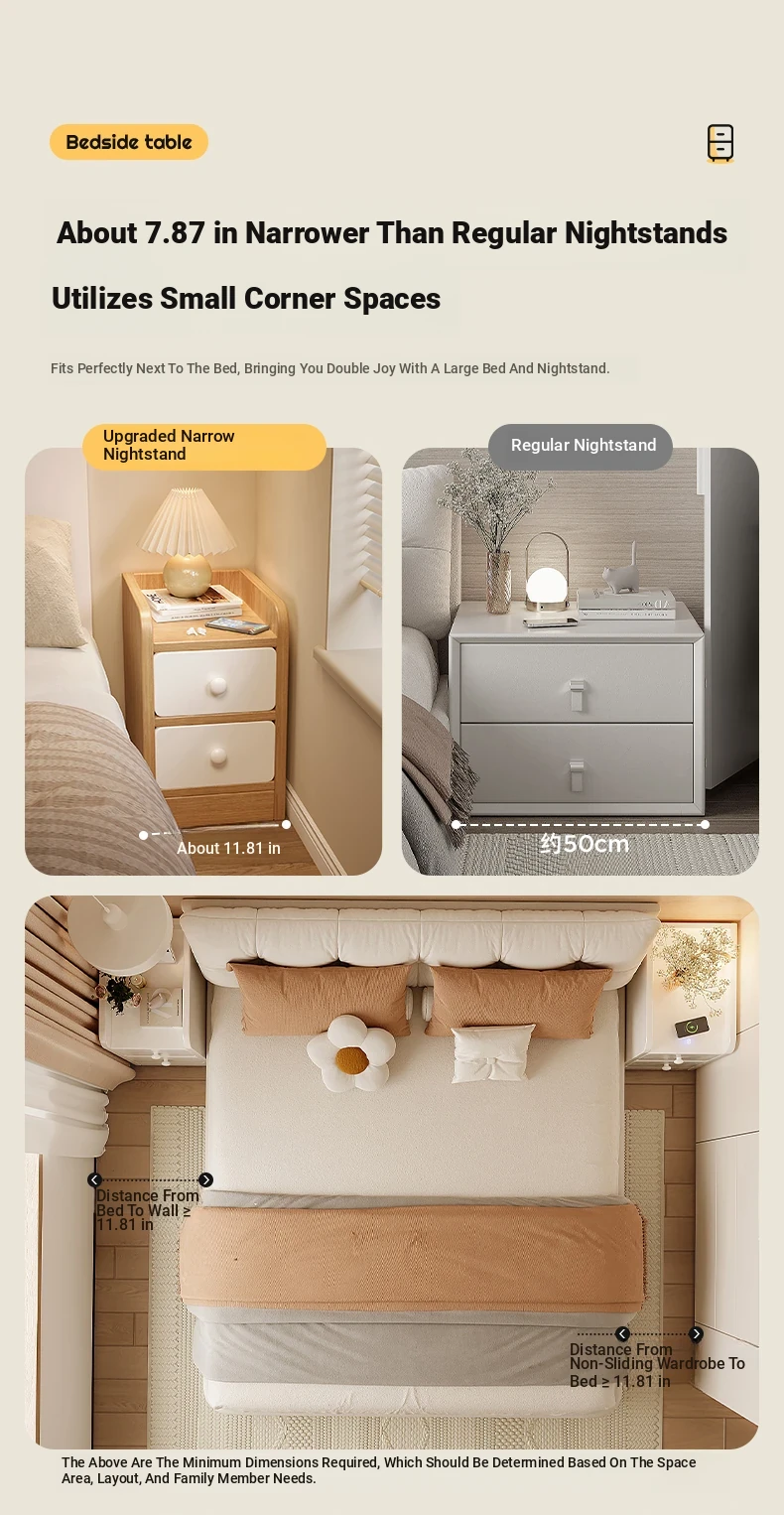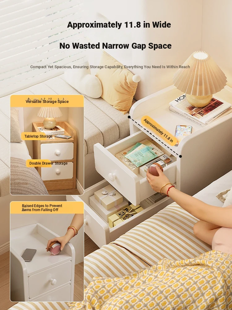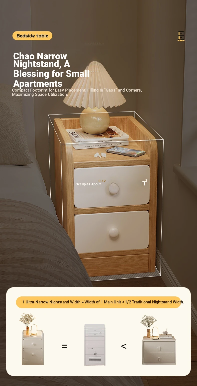 Compact Solid Wood Nightstand for Bedroom - 20CM and 30CM Slim Bedside Storage Cabinet, Perfect for Narrow Spaces and Small Areas