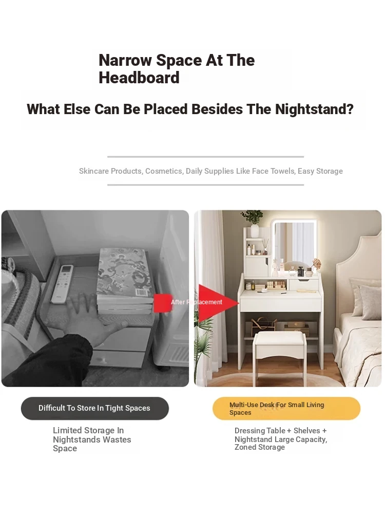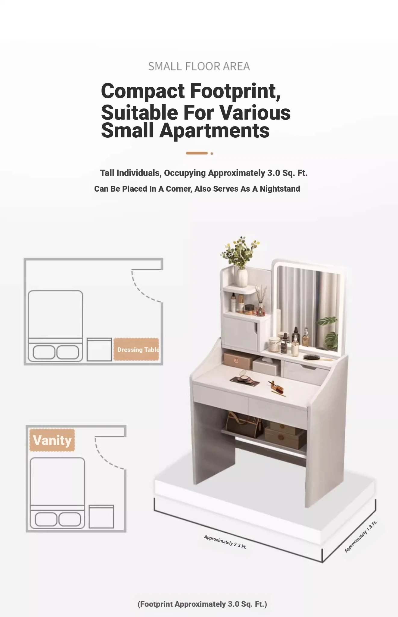 Compact Vanity Table for Small Bedrooms - Modern Minimalist Makeup Desk with Storage Cabinet - Stylish and Functional Nightstand Makeup Station