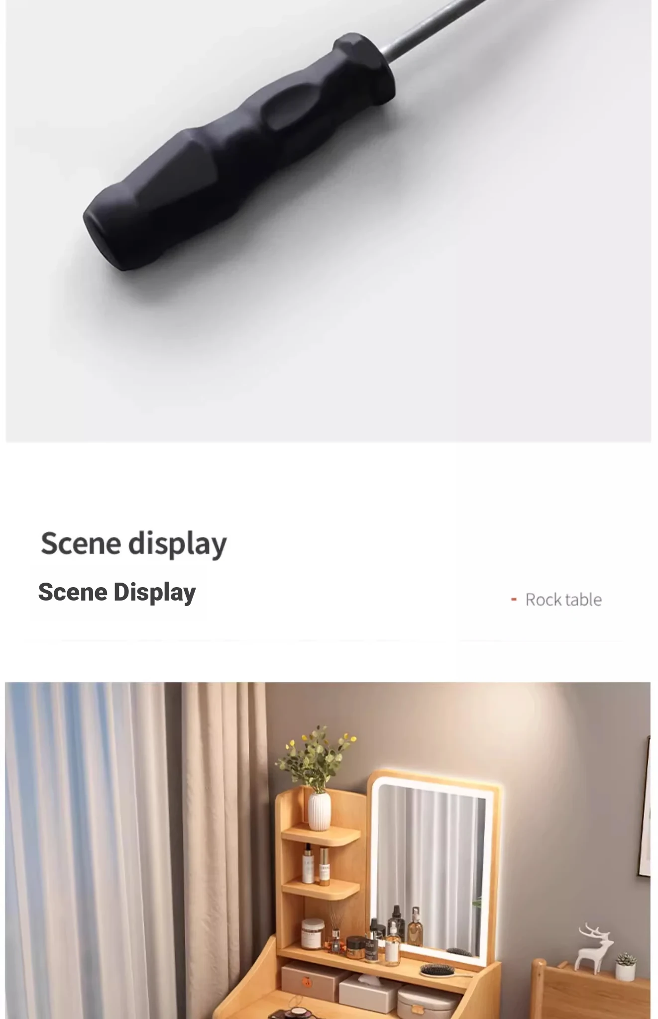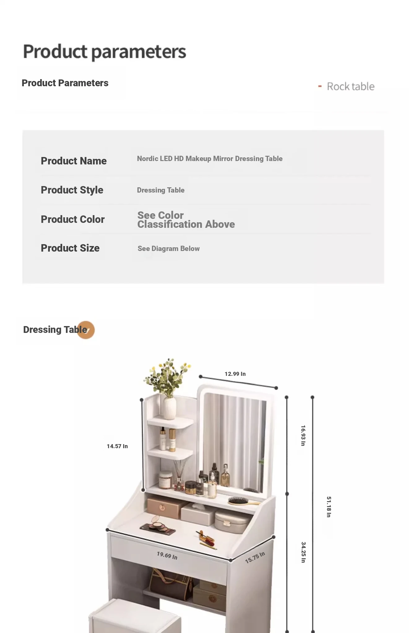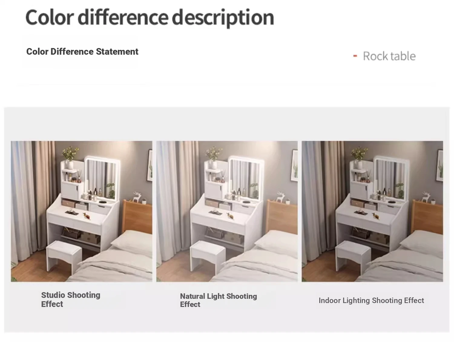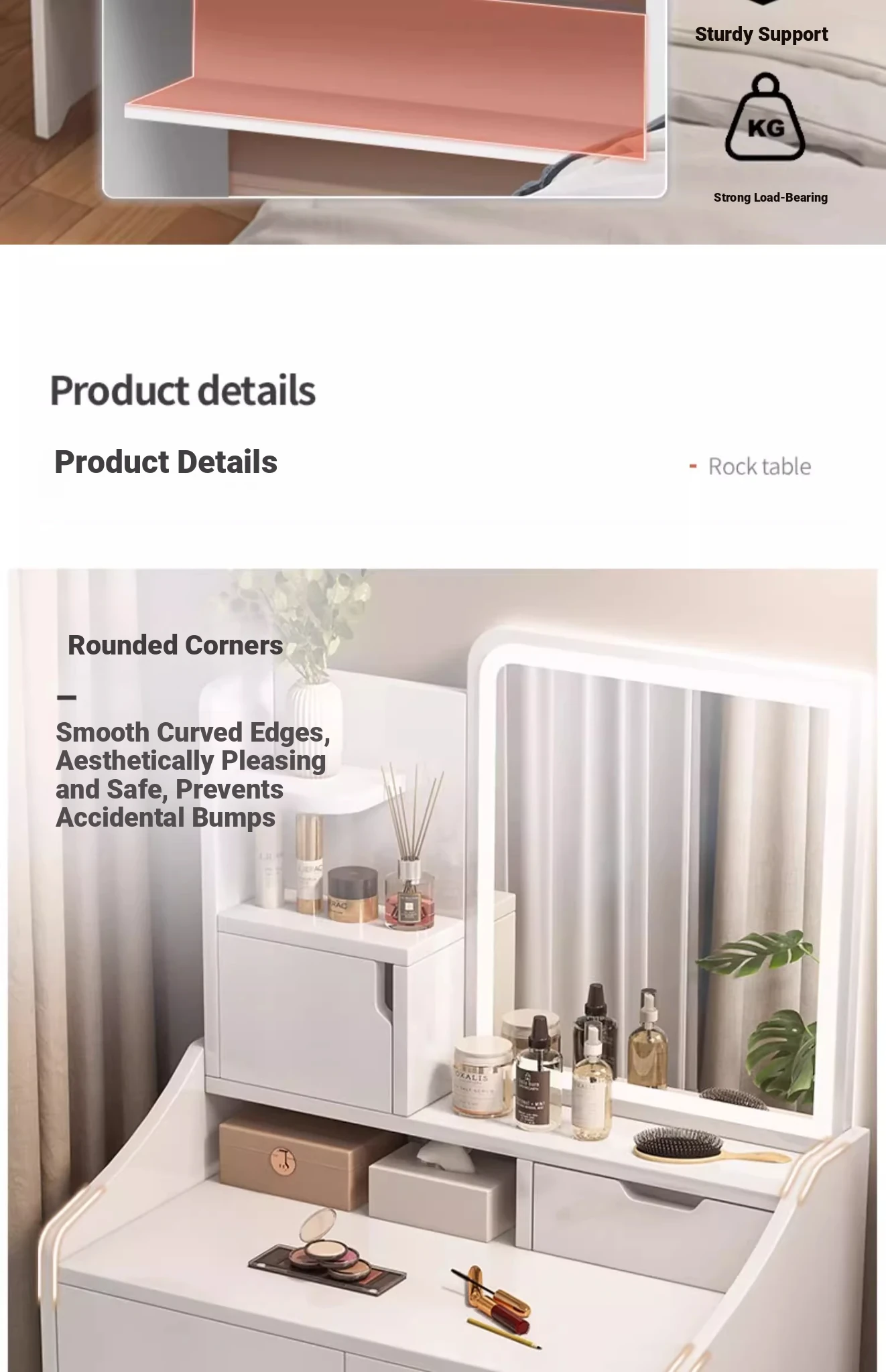 【Round Mirror Style One Drawer One Cabinet + Stool】60Cm Warm White