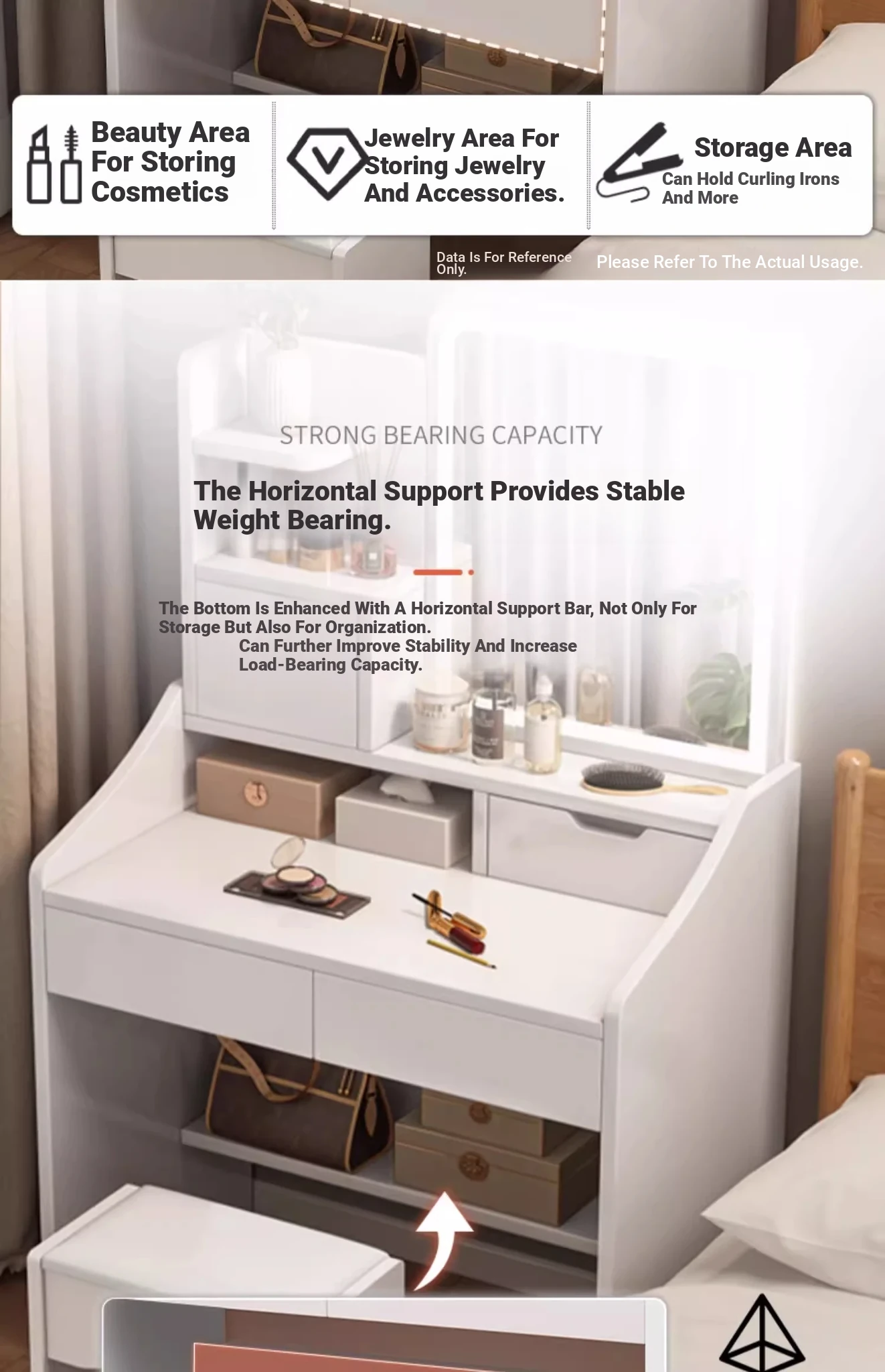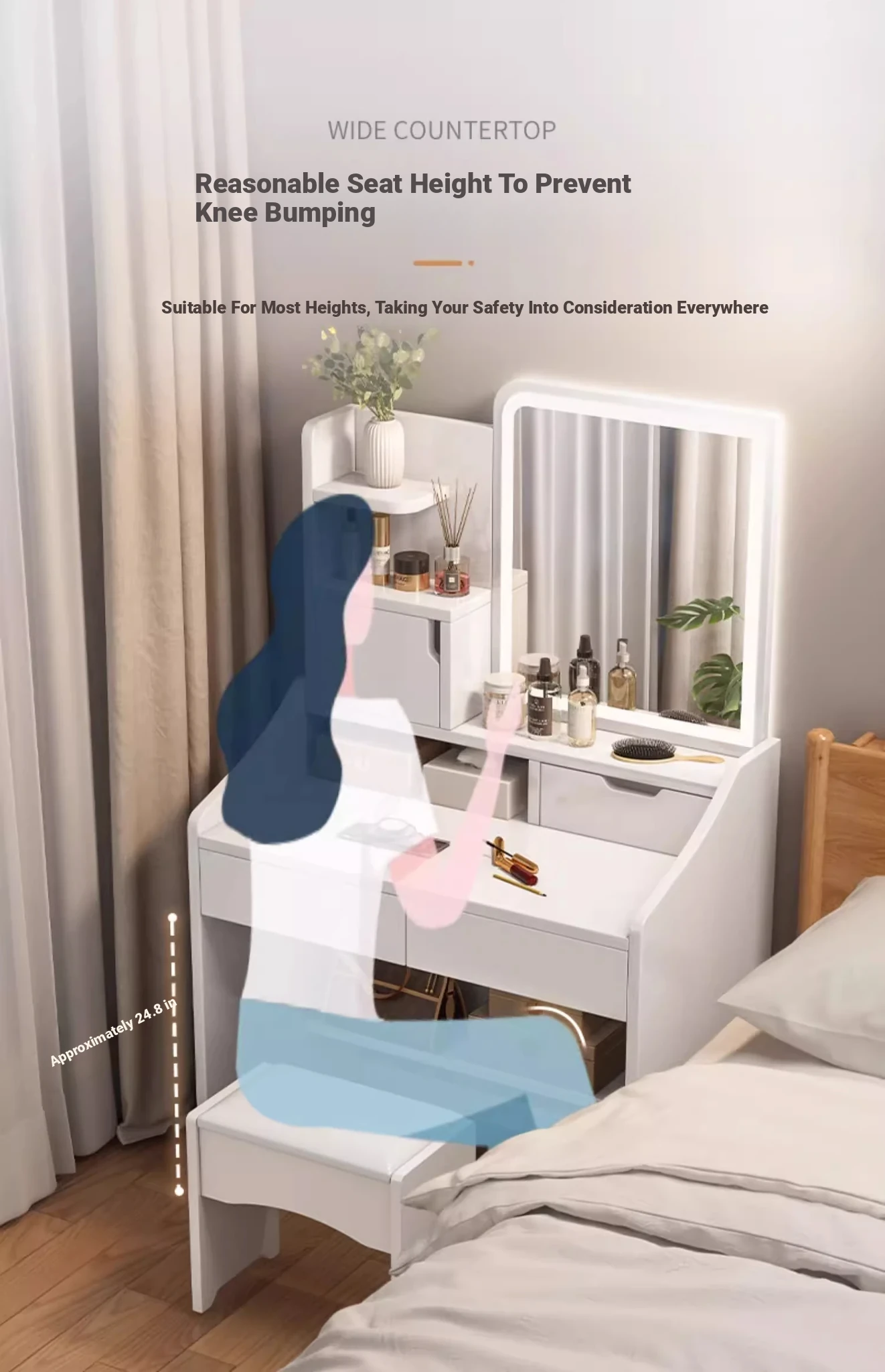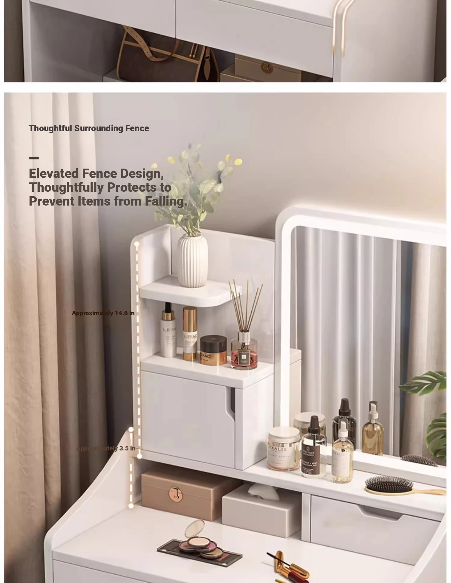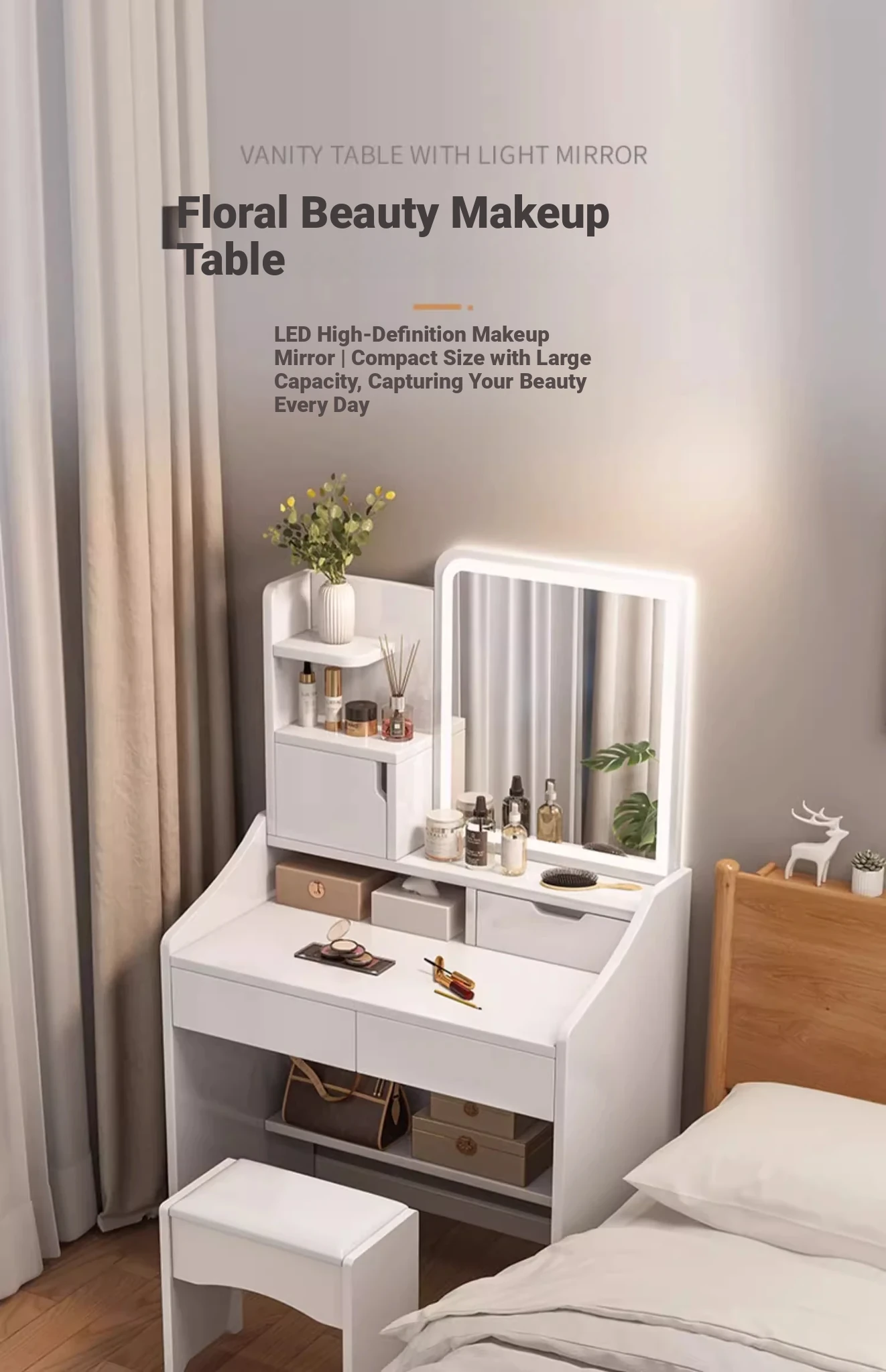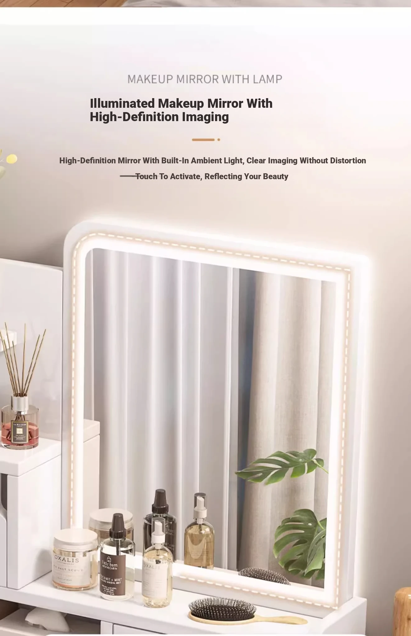 Main Picture❤Led Light-Up Vanity Set [Two Drawers, Two Cabinets + Stool] 27.56in Warm White