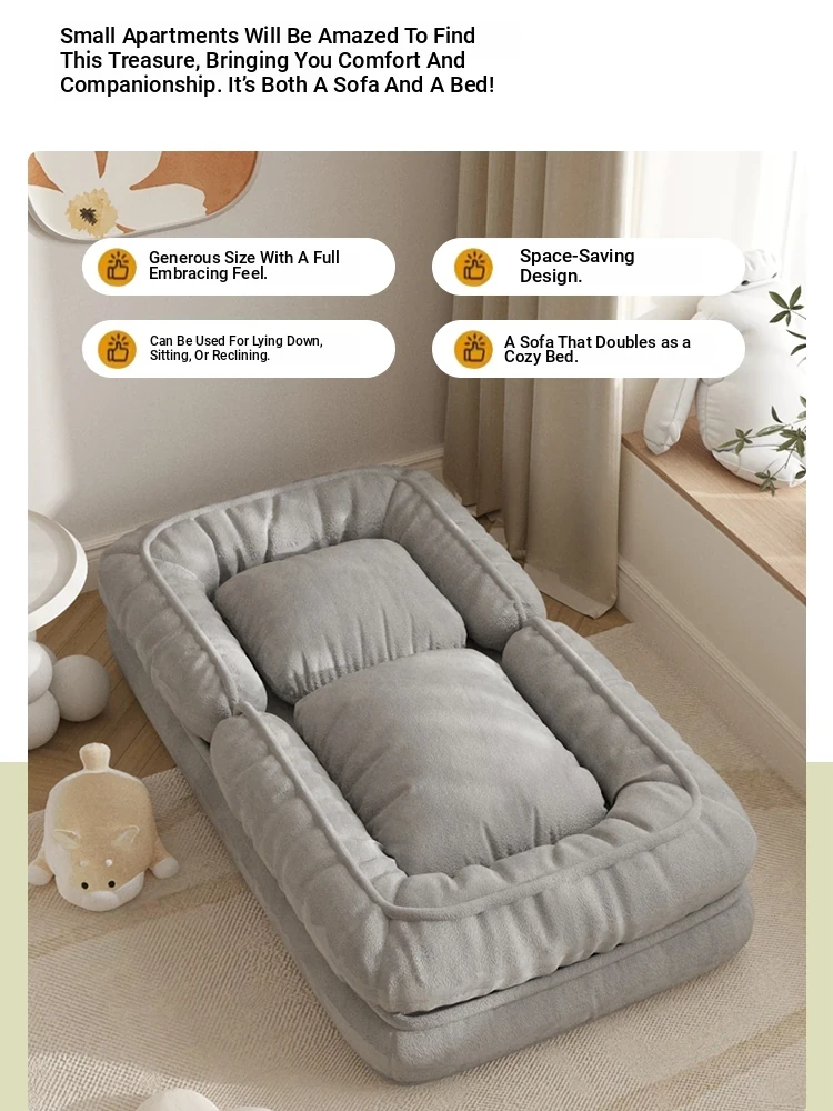 Cozy Lazy Sofa - Versatile Human-Dog Nest, Foldable Tatami Lounge Chair for Balcony & Bedroom, Perfect for Relaxing, Napping, and Companion Care