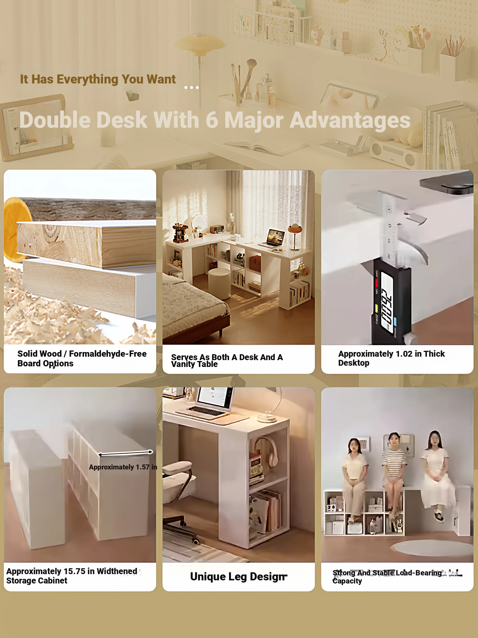 Double Table Model❤1.02in Thickened Osb Aldehyde-Free Ecological Board❤Warm White 140 Tables*2+120 Cabinets(Delivered to Your Door)