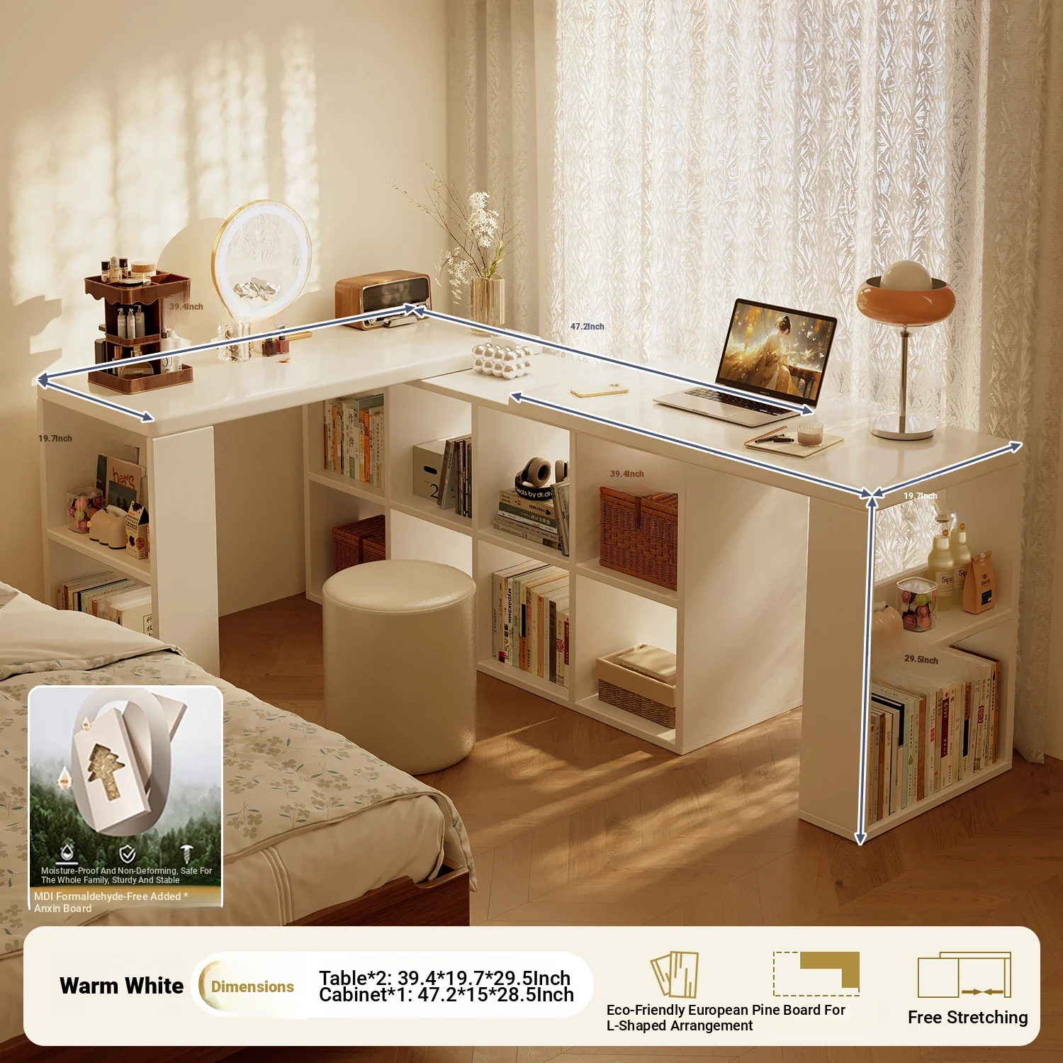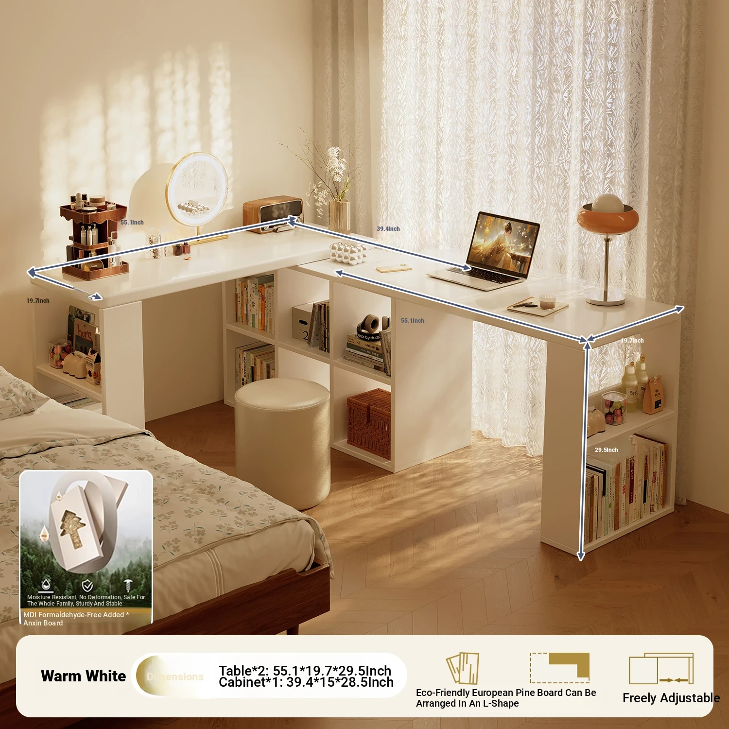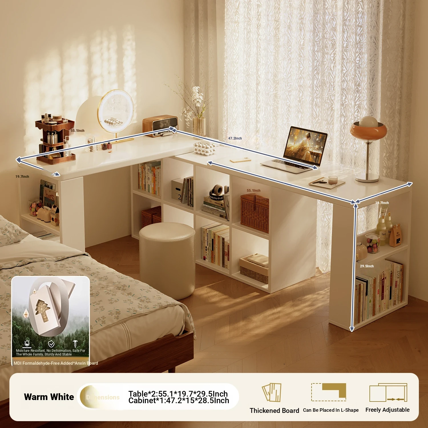 [Free Combination] 1.02in Thickened Osb Aldehyde-Free Ecological Board⭐Warm White 55.12in with Side Storage(Delivered to Your Door)