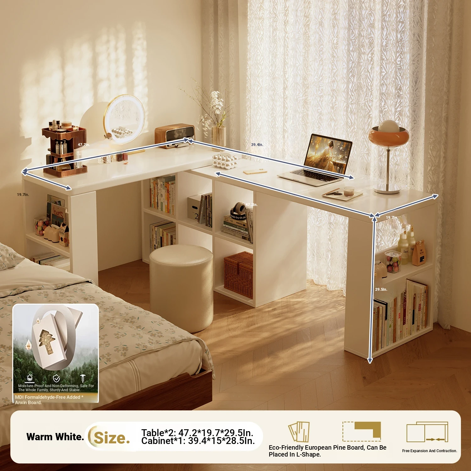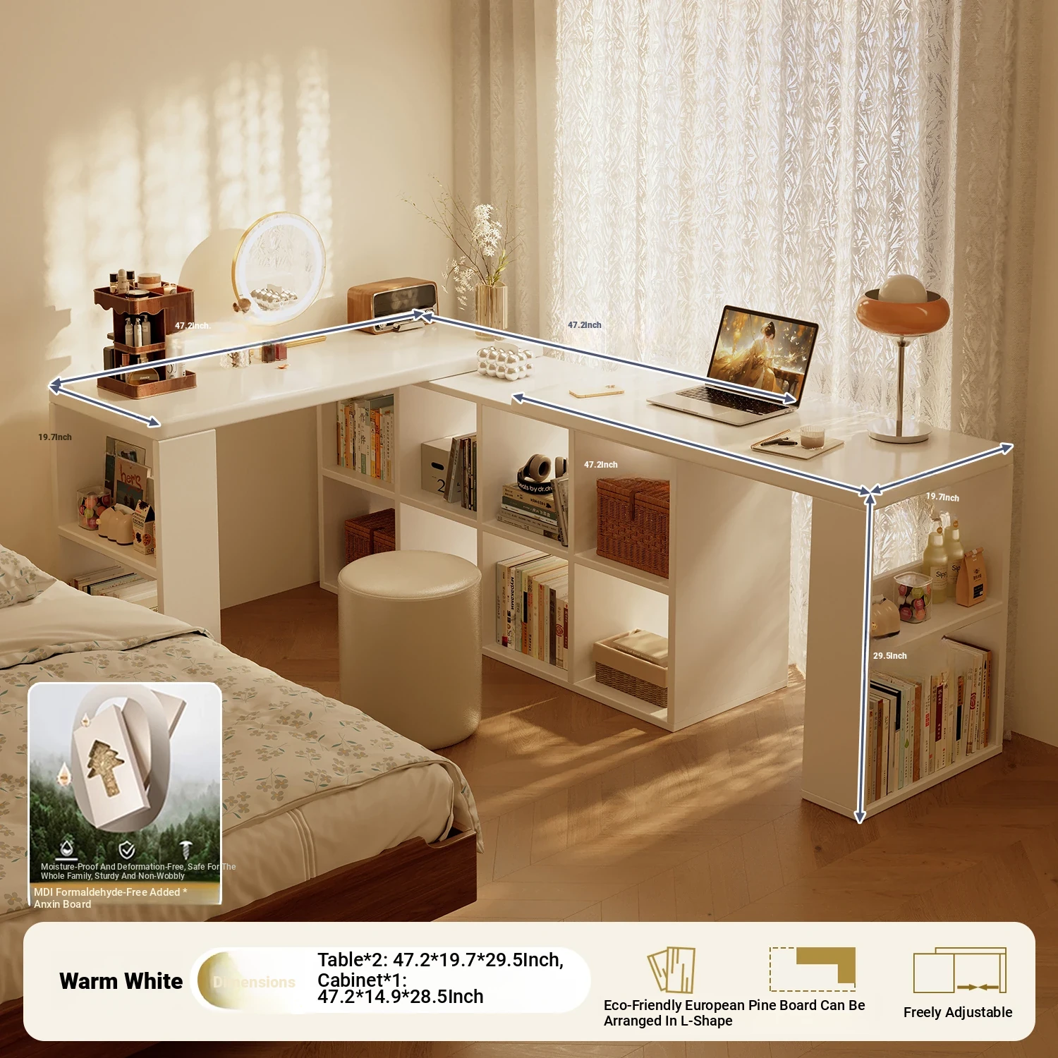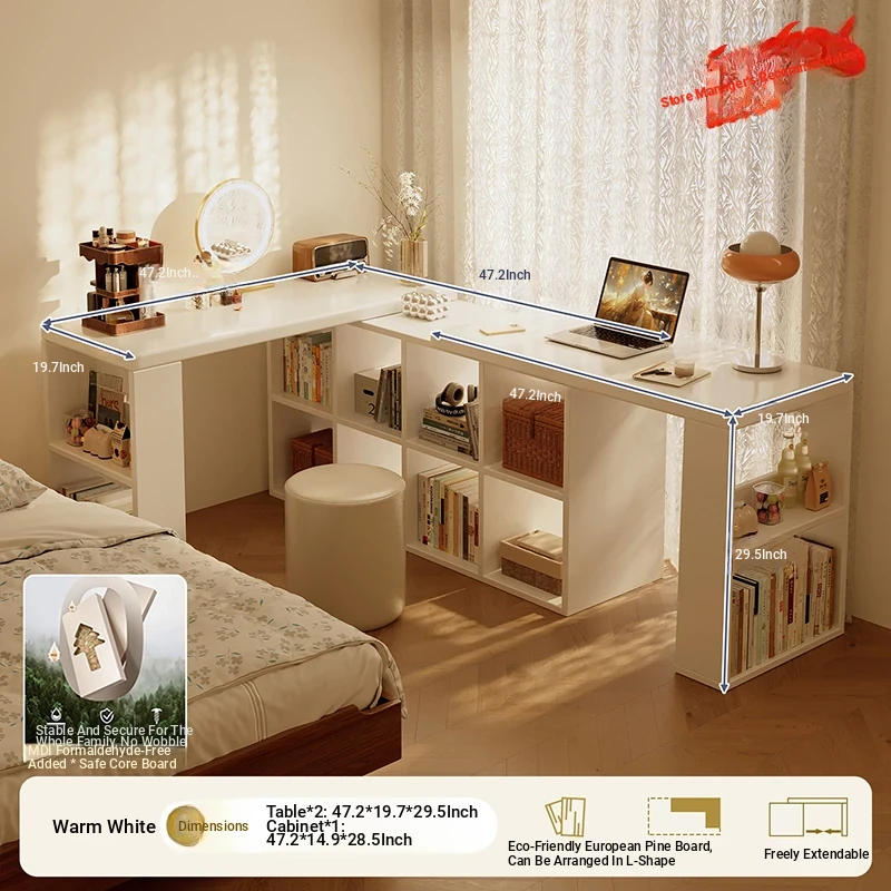 [Package Installation] Double Table Model❤1.02in Thickened Osb Aldehyde-Free Ecological Board❤Warm White 140 Tables*2+120 Cabinets(Delivered to Your Door)