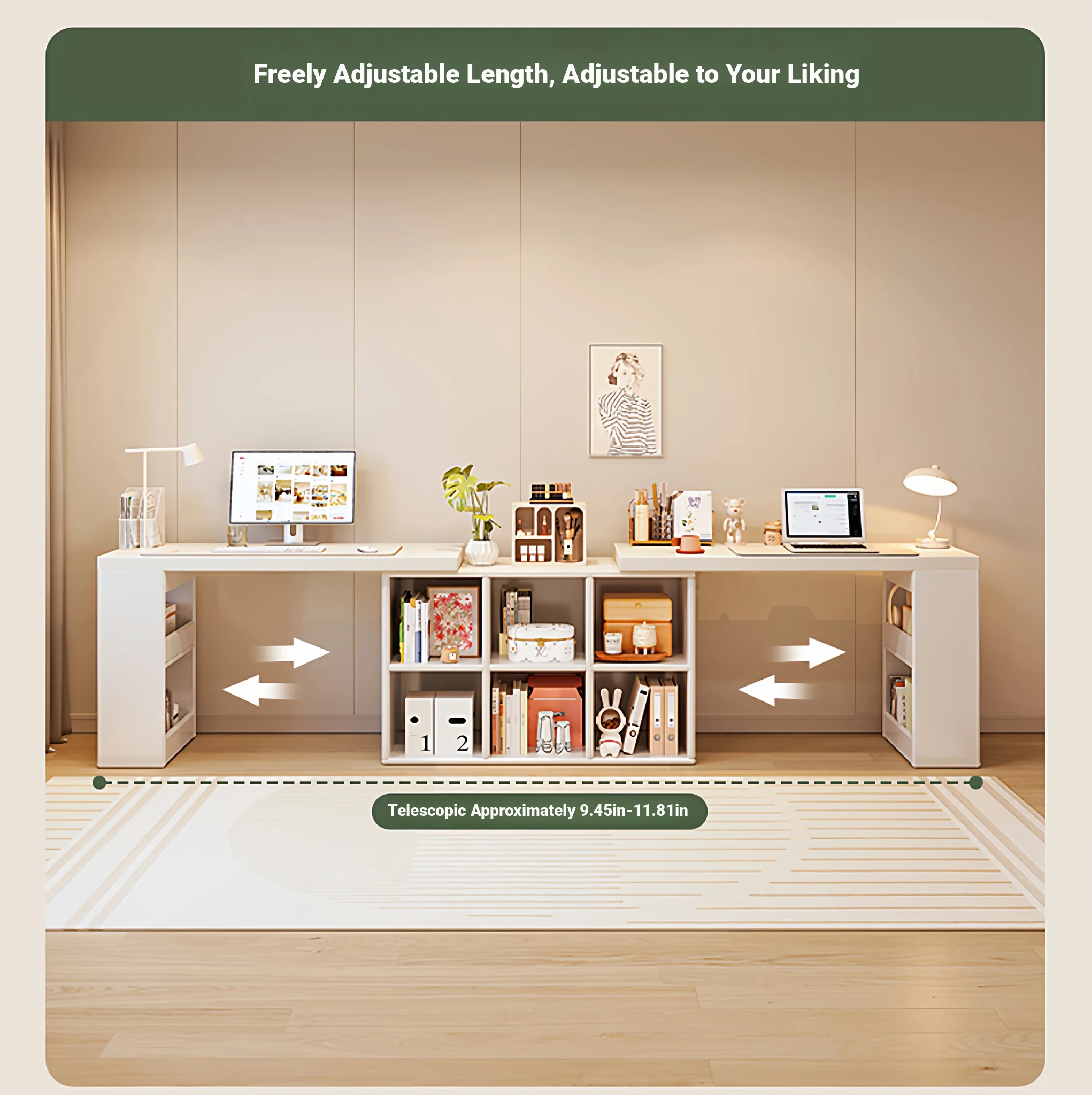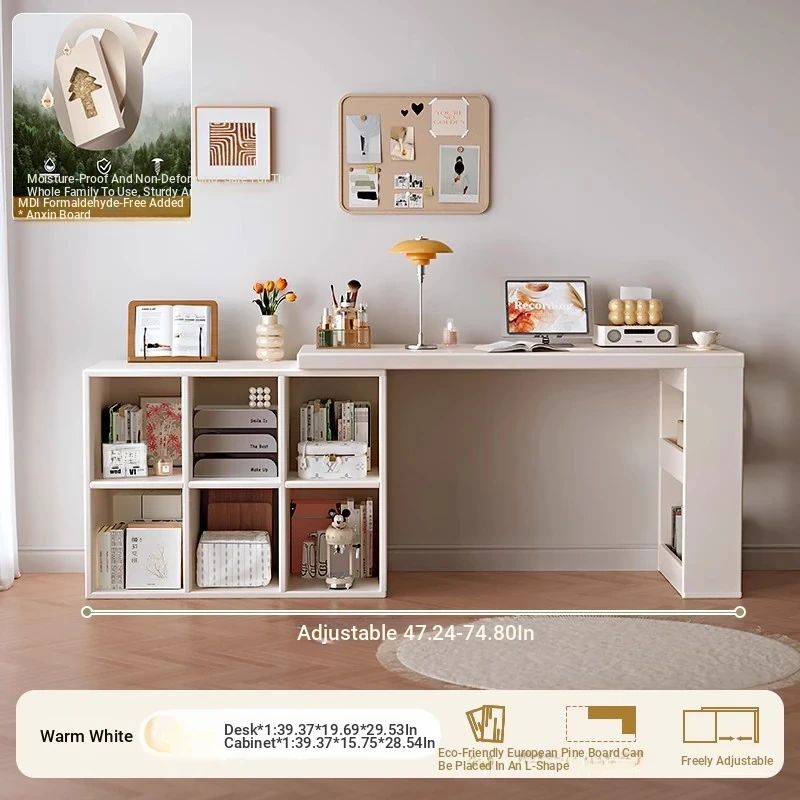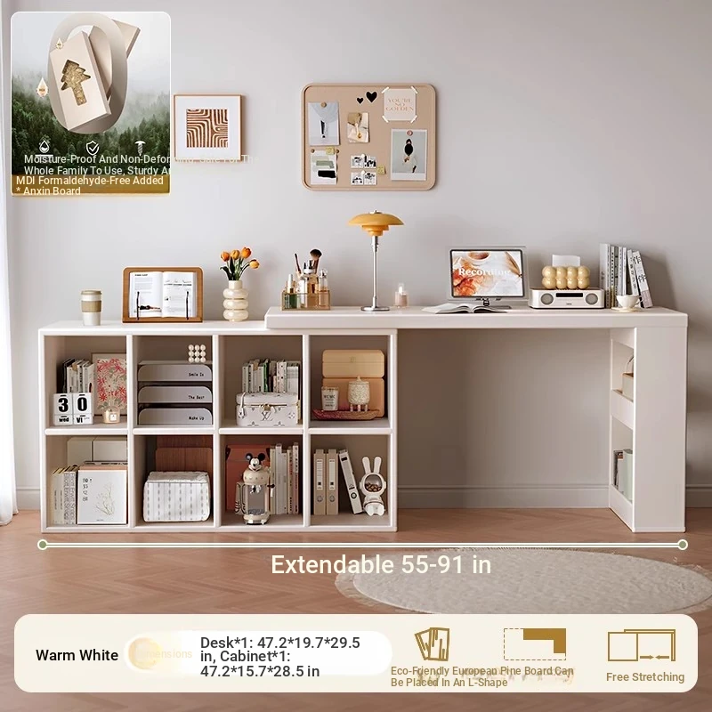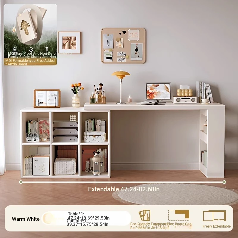 Double Desk Set [1.02in Thickened Osb Formaldehyde-Free Eco-Panel] 120 Desk * 2 + 120 Cabinet Warm White Extendable(Delivered to Your Door)