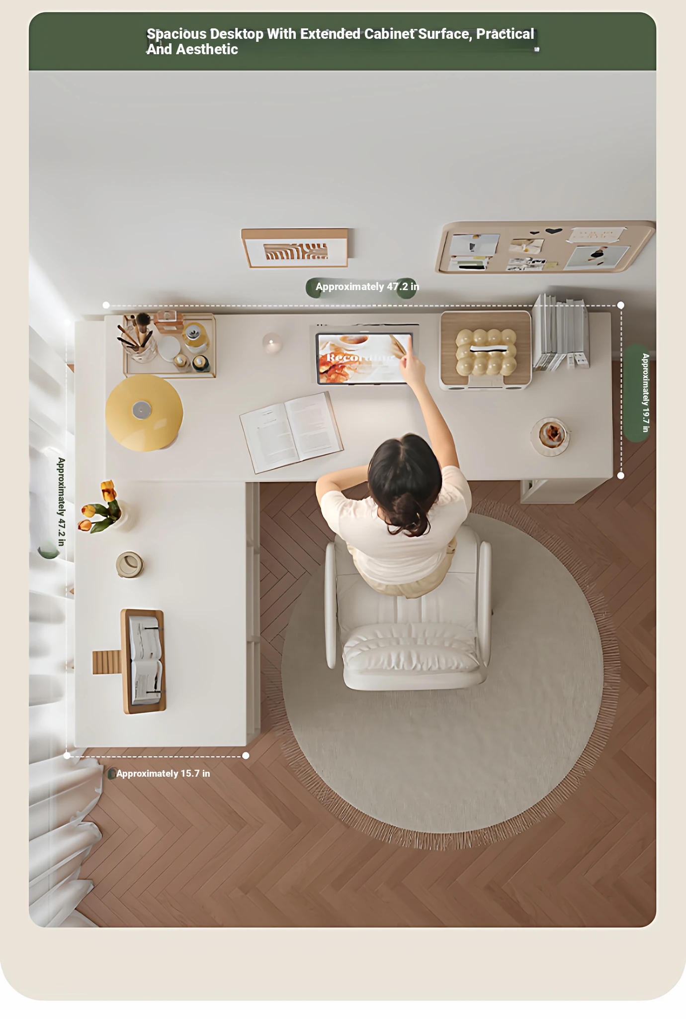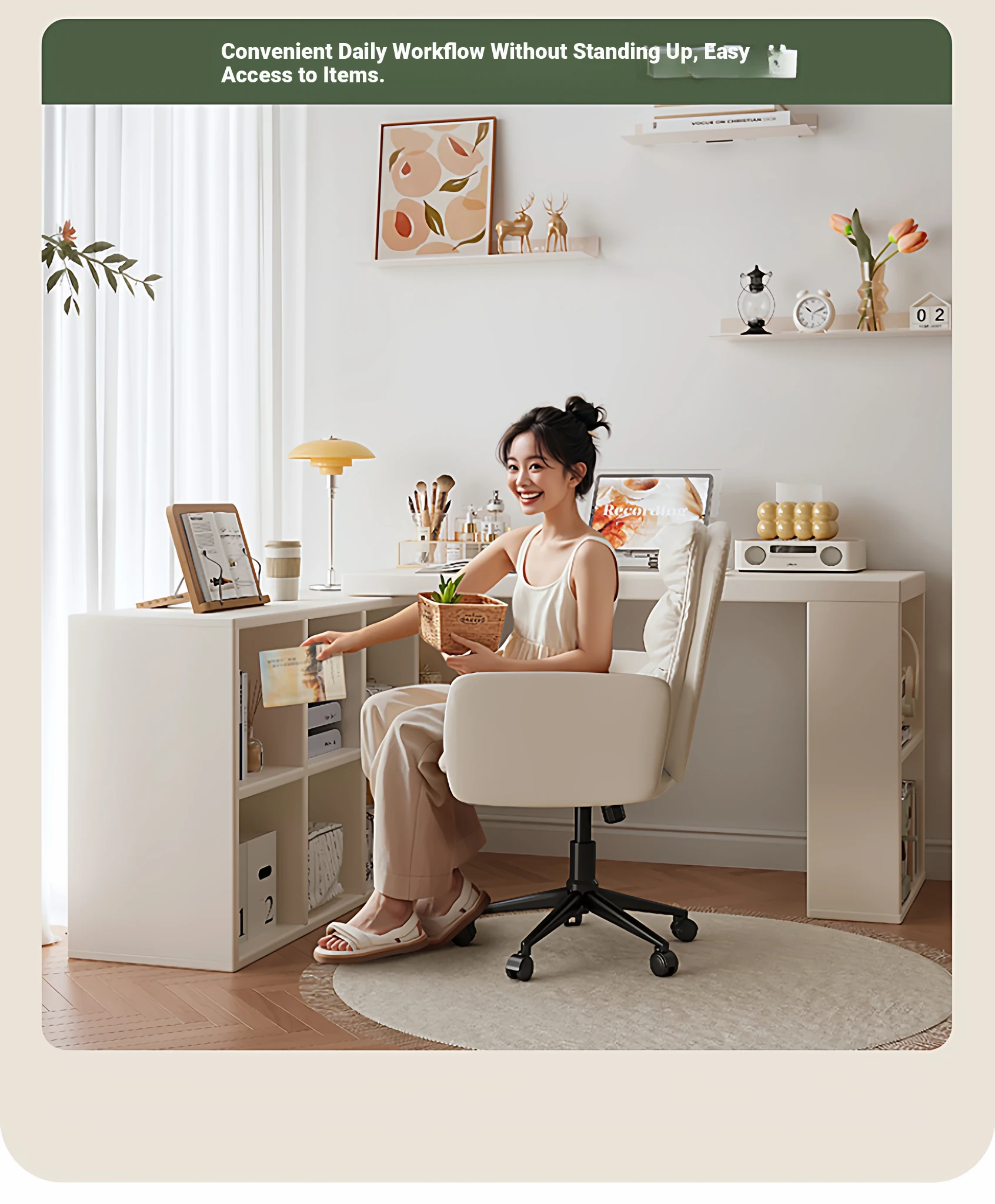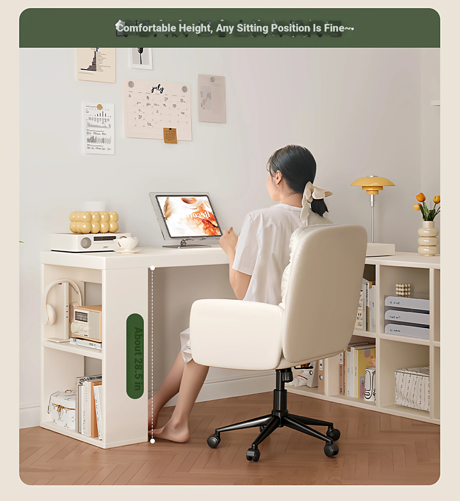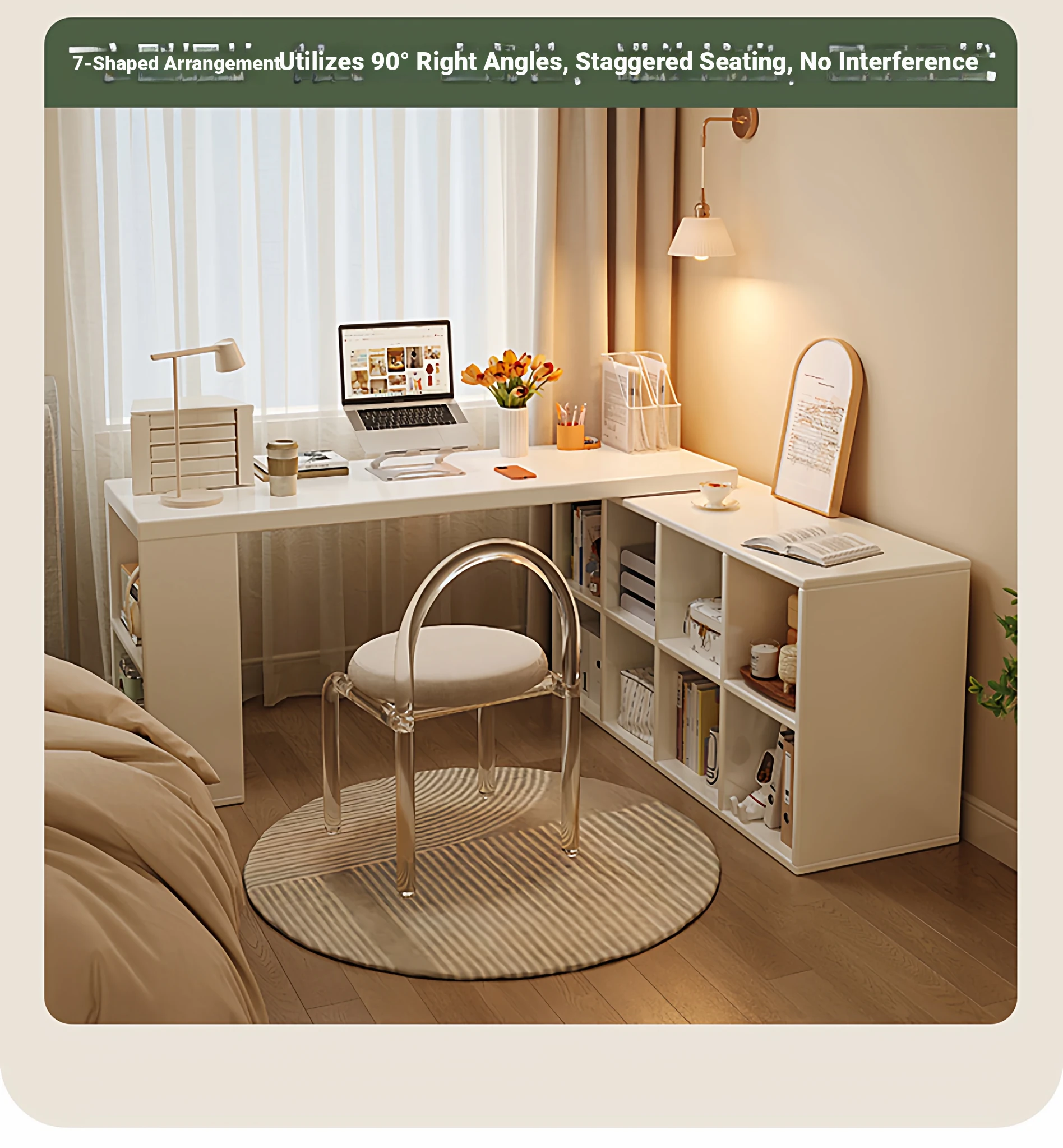 Cream Corner Desk with Vanity and Drawer Unit – Perfect for Girls' Bedrooms, Home Study, and Office Use – L-Shaped Computer Desk