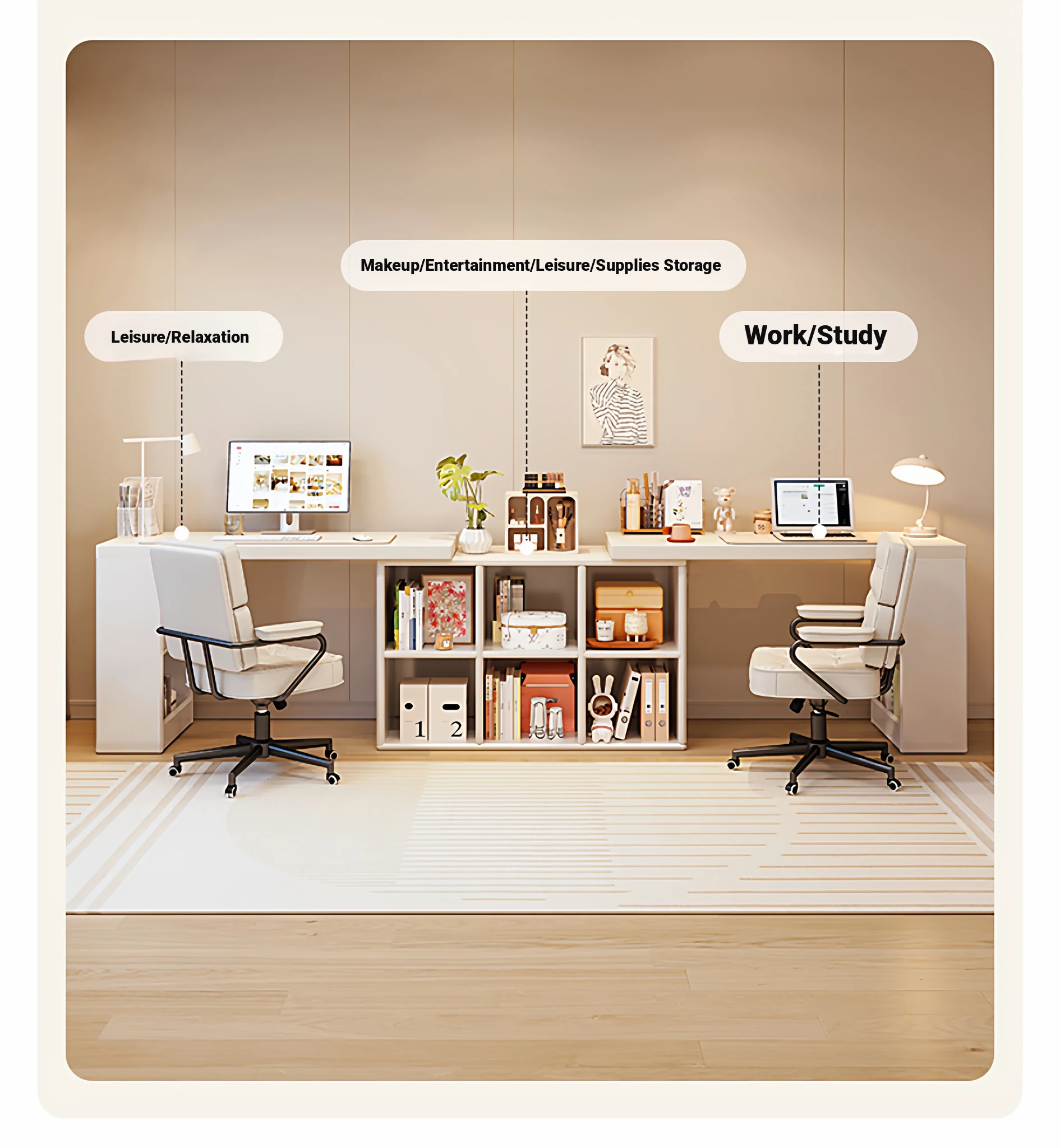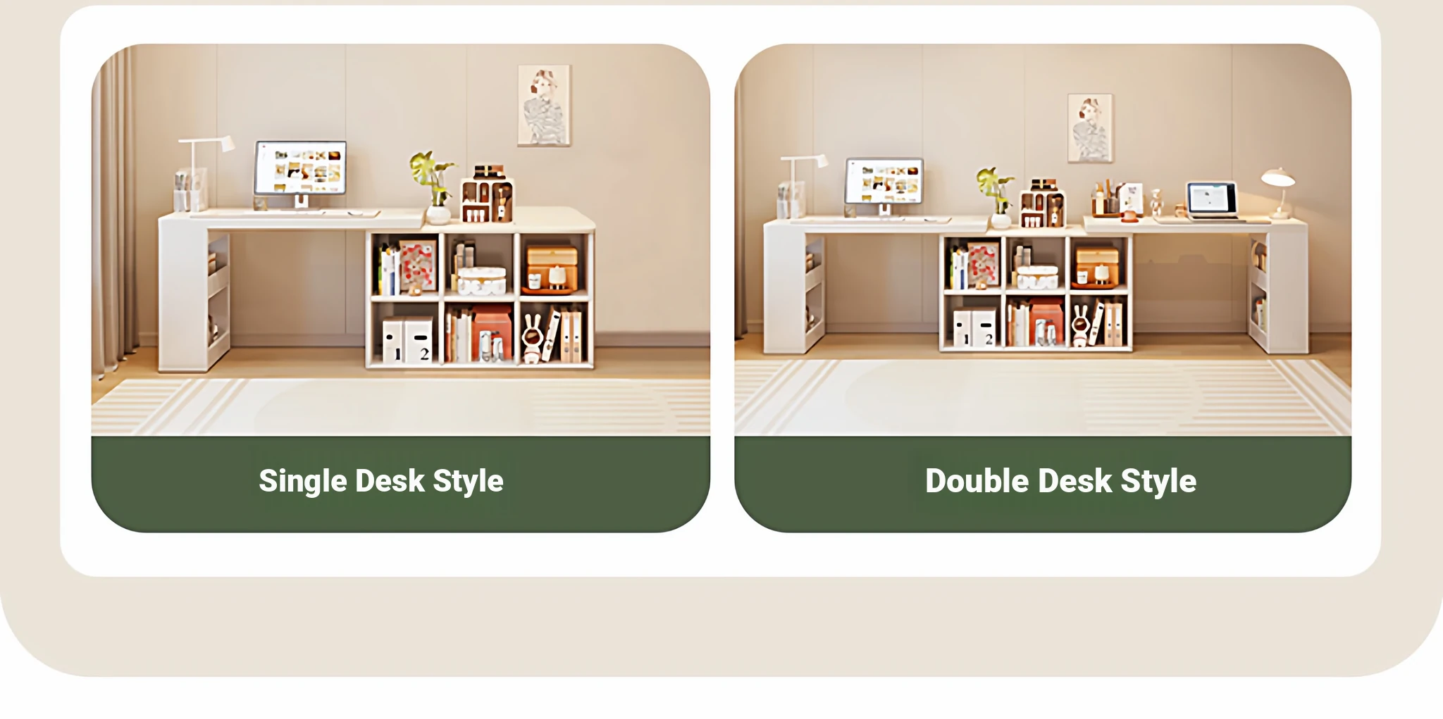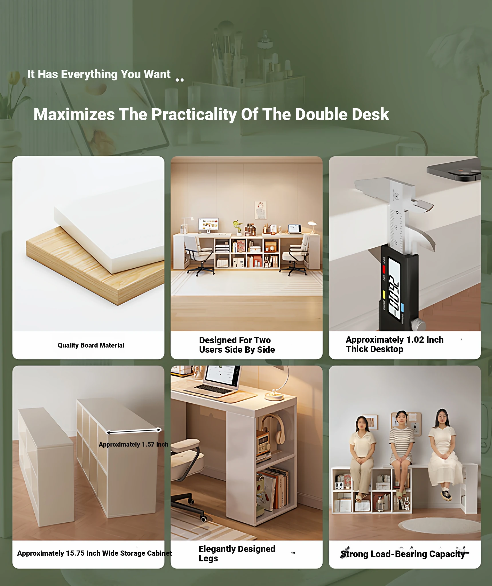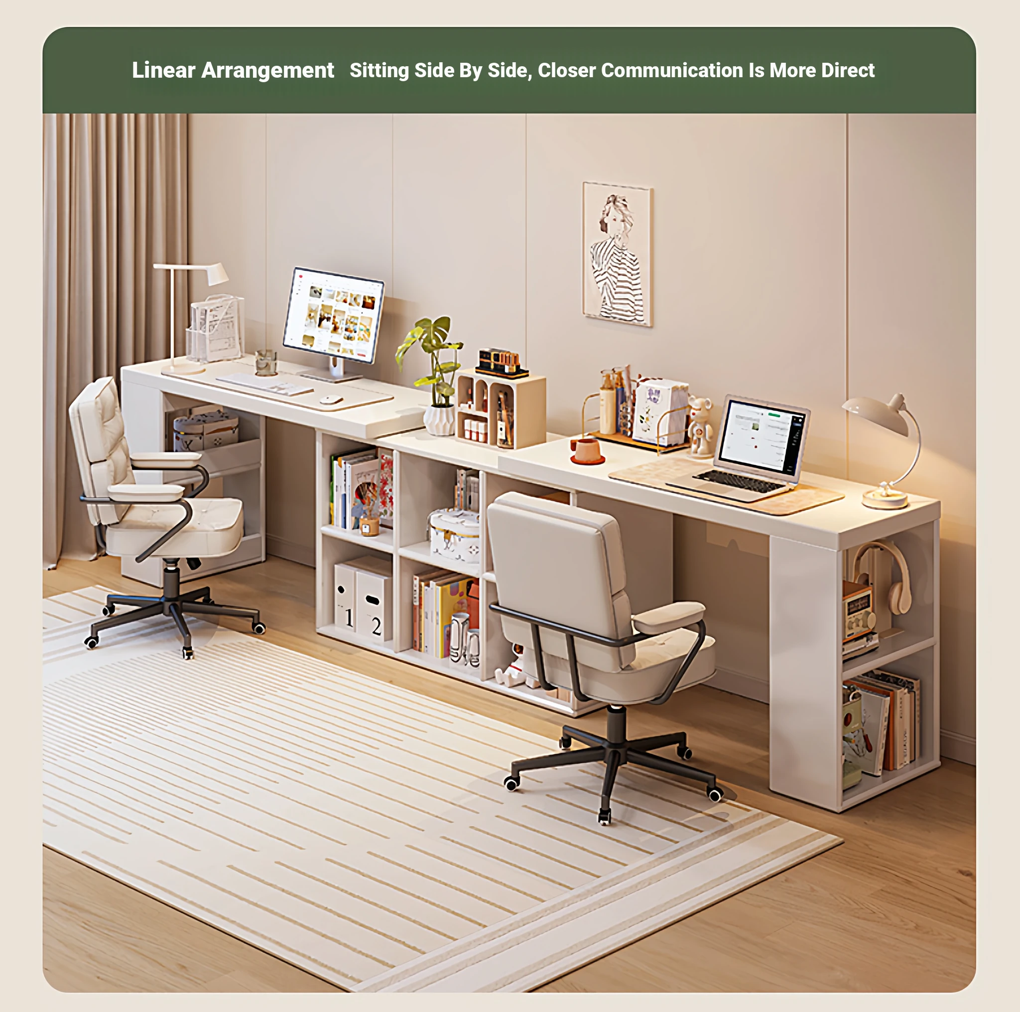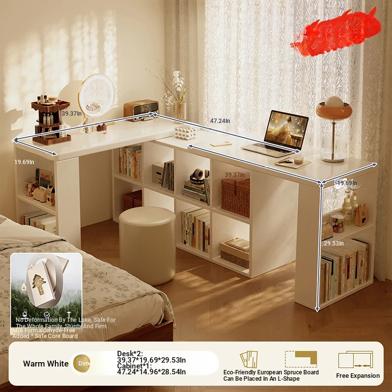 Double Desk Set [1.02in Thickened Osb Formaldehyde-Free Eco-Panel] 100 Desks * 2 + 120 Cabinets, Warm White Extendable(Delivered to Your Door)
