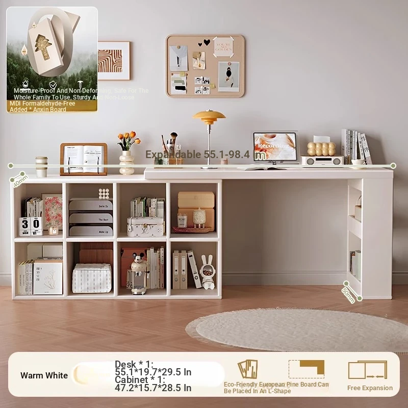Single Desk Set [1.02in Thickened Osb Formaldehyde-Free Eco-Panel] Warm White 140 Desk + 120 Cabinet(Delivered to Your Door)
