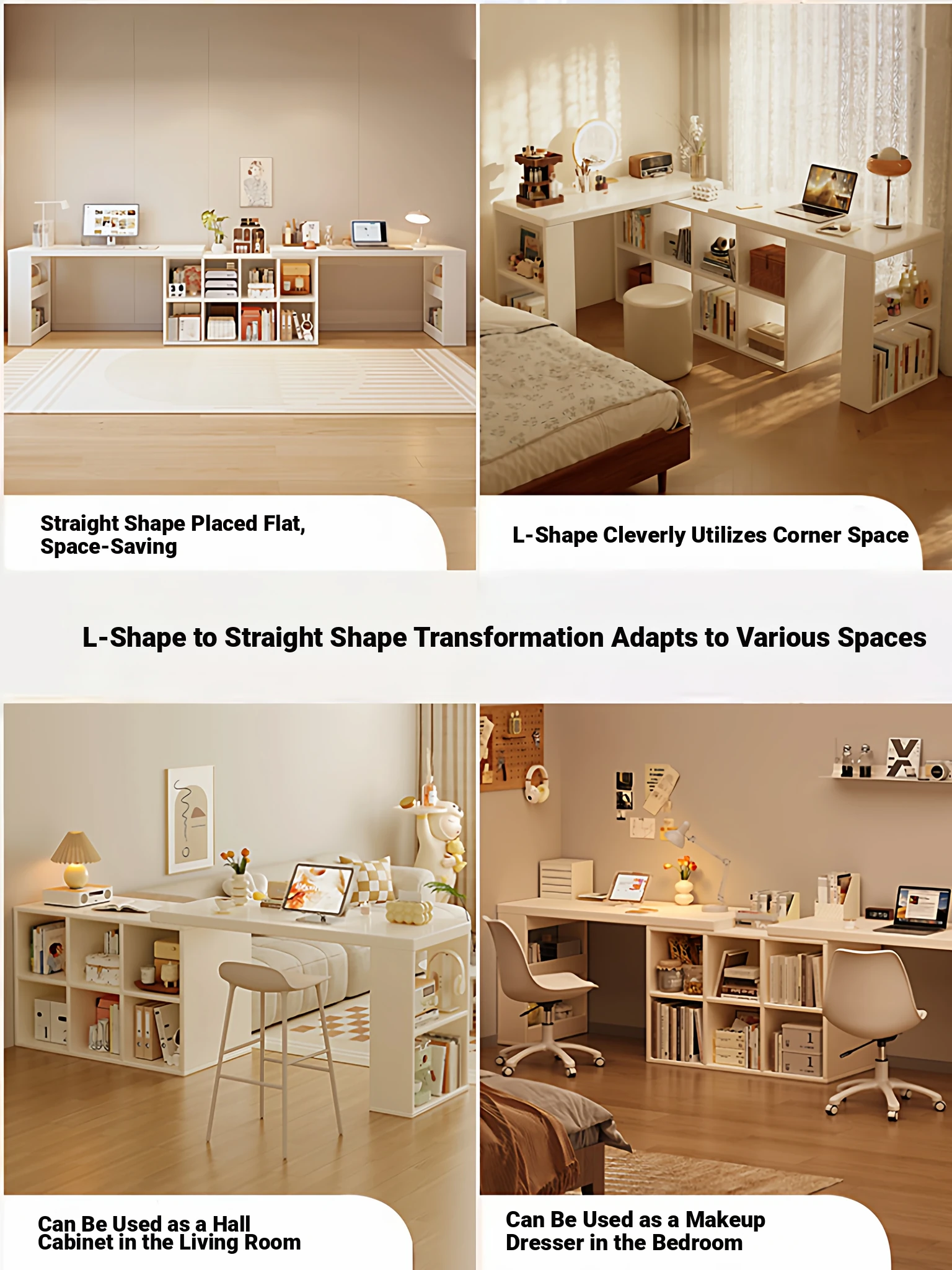[Package Installation] Double Table Model❤1.02in Thickened Osb Aldehyde-Free Ecological Board❤Warm White 100 Tables*2+120 Cabinets(Delivered to Your Door)