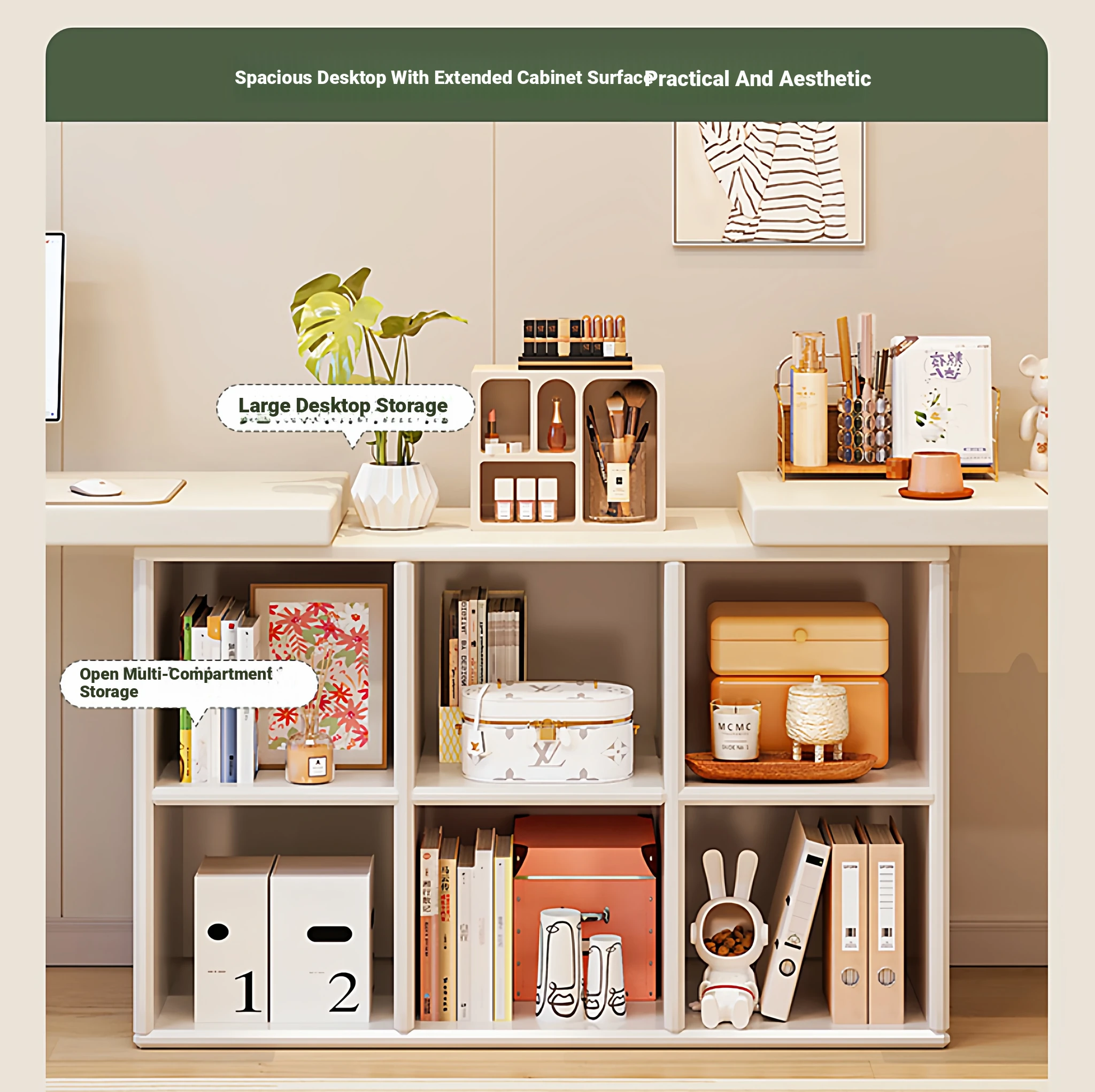 Single Desk Set [1.02in Thickened Osb Formaldehyde-Free Eco-Panel] Warm White 120 Desk + 120 Cabinet(Delivered to Your Door)