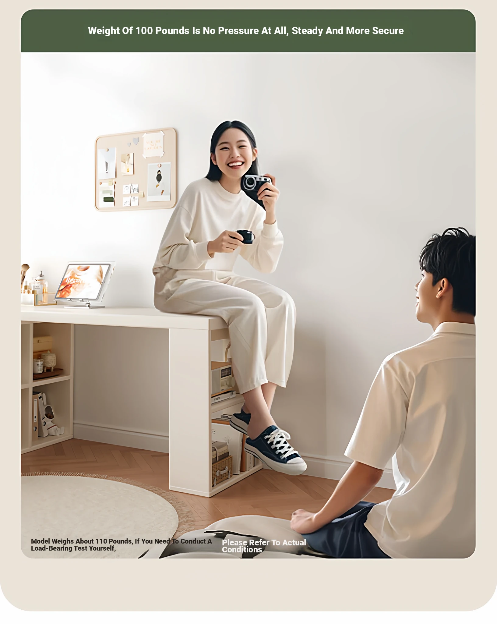 Double Table Model❤1.02in Thickened Osb Aldehyde-Free Ecological Board❤Warm White 100 Tables*2+120 Cabinets(Delivered to Your Door)
